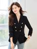 Chaqueta Negra de Manga Larga con Cuello de Traje Pequeño para Mujer Primavera Otoño Invierno Nuevo 2025 Moda Profesional Elegante Ajuste Entallado