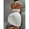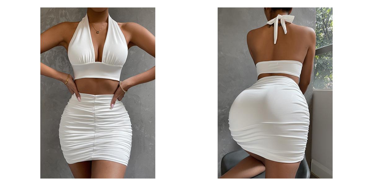 Amazon Transfronterizo para Mujer Cuello Colgante Encaje con Cordones Falda de Cadera de Dos Piezas Europeo y Americano Sexy Ombligo Pliegue Cuello en V Falda Slip