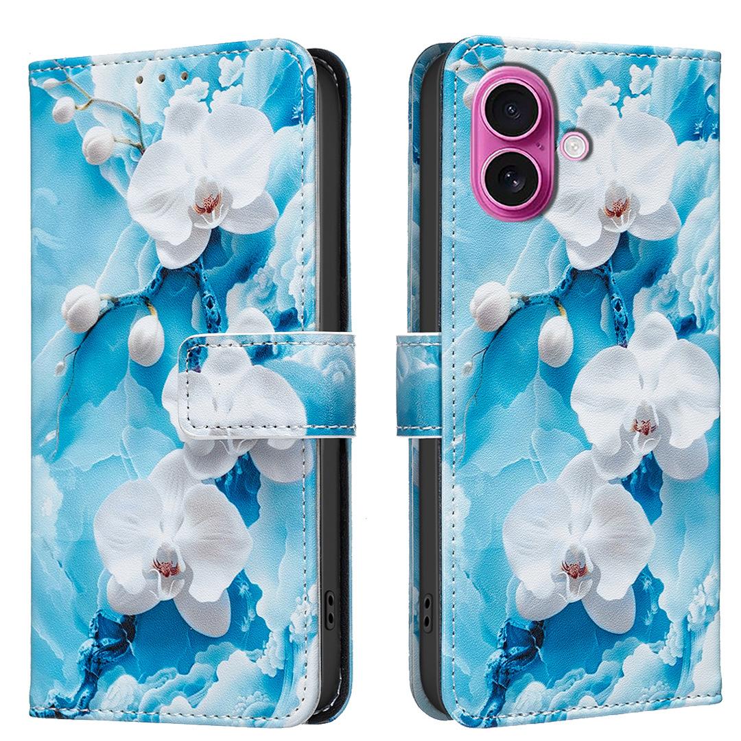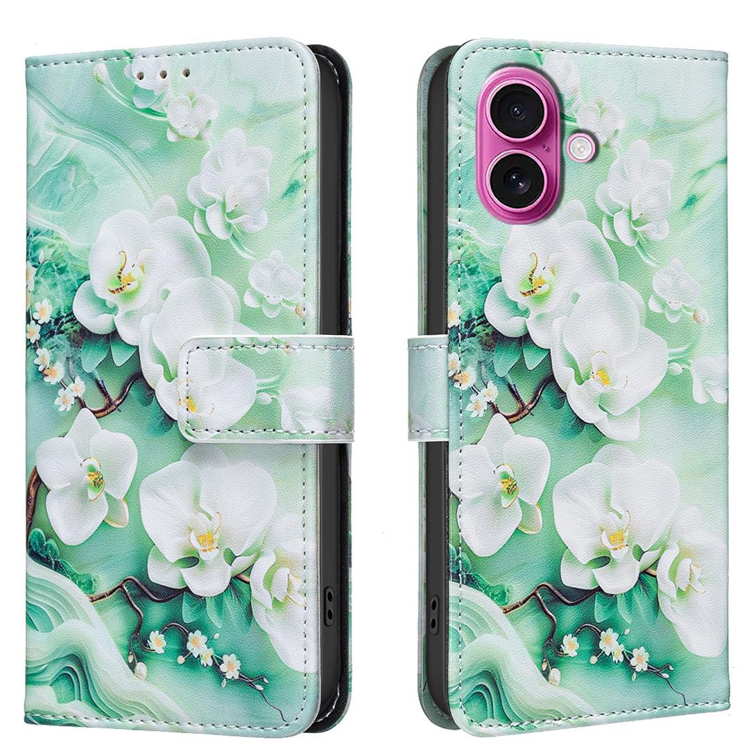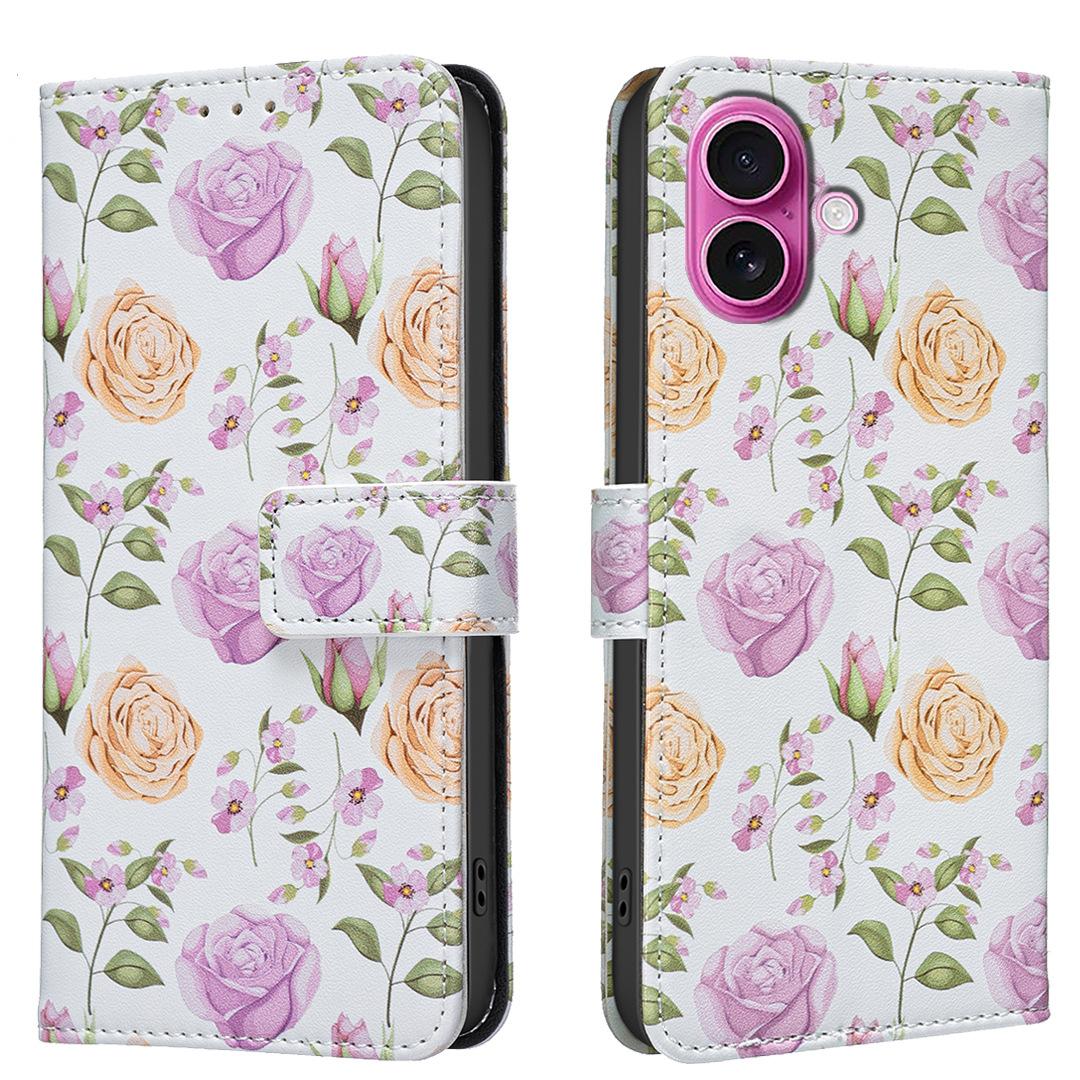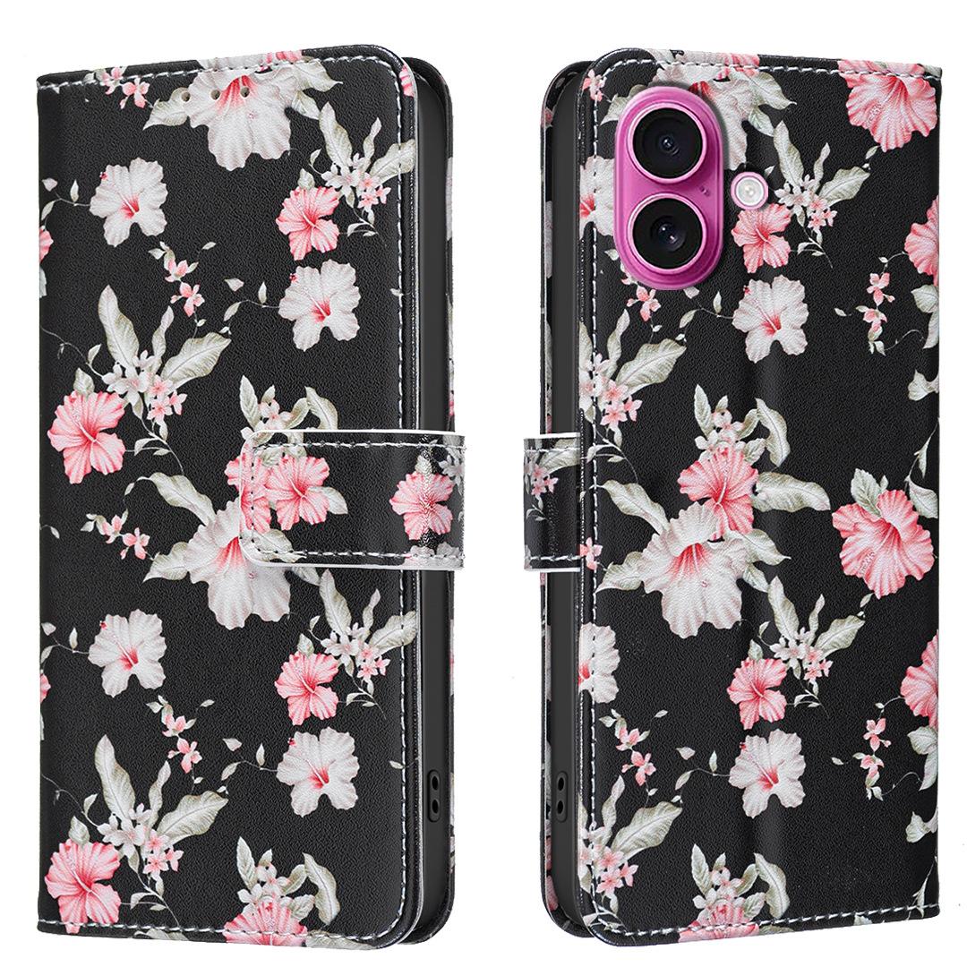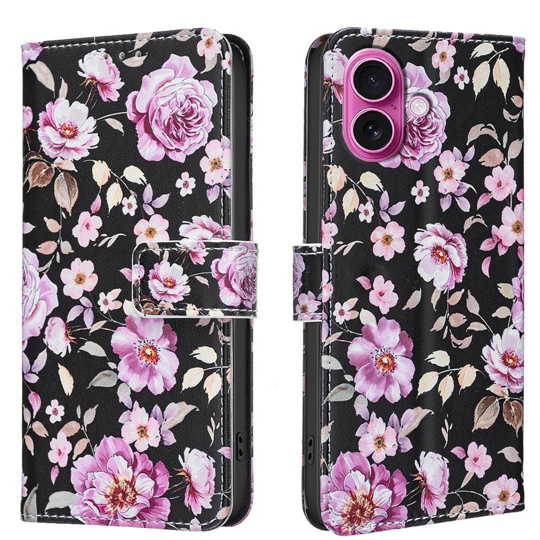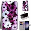 Adecuado para Funda de Cuero para Teléfono Móvil Iphone16 Samsung S25 Flor Pintada Tarjetero Soporte Cubierta Protectora A56 Floral