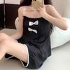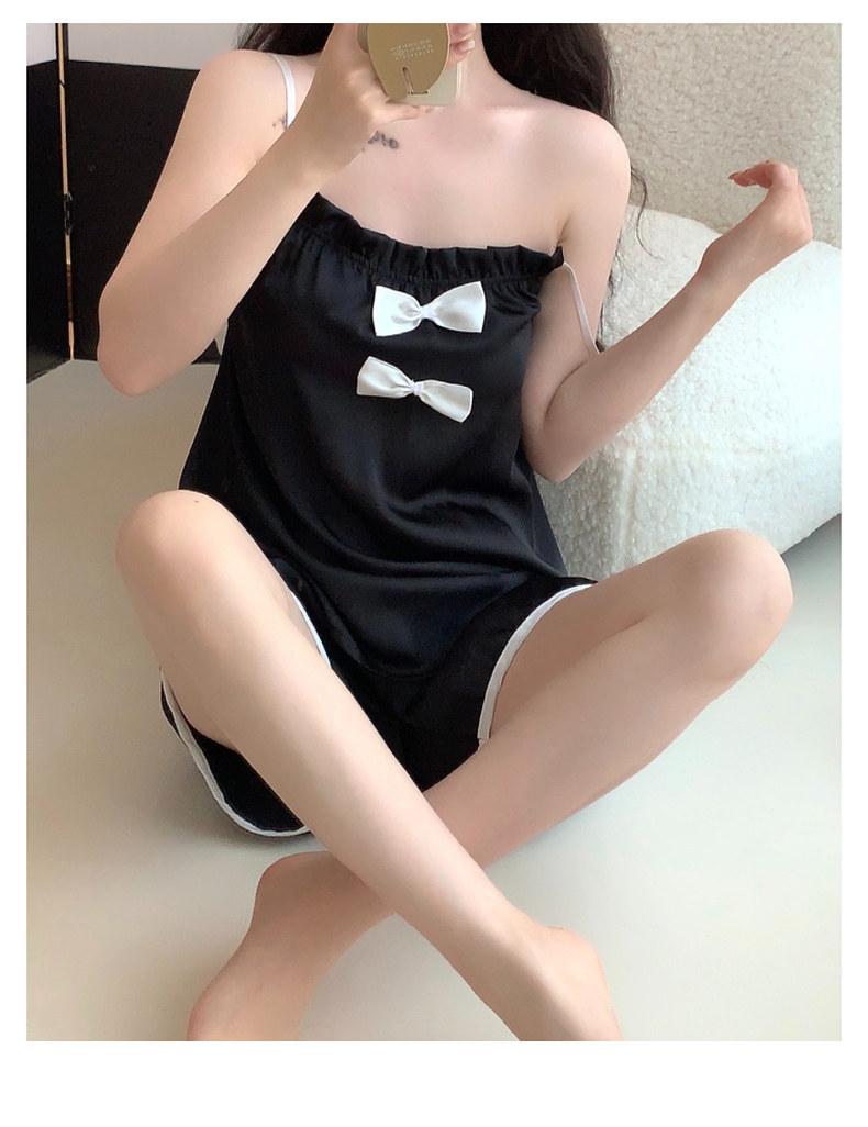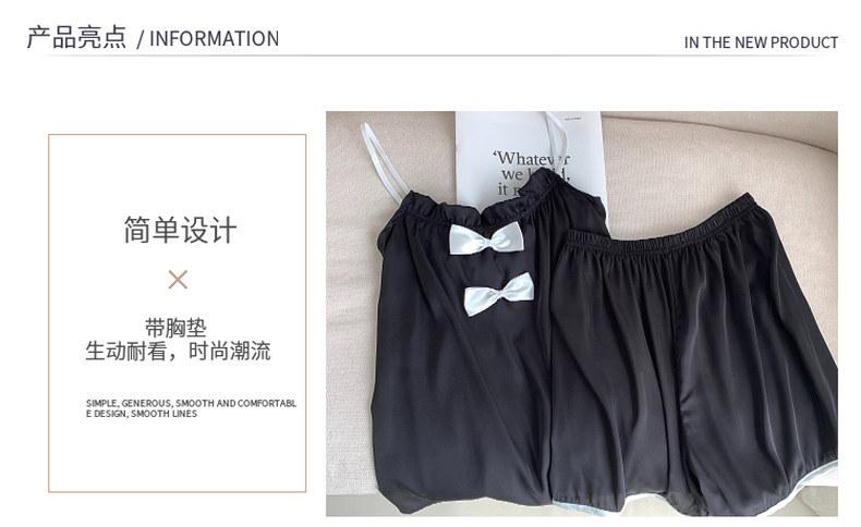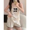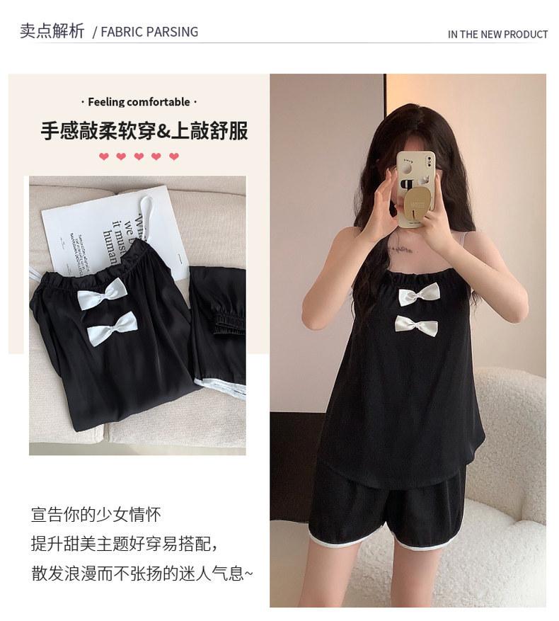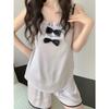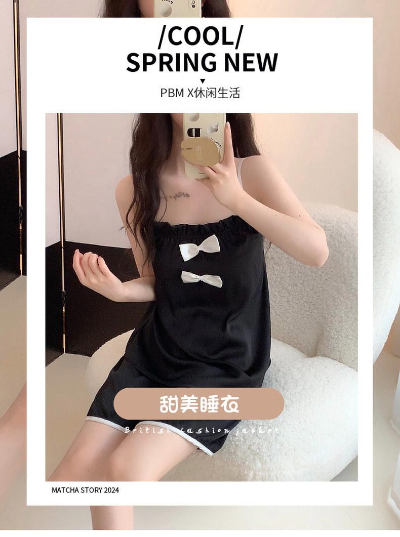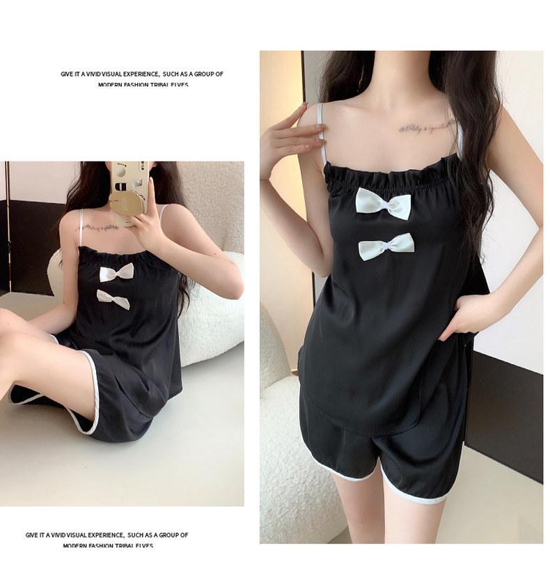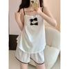 Pijama de Verano para Mujer de Seda de Hielo Delgada con Tirantes y Shorts Ropa para el Hogar Casual Dulce Seda de Hielo Sexy Traje de Dos Piezas