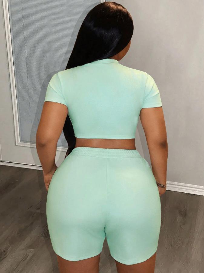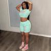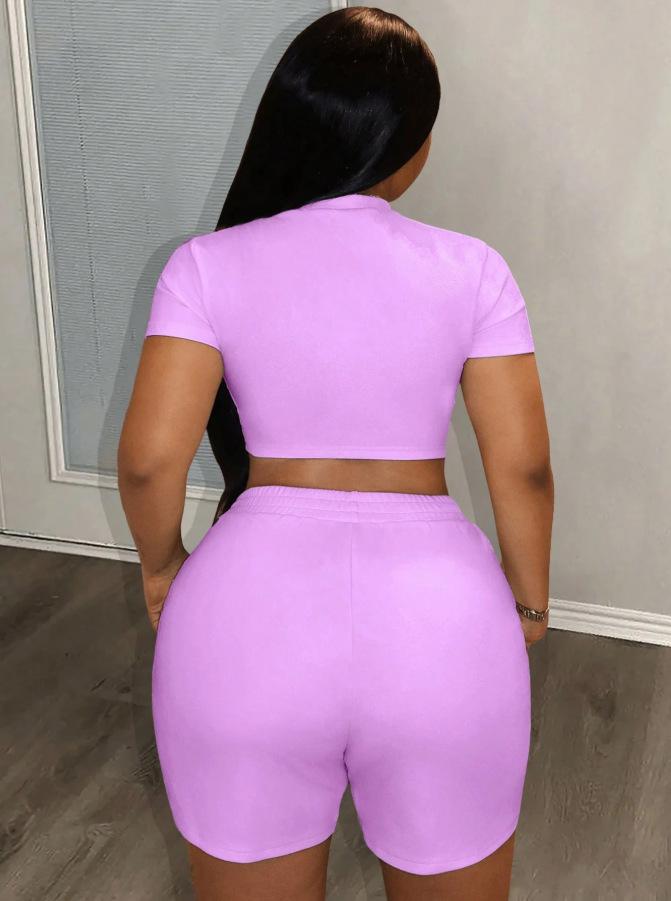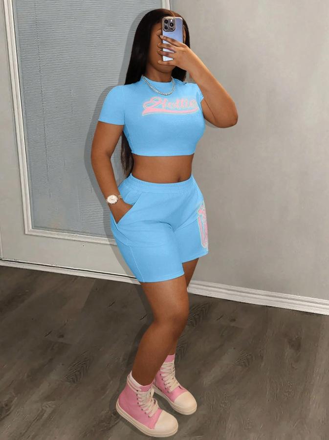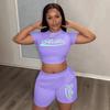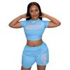 2025 Nuevo Traje Deportivo de Moda Europea y Americana Transfronterizo Delgado Retro Chica Caliente con Estampado de Letras Top de Manga Corta y Shorts
