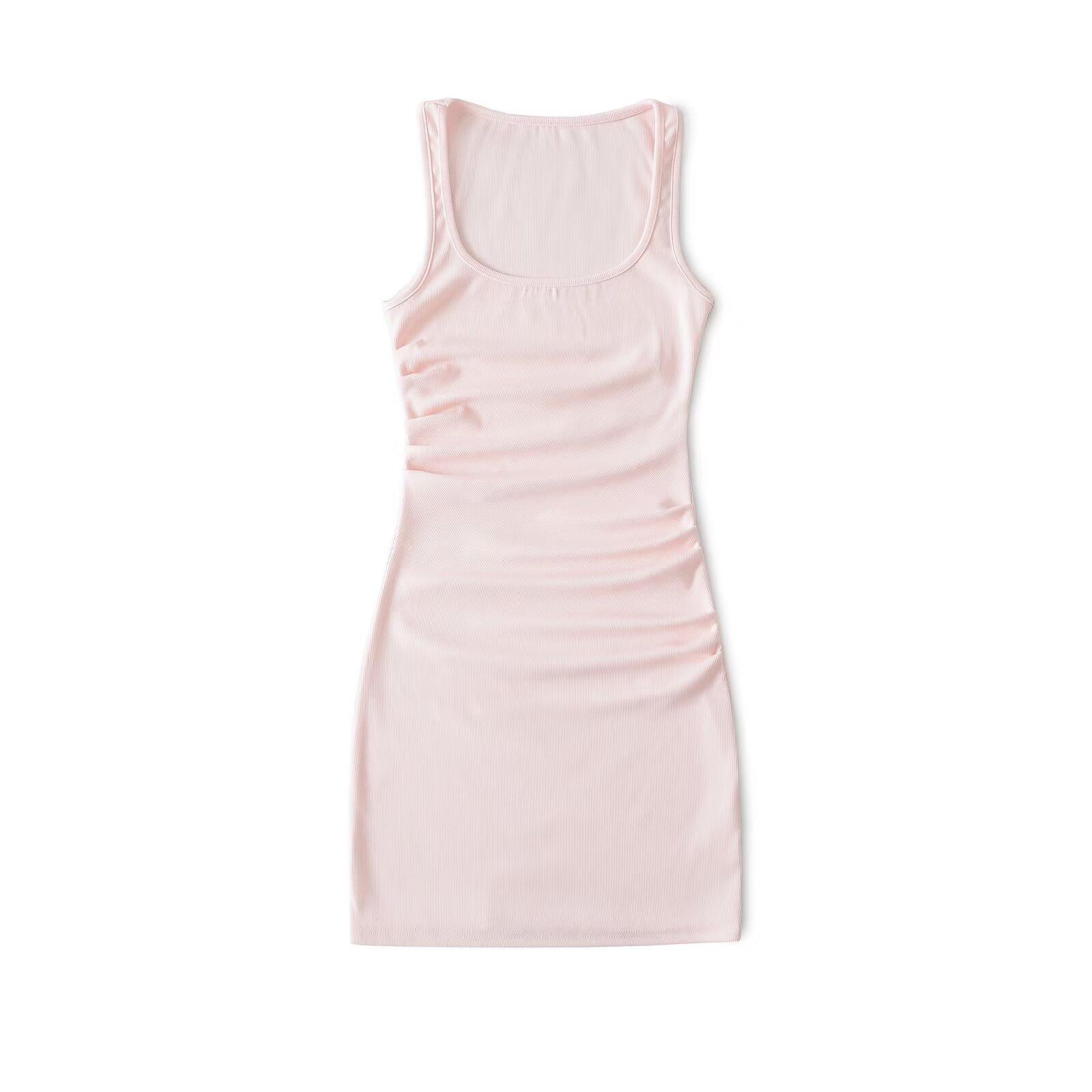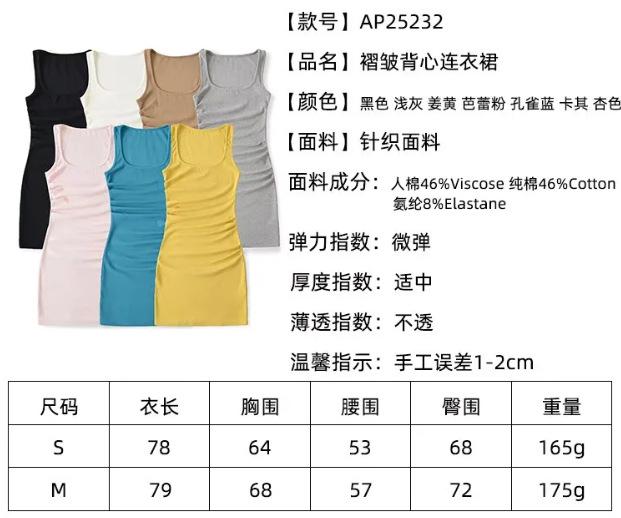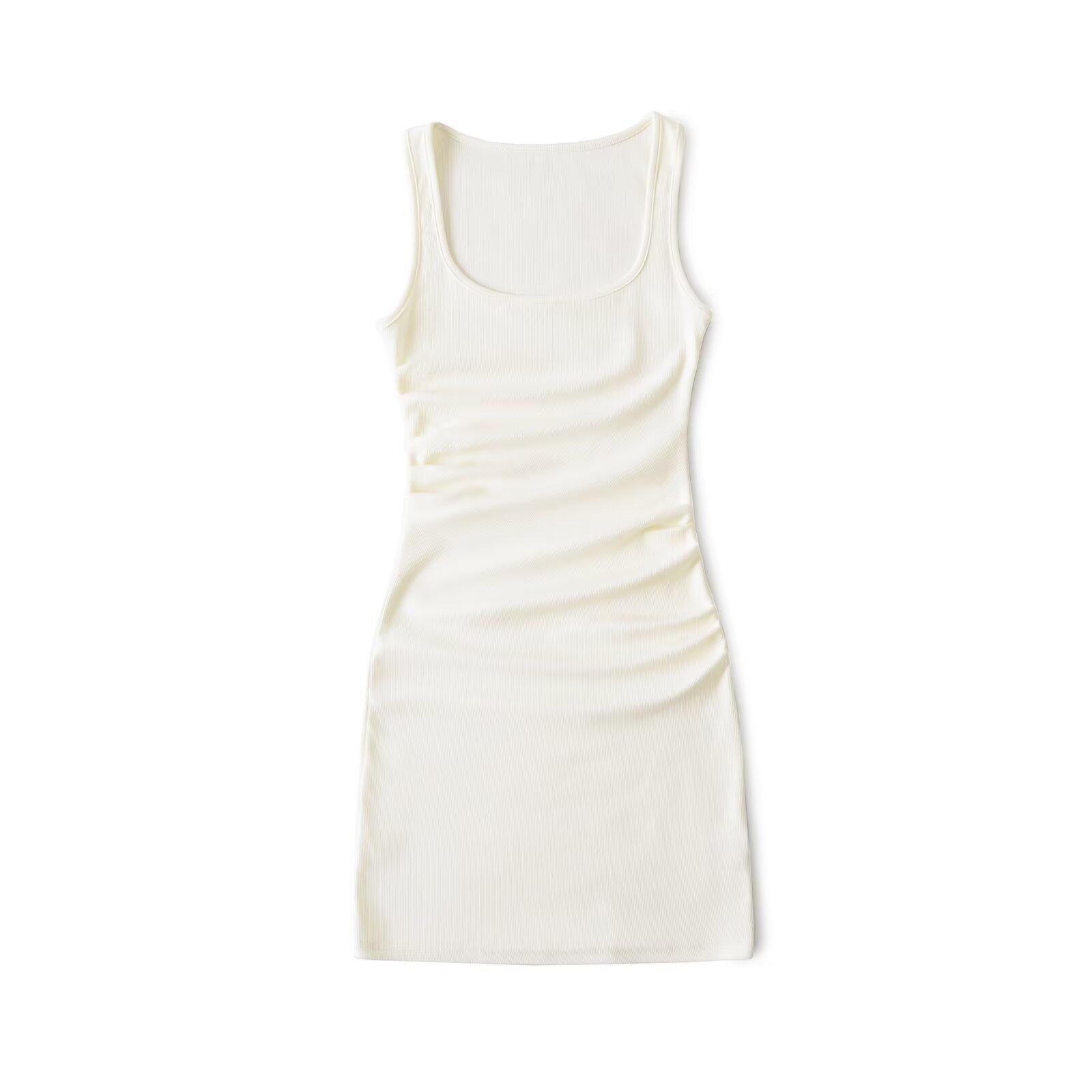 Americano 2025 Nuevo Verano Sexy Sexy Vestido Chaleco Plisado Mujer Estilo Europeo y Americano Color Puro Falda Ajustada