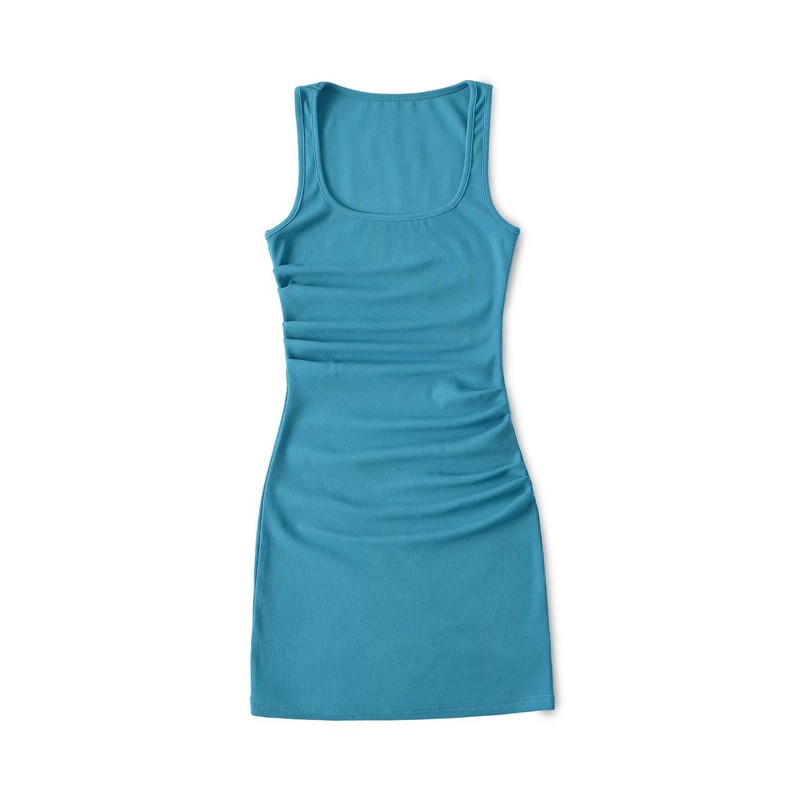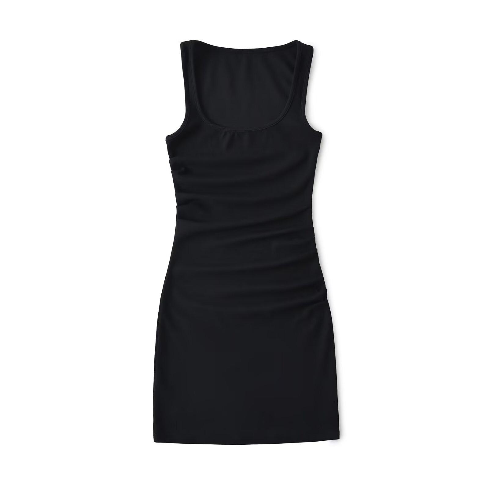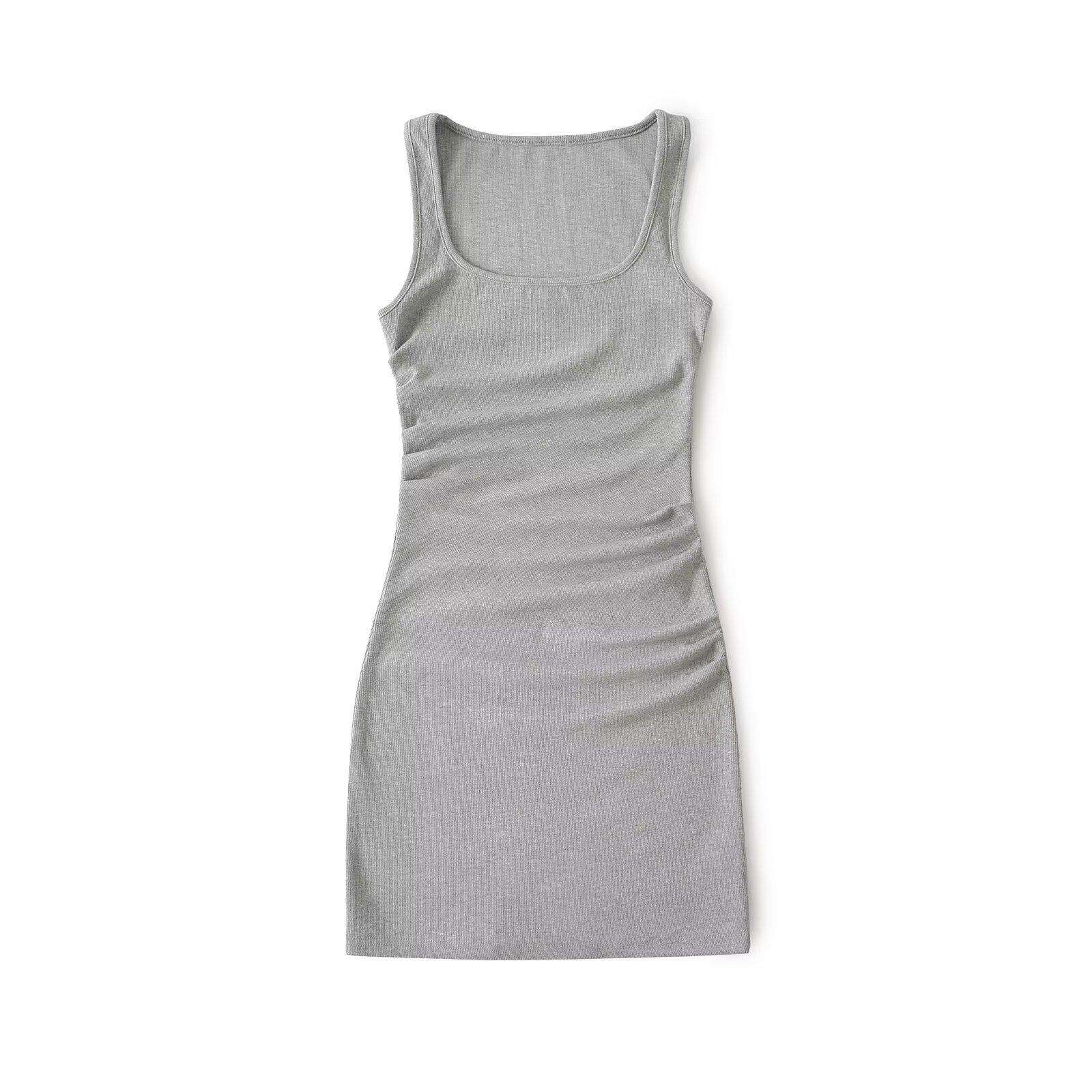 Americano 2025 Nuevo Verano Sexy Sexy Vestido Chaleco Plisado Mujer Estilo Europeo y Americano Color Puro Falda Ajustada