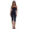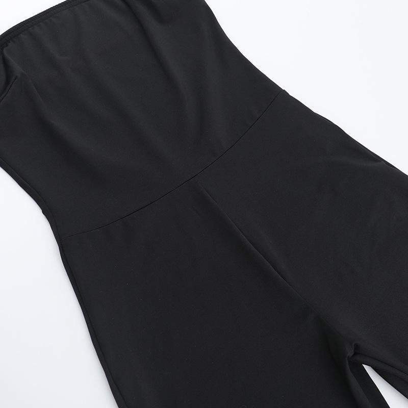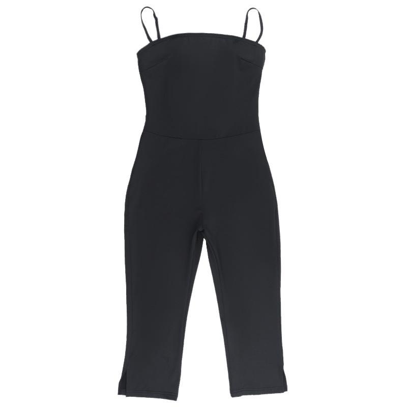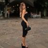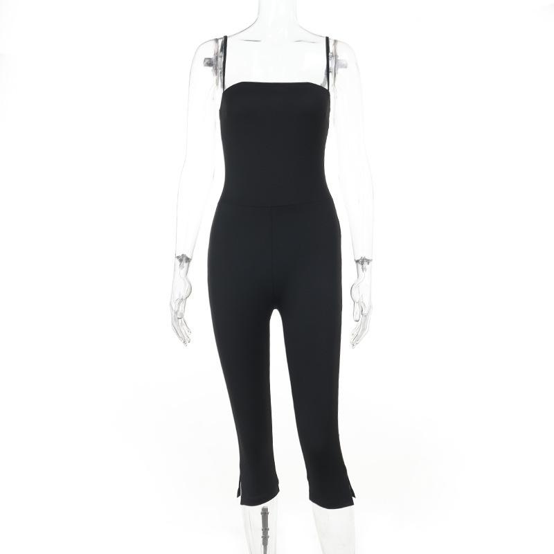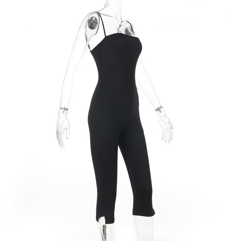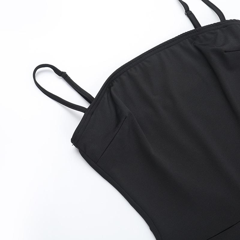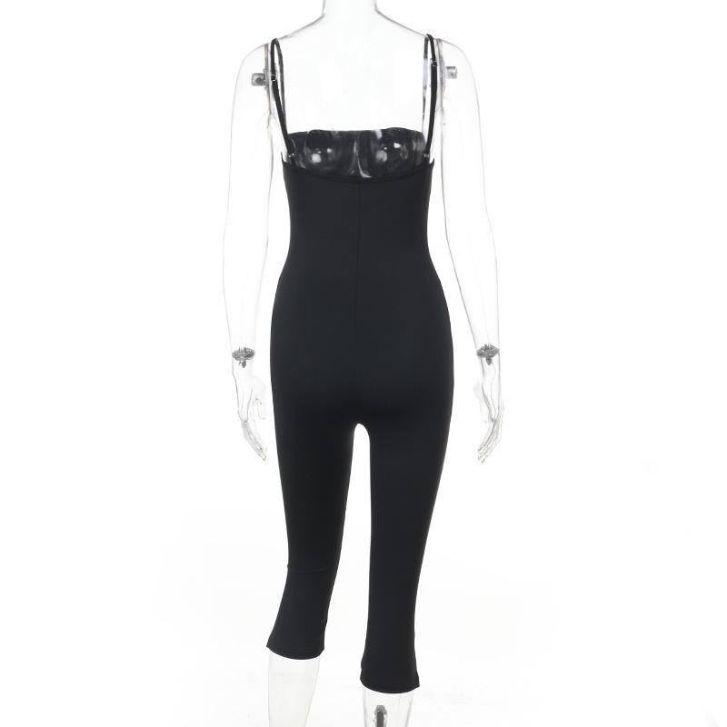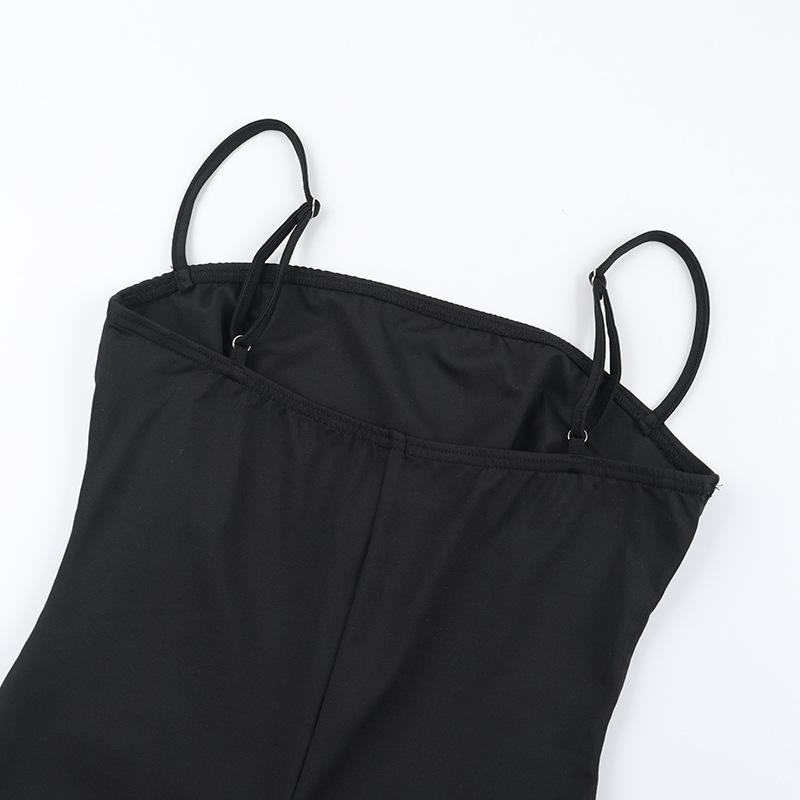 2025 Europeo y Americano Nuevo Sexy Moda Tirantes Cuello Cuadrado Espalda Descubierta Negro Ajustado Chica Caliente Calle Durazno Trasero Mono