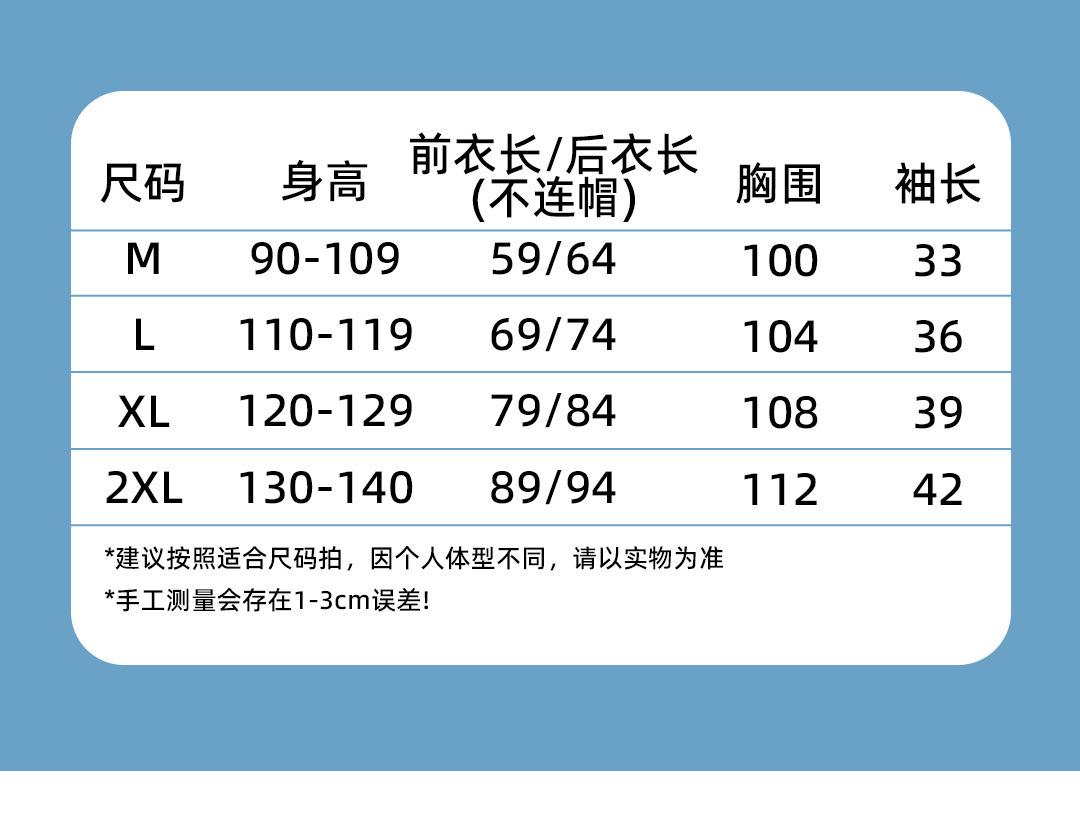 M size [height 90-109cm], L size [height 110-119], Xl size [height 120-129], 2xl size [height 130-140]