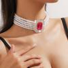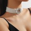 Collar Transfronterizo Nuevo Europeo y Americano de Aleación Geométrico de Hoja Joyería Collar de Perla Artificial Gota de Aceite Venta de Fábrica