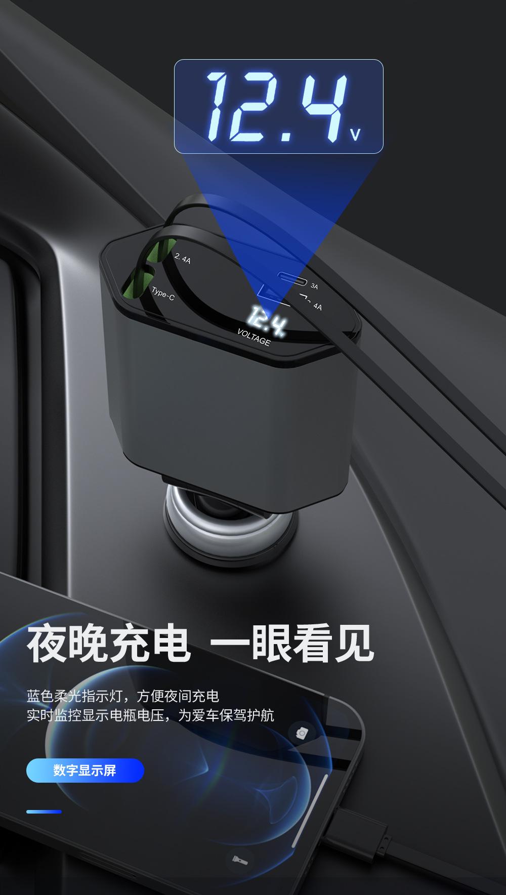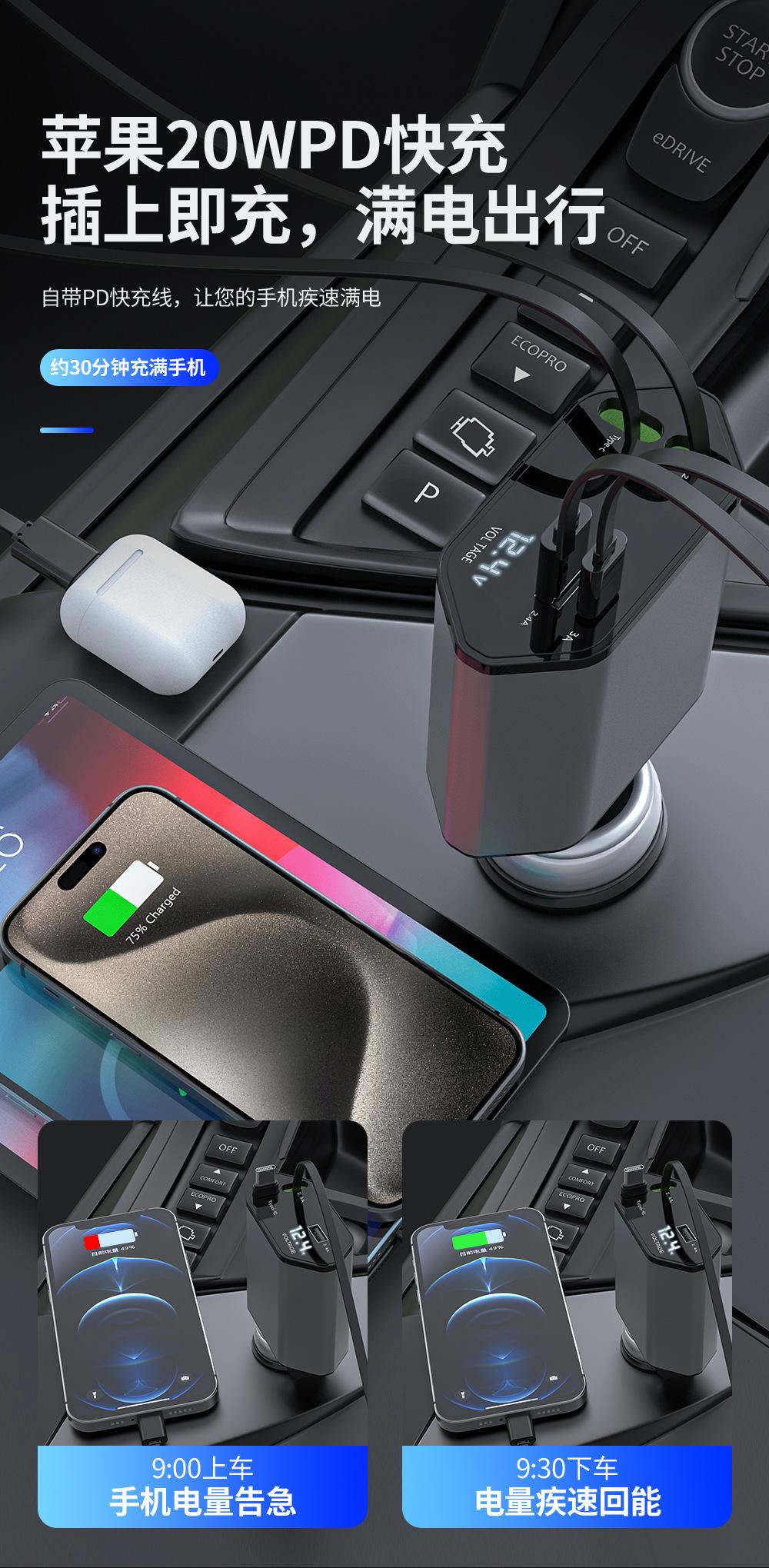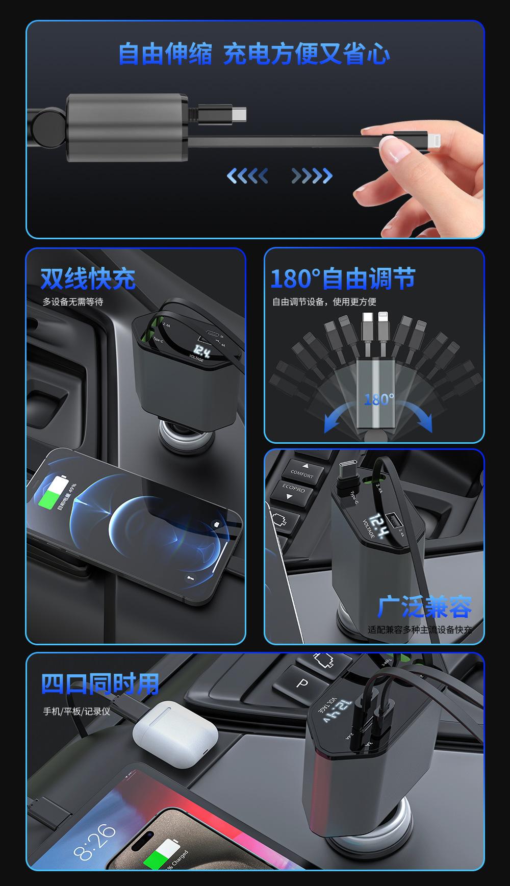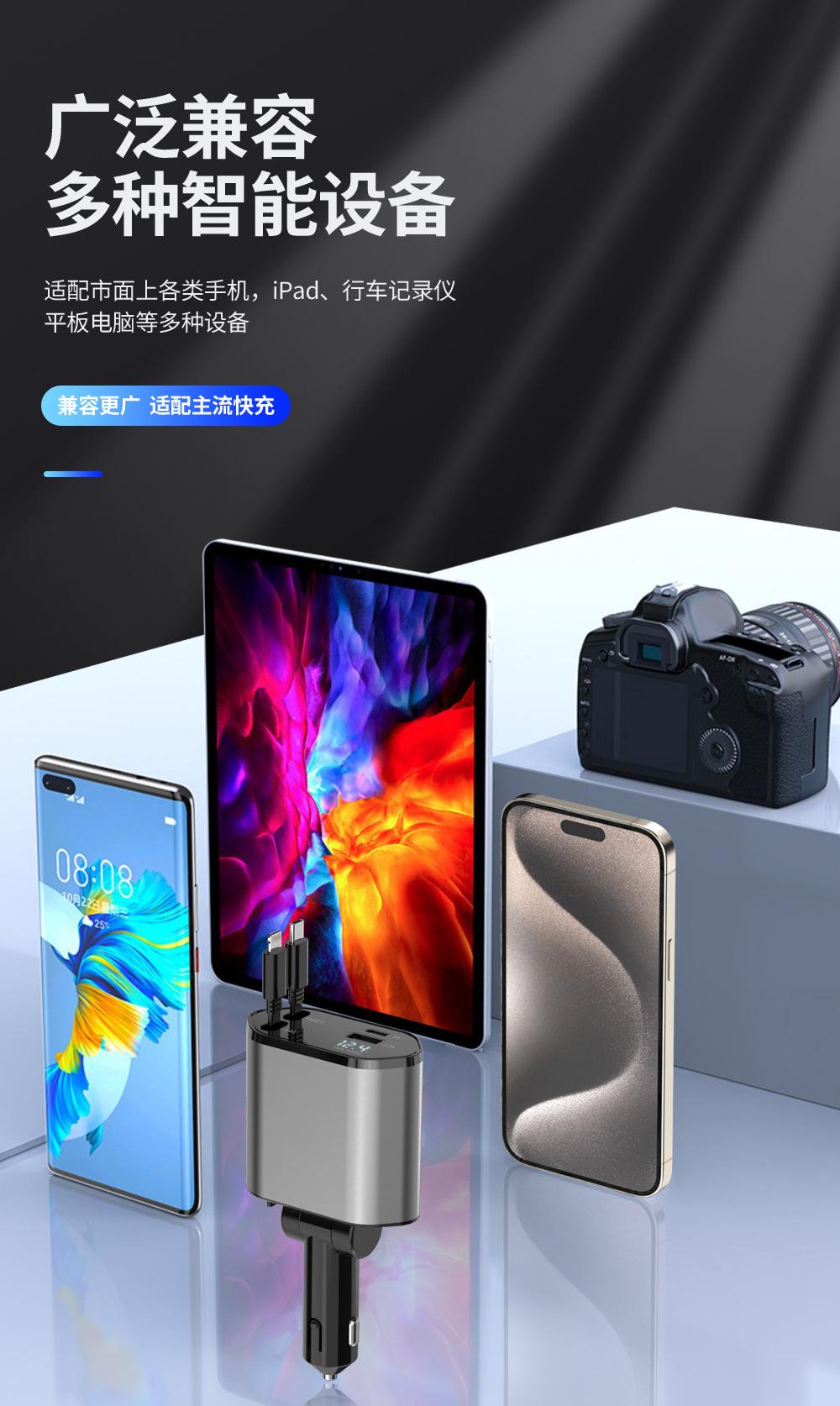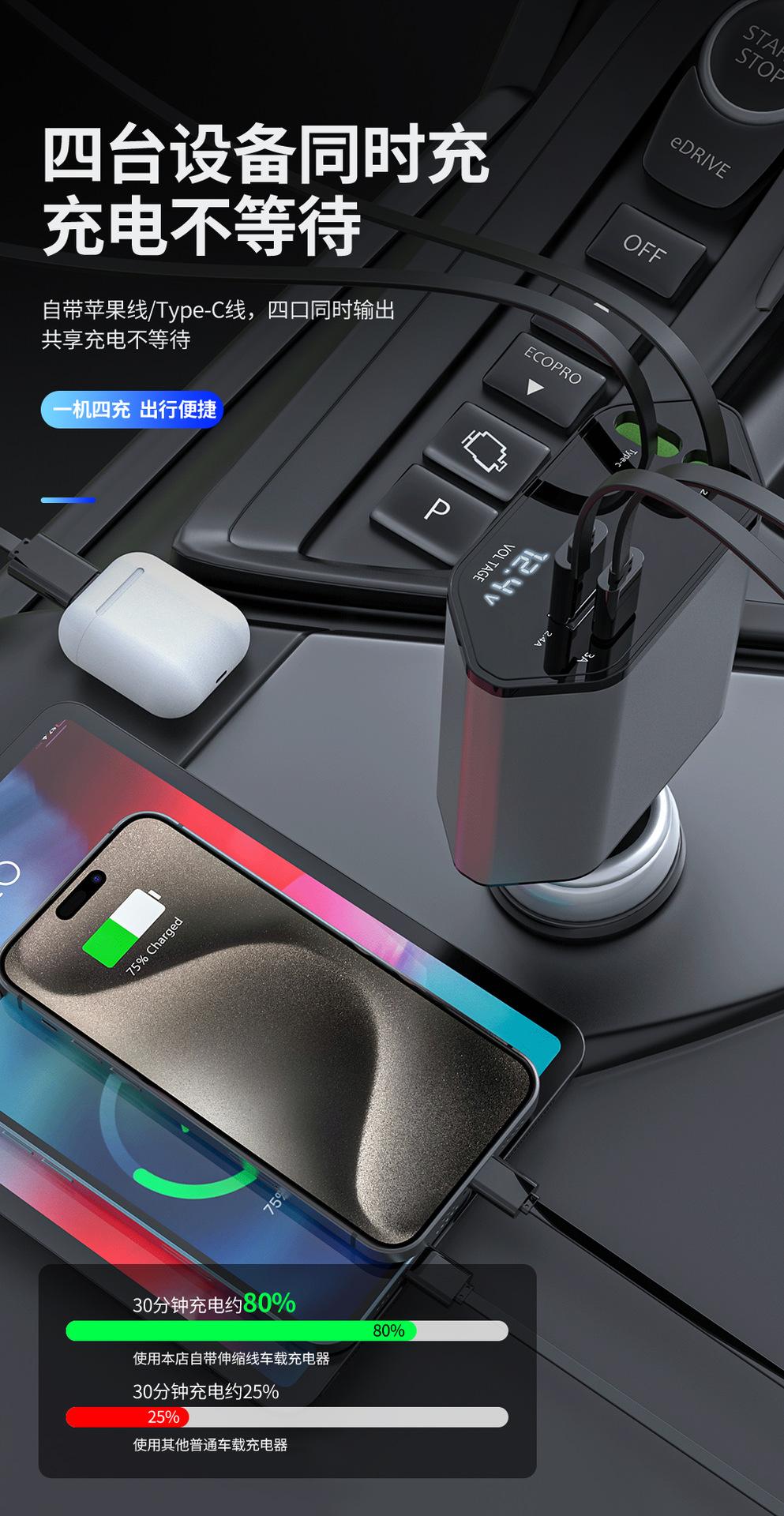 Cargador de coche de 120 W, carga súper rápida, telescópico, de uno a cuatro flashes, para encendedor de coche, para Apple 15 Huawei