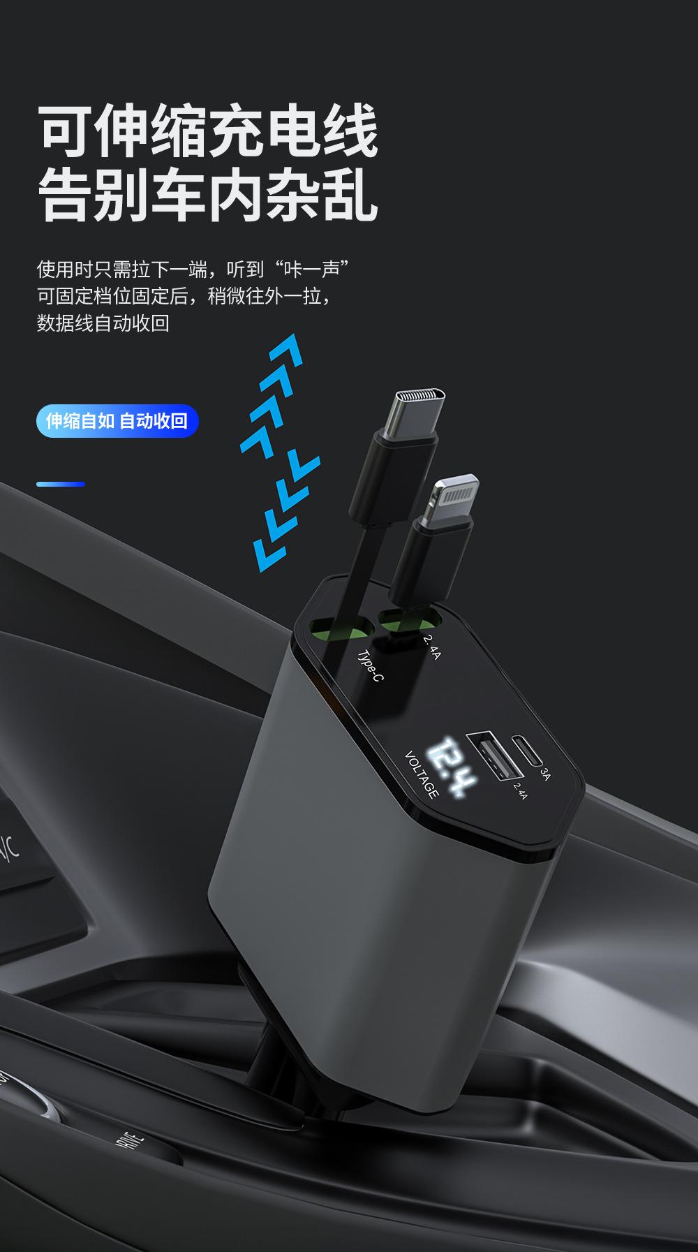 Aluminum alloy shell [type-c + apple interface] freely retractable ★ 120w super fast charging
