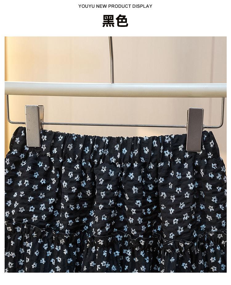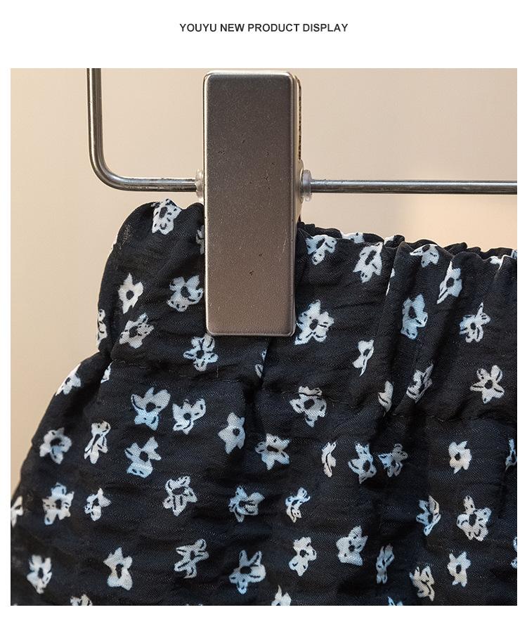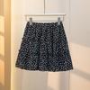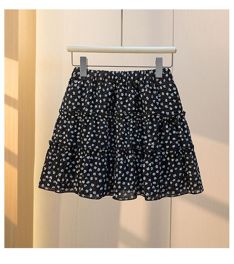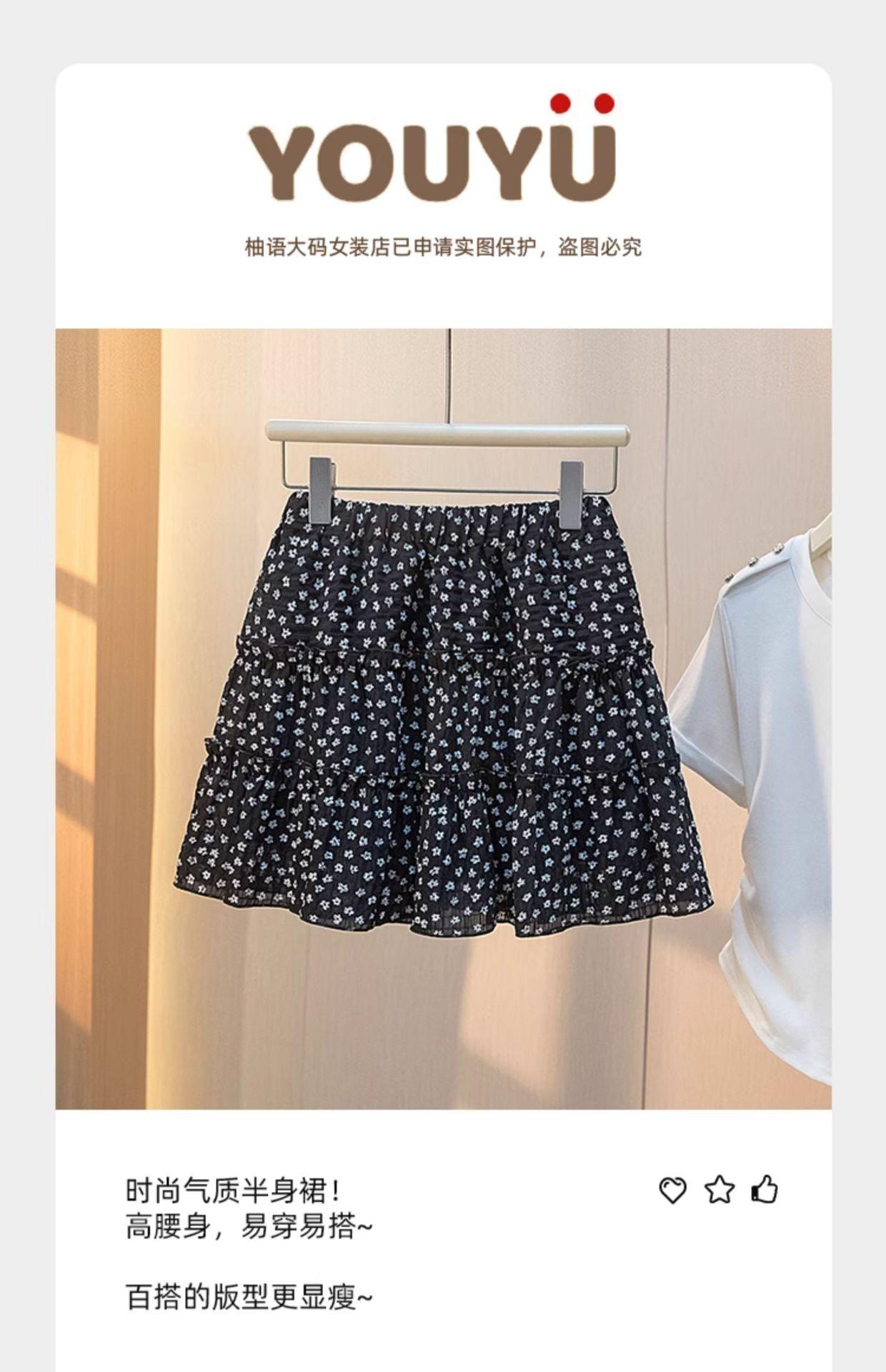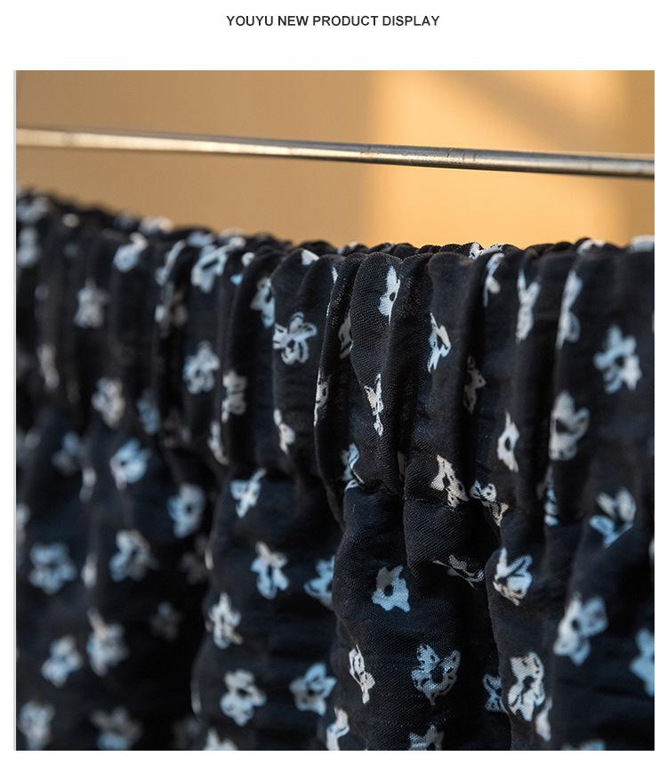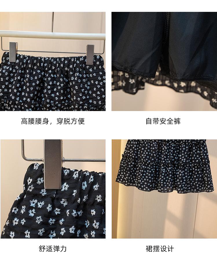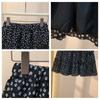 Verano 2025 Pantalones cortos culottes negros florales tipo pastel para mujer con cintura alta que cubren el vientre y dan un aspecto adelgazante, figura en forma de pera, pantalones falda acampanados