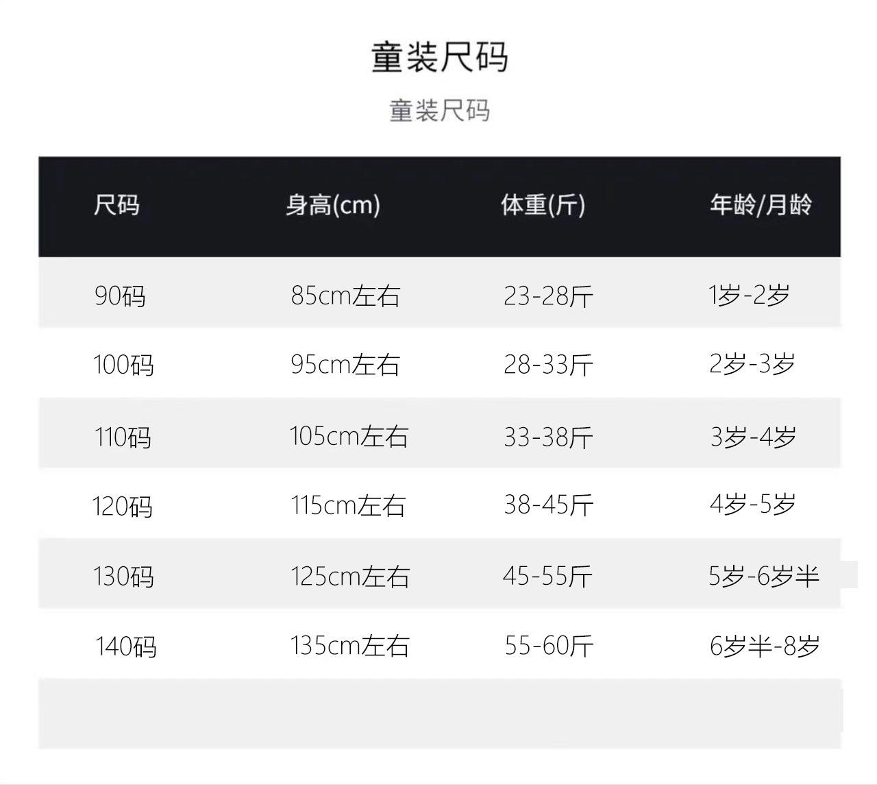 Children (3~8 years old, 100~140cm)