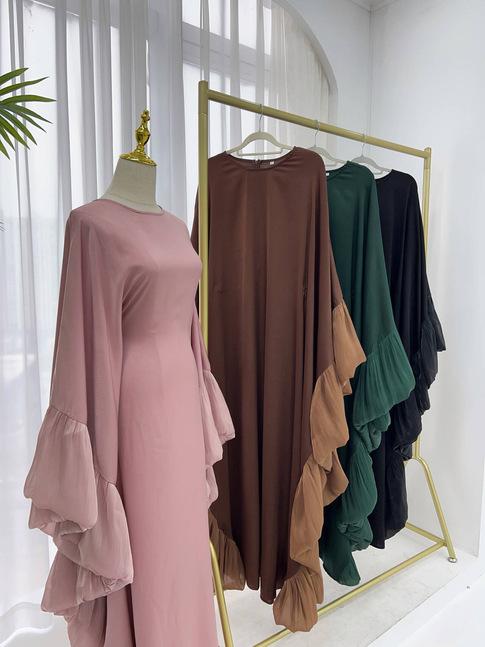 2025Loriya AliExpress Amazon Dubái Industria Pesada Manga de Encaje Empalmado Bata Larga LR951