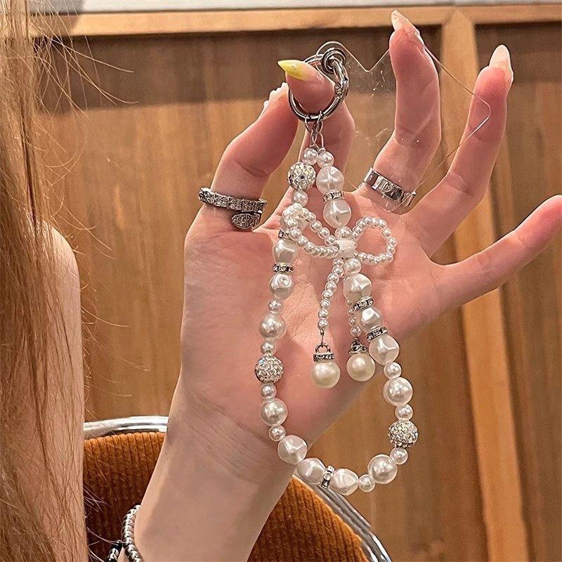 Nueva Cadena para Teléfono Móvil con Lazo de Perlas Incrustado de Diamantes Llavero Accesorios Colgantes Bolso Cadena a Prueba de Caídas Colgante para Teléfono Móvil de Cuentas Hecho a Mano