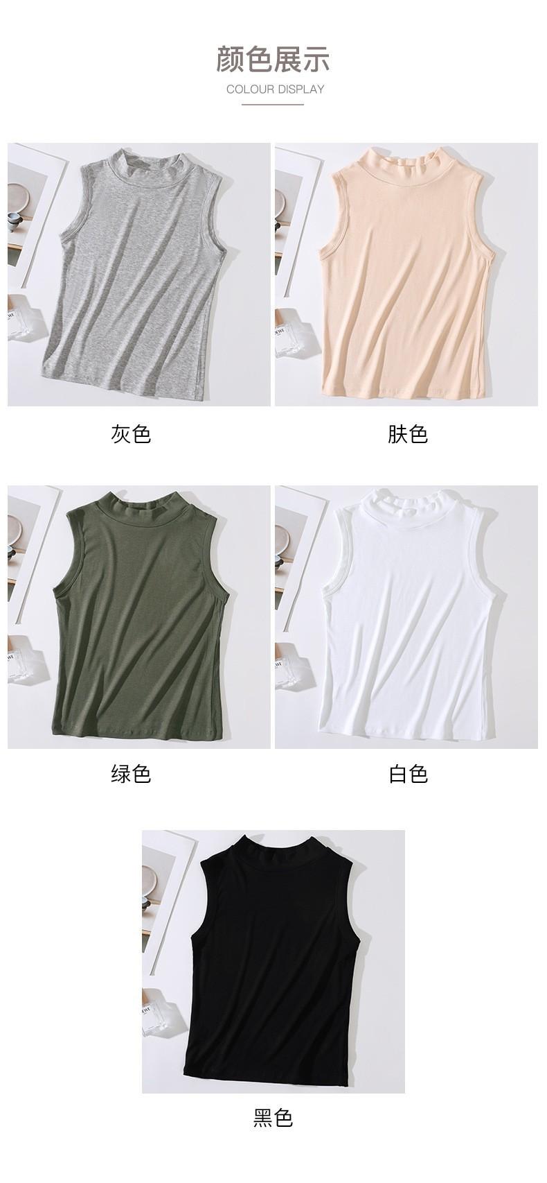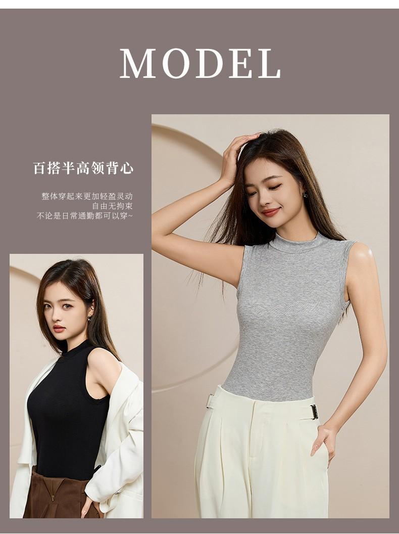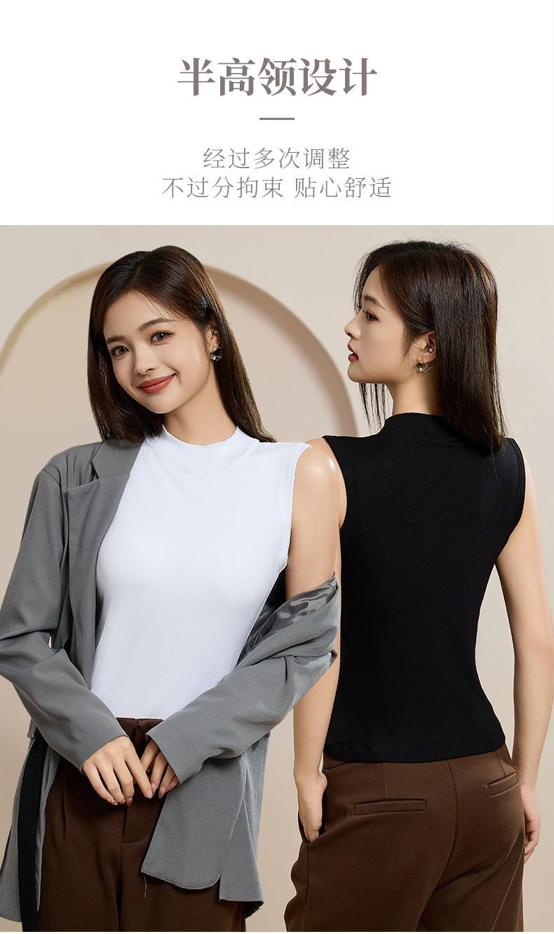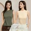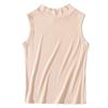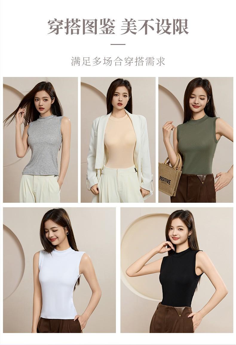 Camisola Interior de Mujer 2025 Nueva Camiseta Base Elegante de Mujer con Cuello Semialto Color Sólido Elástica Top sin Mangas