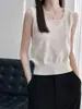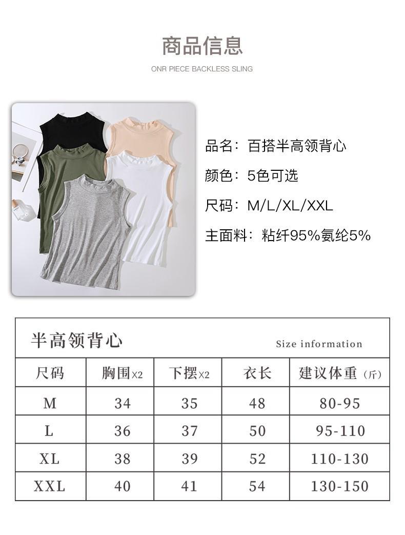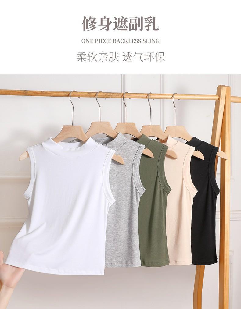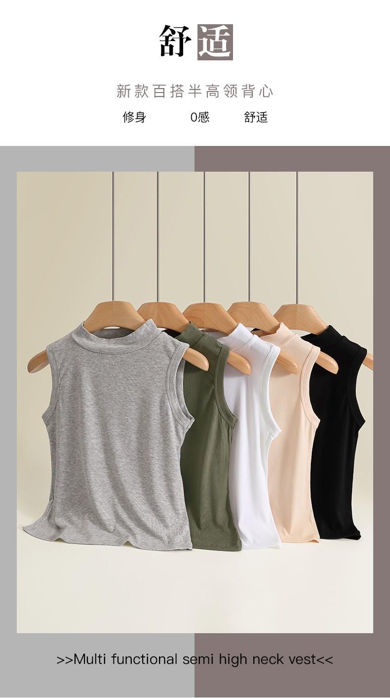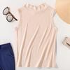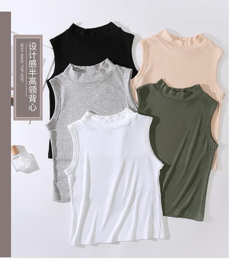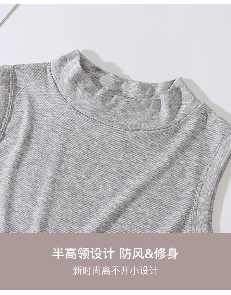 Camisola Interior de Mujer 2025 Nueva Camiseta Base Elegante de Mujer con Cuello Semialto Color Sólido Elástica Top sin Mangas
