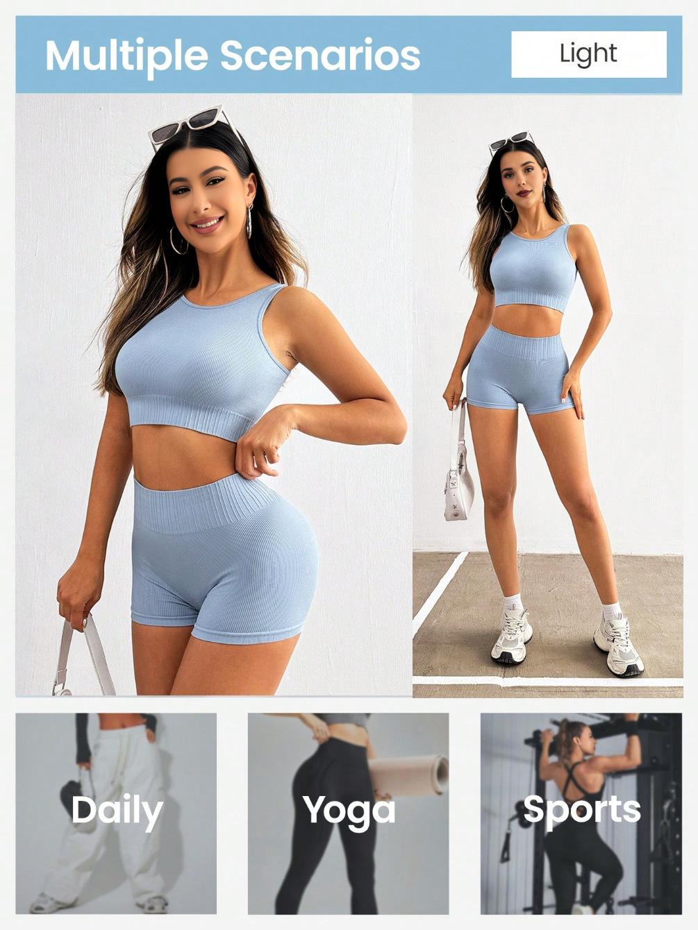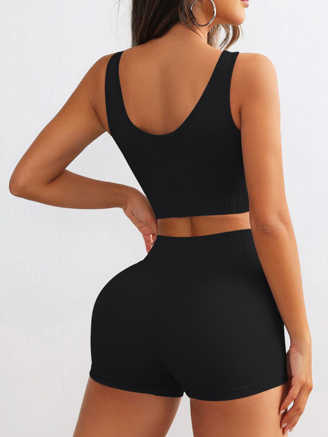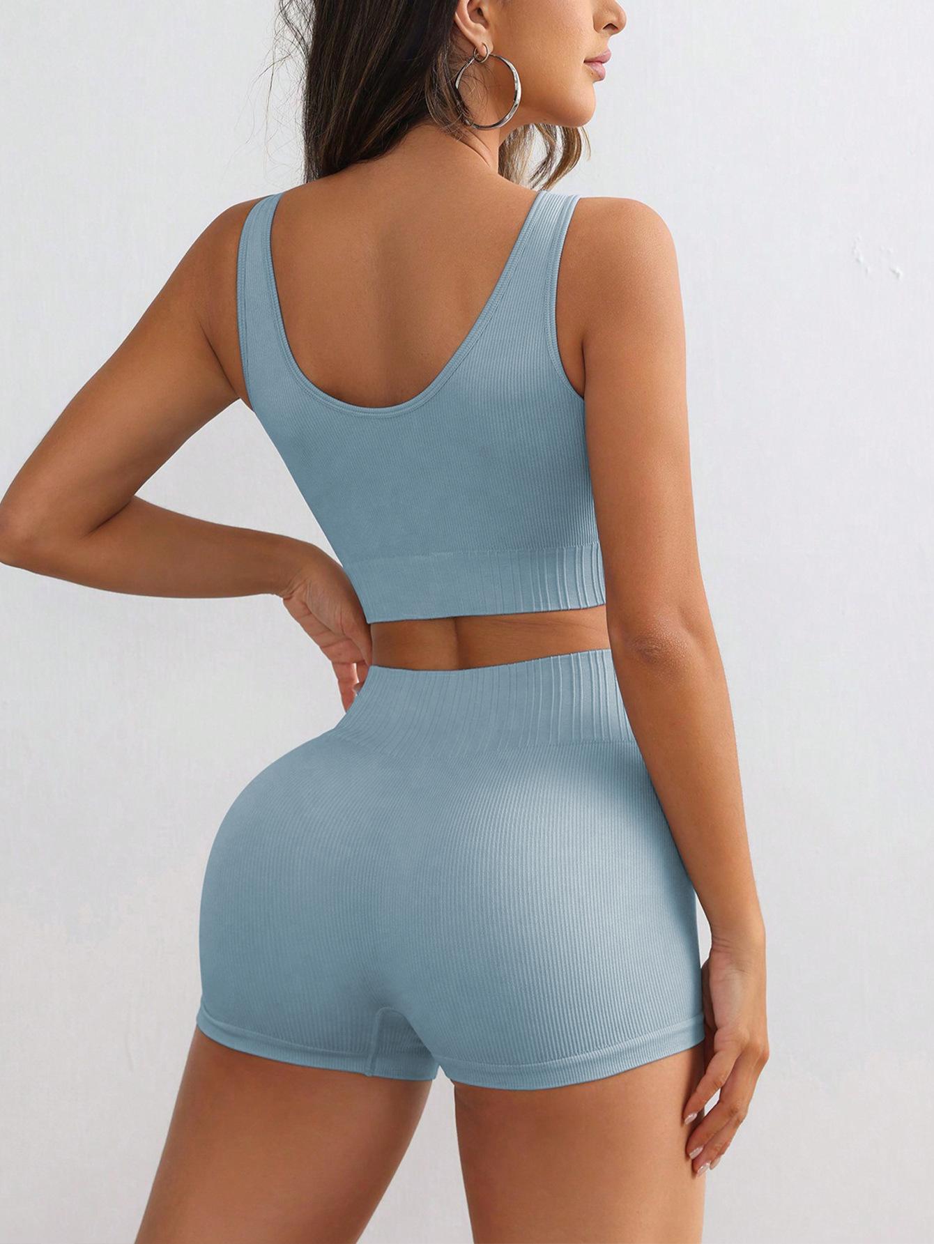 Shorts Deportivos Europeos y Americanos Transfronterizos para Mujer de Cintura Alta Levanta Glúteos Chaleco de Alta Elasticidad con Ombligo Descubierto Traje Casual de Moda de Secado Rápido Ropa de Yoga