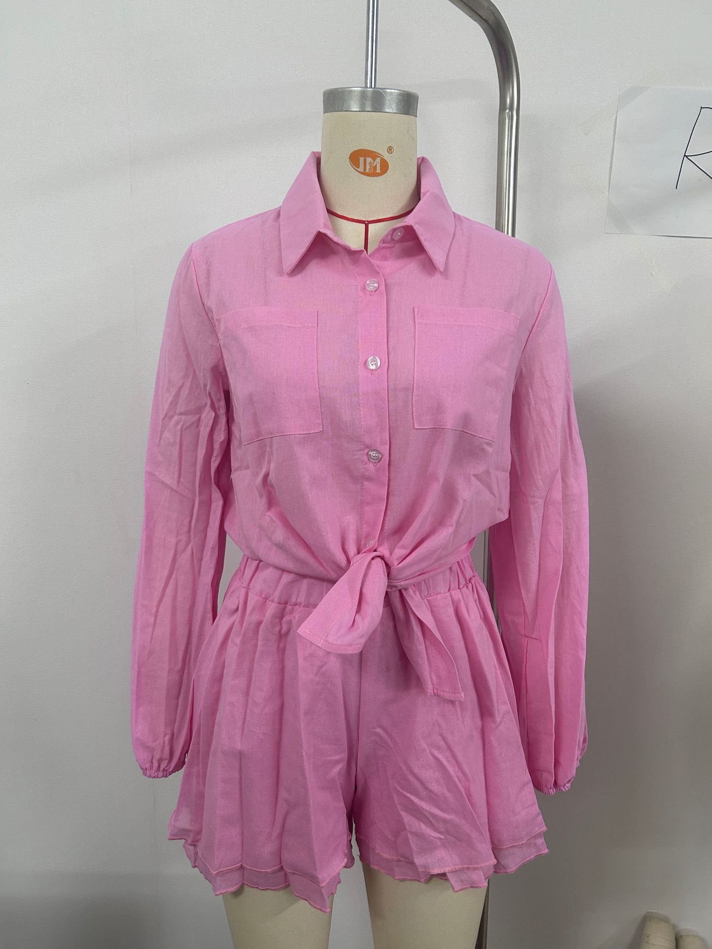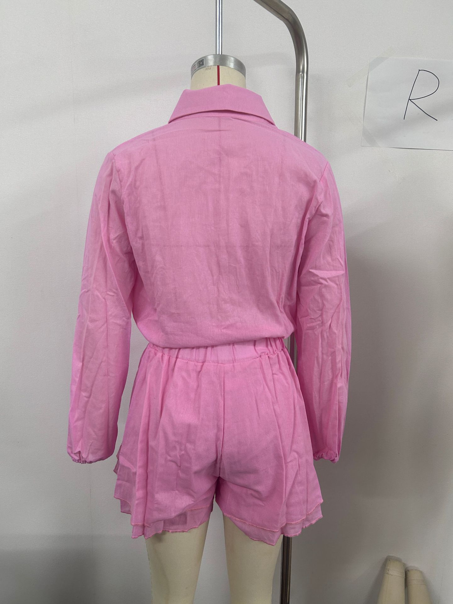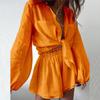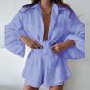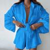 2024 Amazon Verano Europeo y Americano Transfronterizo Nuevo Traje de Camisa y Shorts Casuales de Moda para Mujer de Color Sólido con Volantes
