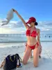 Nuevo Estilo Europeo y Americano Estilo Retro Americano Tirantes de Color Contrastante Estilo Chica Caliente Bikini Dividido de Dos Piezas Traje de Baño para Vacaciones en la Playa
