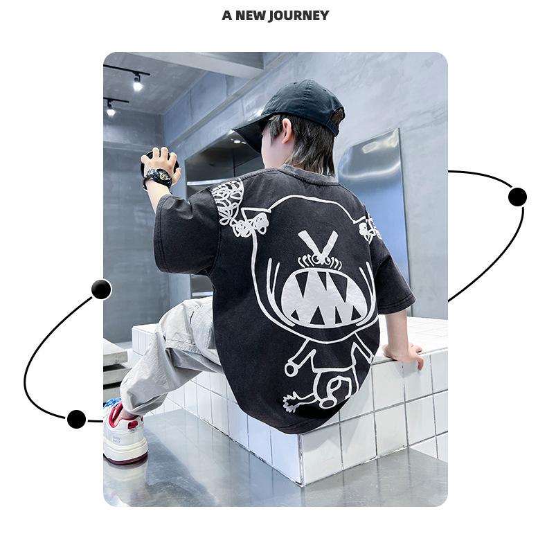 Ropa para niños Camiseta de manga corta para niños 2025 Nueva Camiseta de verano de media manga para niños Top guapo Camiseta de verano de dibujos animados para niños