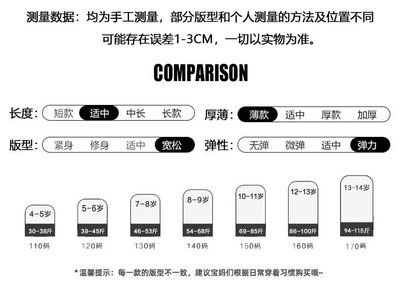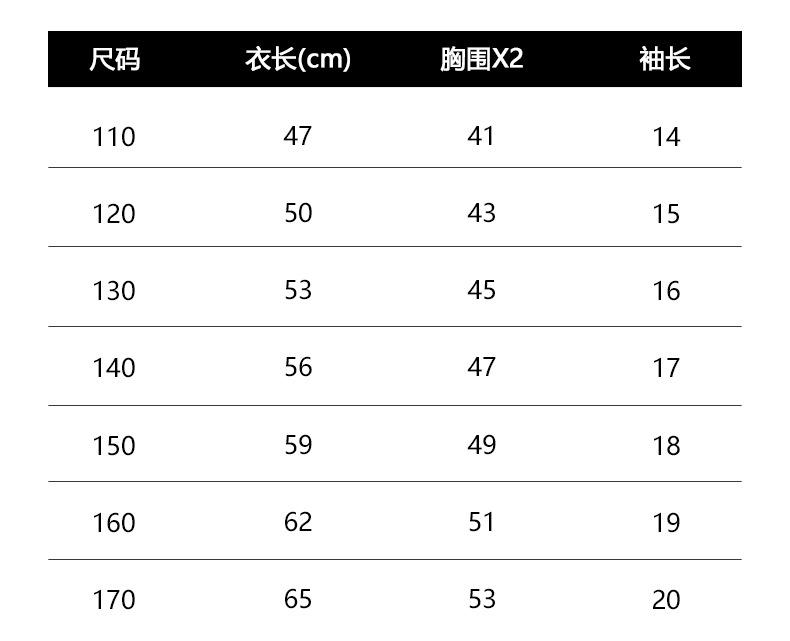 110cm, 120cm, 130cm, 140cm, 150cm, 160cm, 170cm