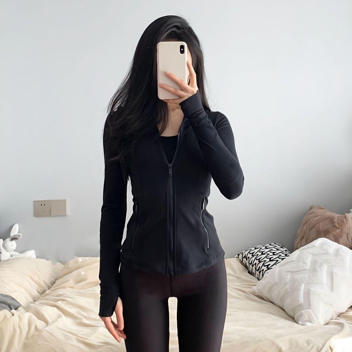 Primavera y Otoño Nuevo elástico ajustado adelgazante ropa de yoga cárdigan abrigo protección solar top de secado rápido para correr al aire libre para mujer