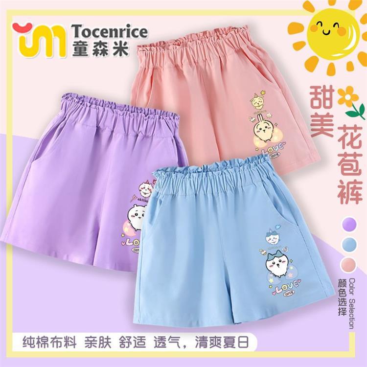 Shorts de Algodón de Verano para Niñas con Diseño de Cintura de Capullo de Flor para Niños