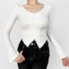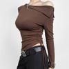 Camiseta de manga larga con cuello redondo y hombros descubiertos para mujer, estilo irregular, de primavera y otoño, con diseño de top corto, ajustada.