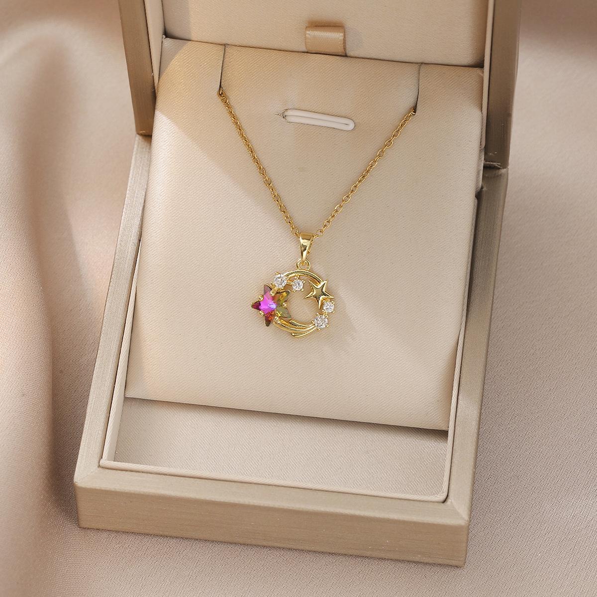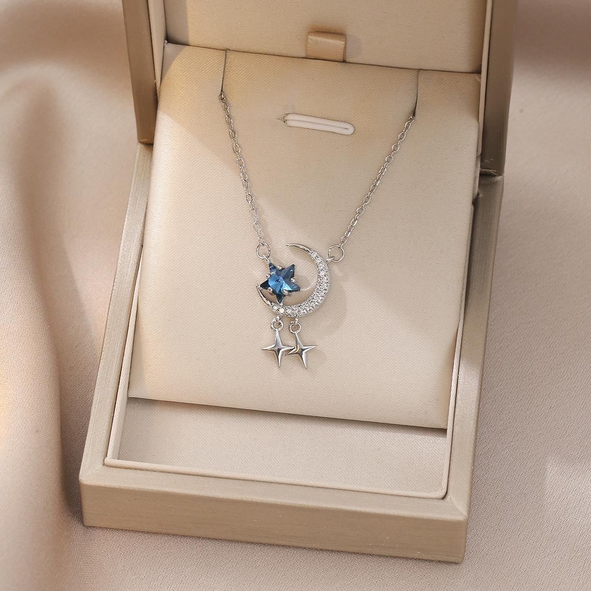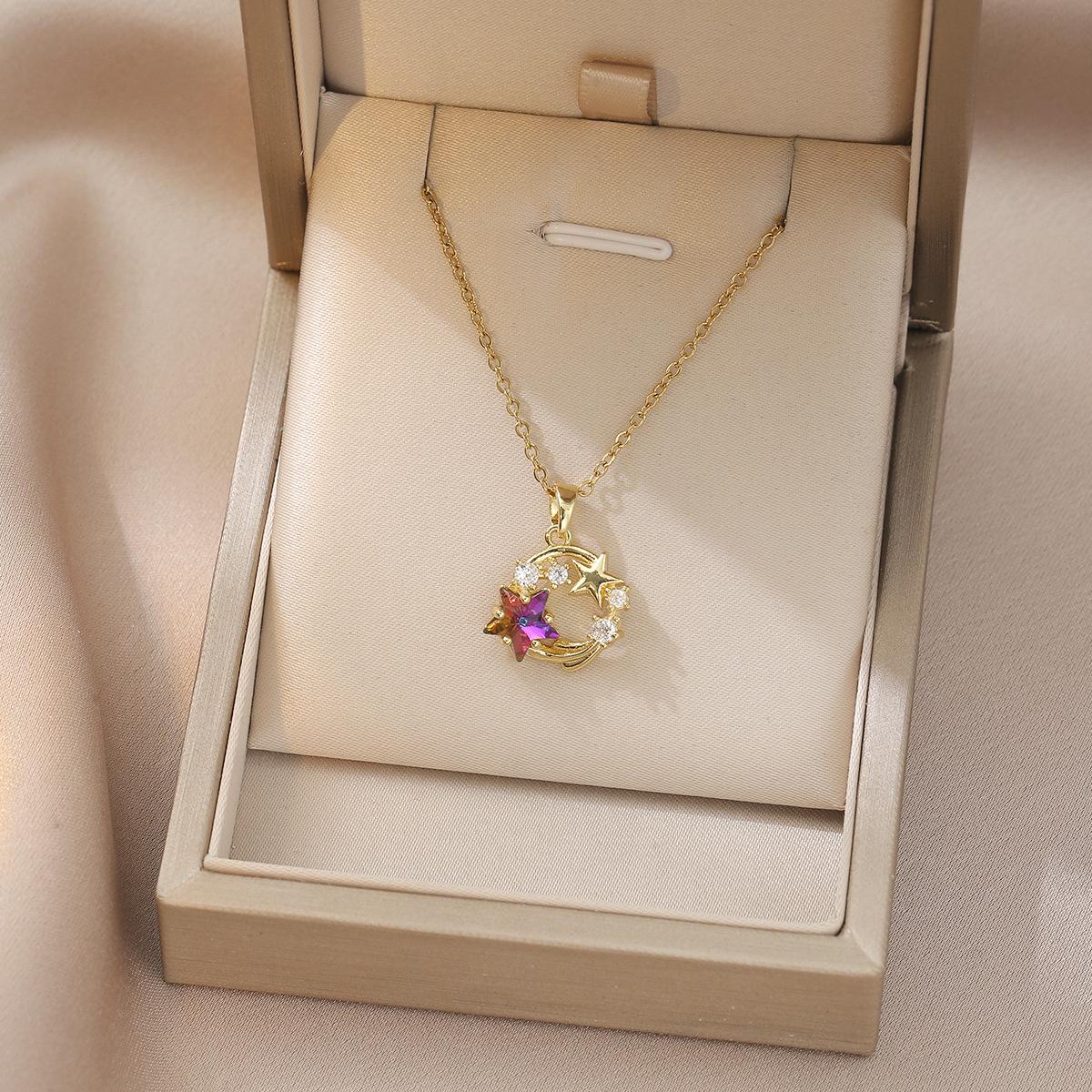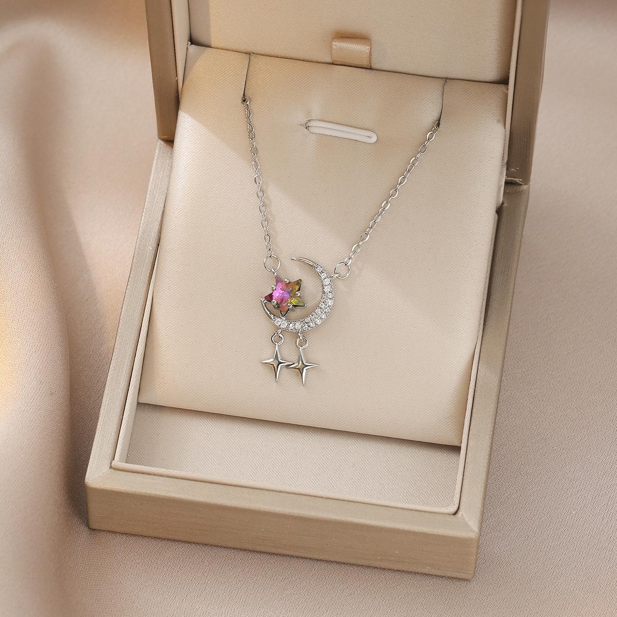 Collar para Mujer Celebridad de Internet Transfronteriza Estrella y Luna Colorido Nicho Estilo Europeo y Americano Estrella Colorida Nuevo Diseño Temperamento Collar de Acero de Titanio