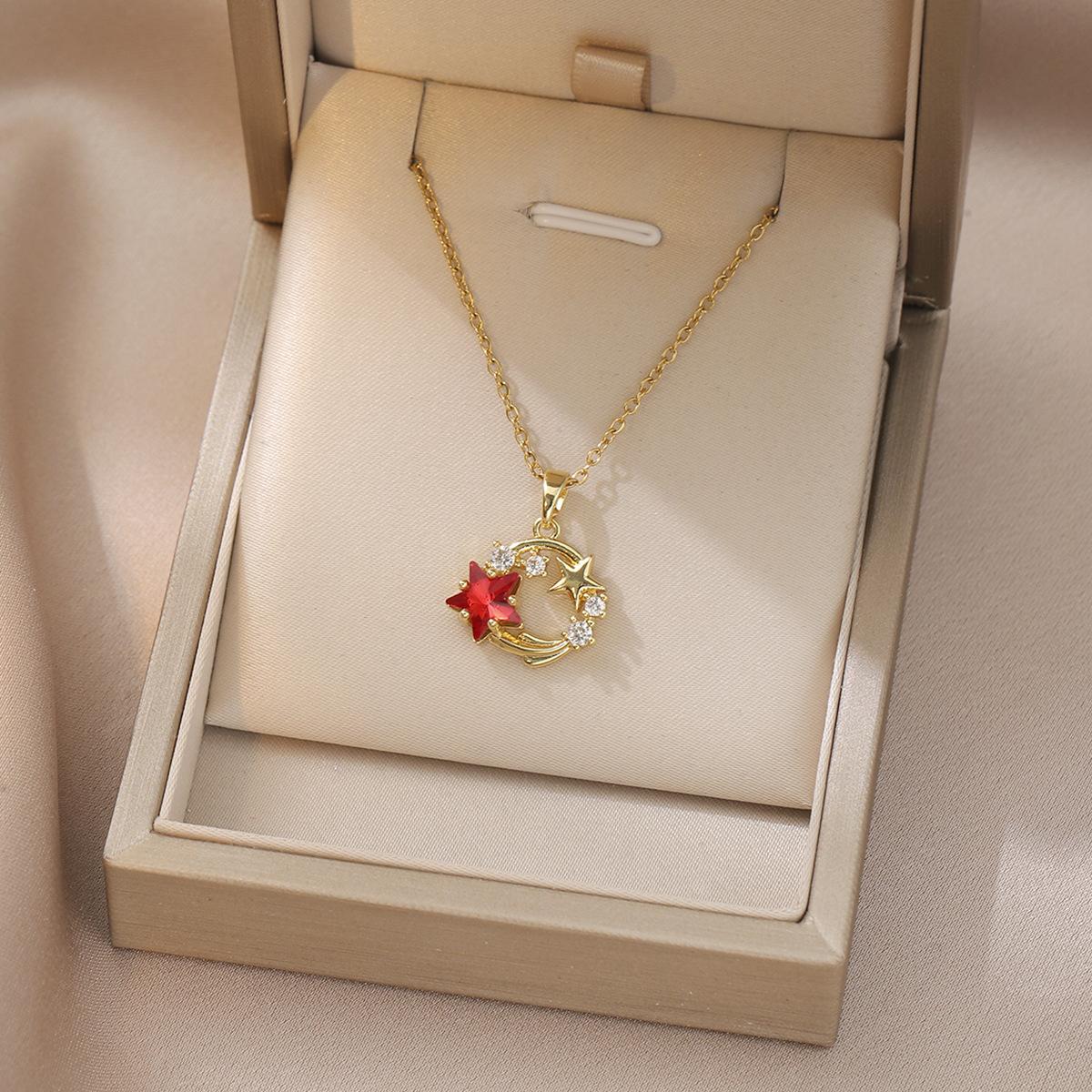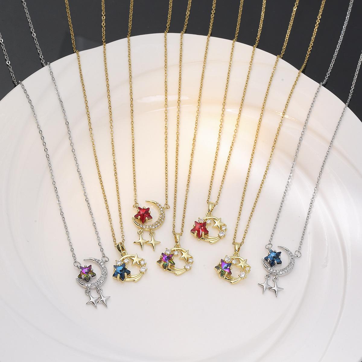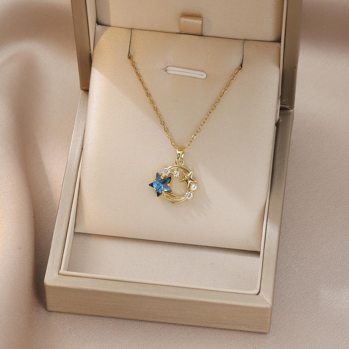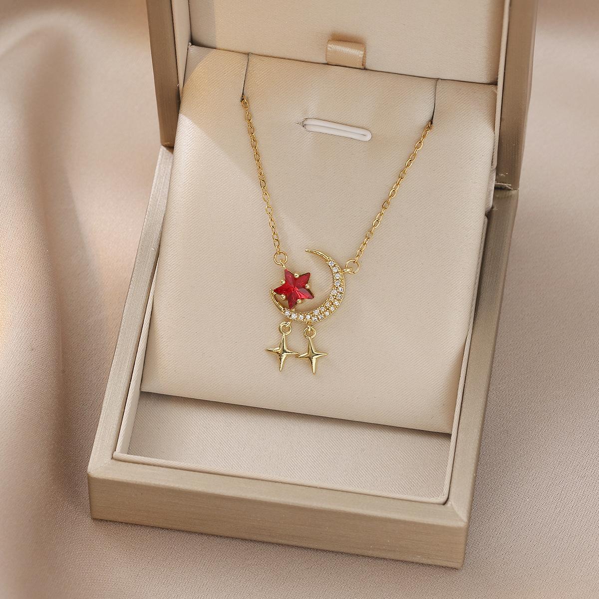 Collar para Mujer Celebridad de Internet Transfronteriza Estrella y Luna Colorido Nicho Estilo Europeo y Americano Estrella Colorida Nuevo Diseño Temperamento Collar de Acero de Titanio