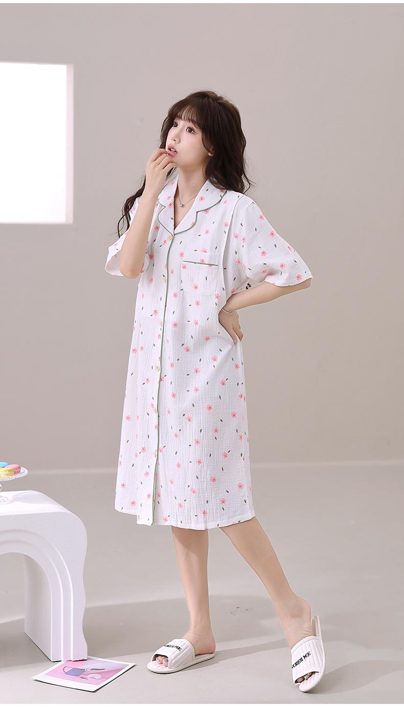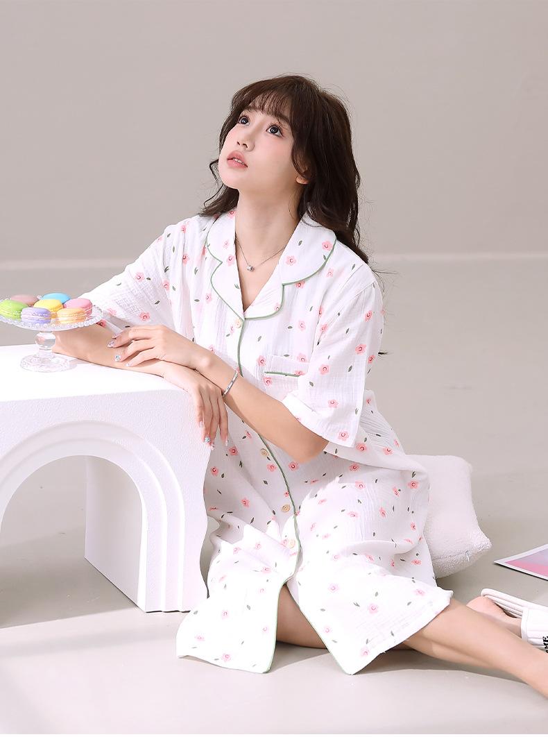 Camisón de Lactancia de Manga Corta Ropa de Maternidad Ropa de Descanso para Después del Parto Vestido para el Hogar Ropa para Amamantar con Estampados Pintados