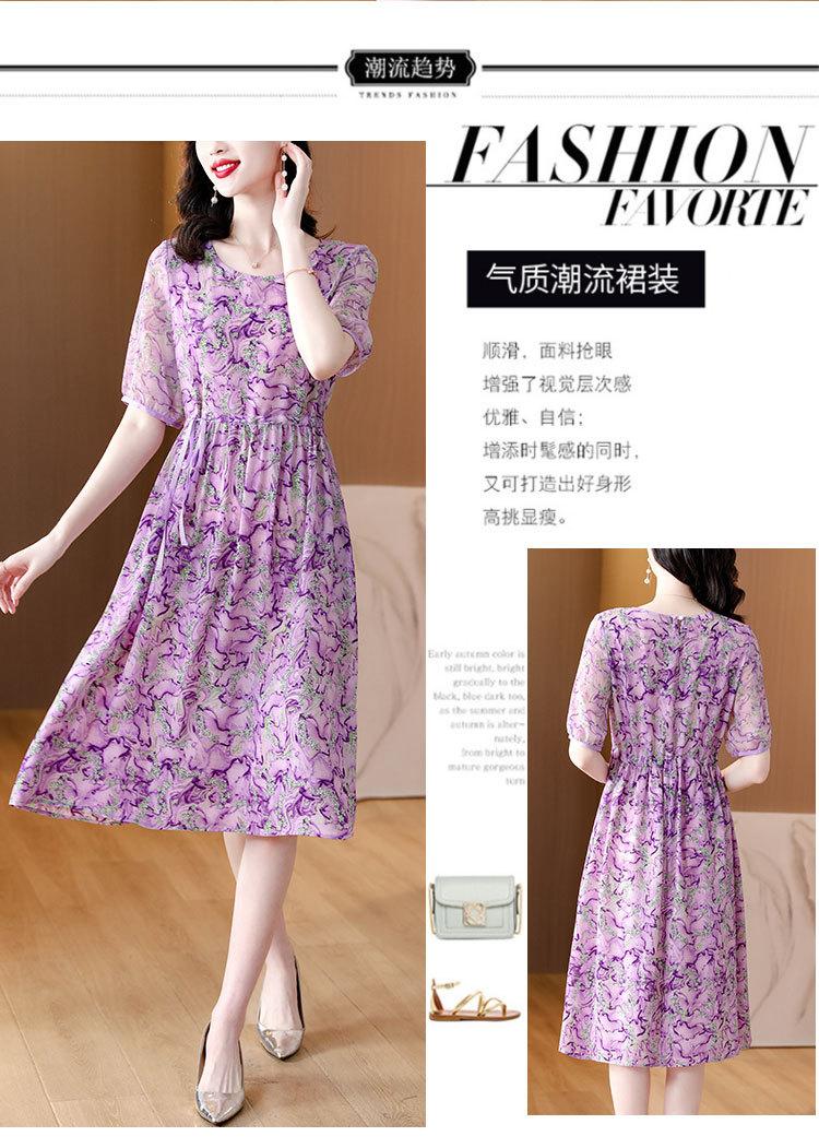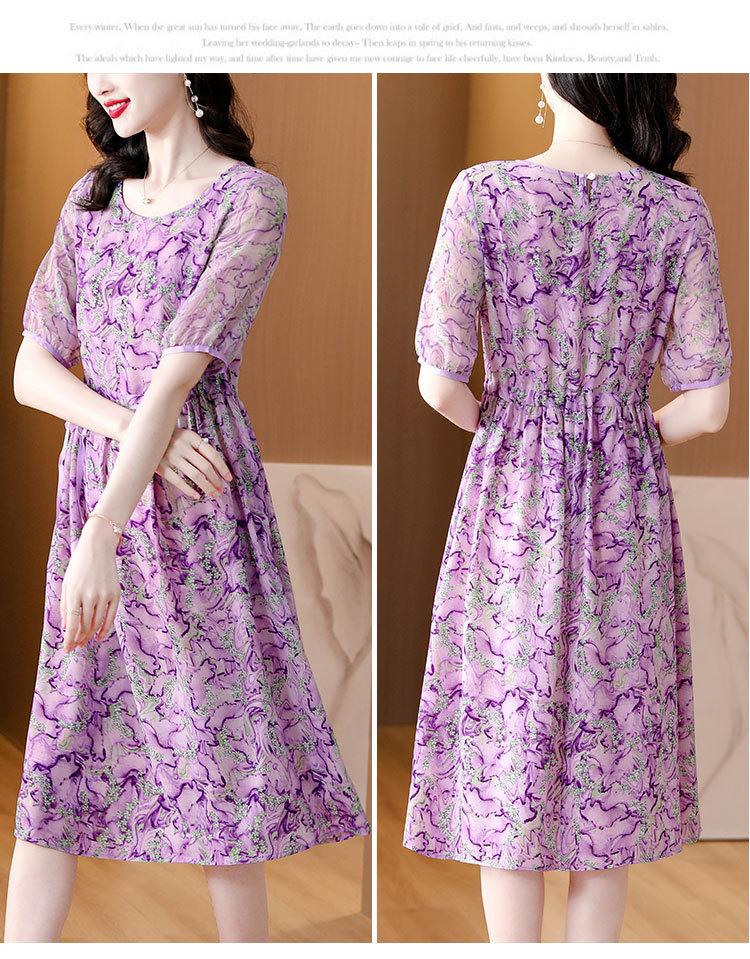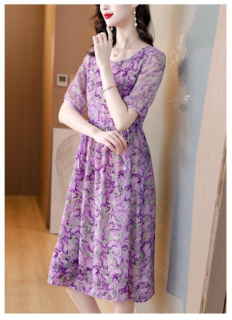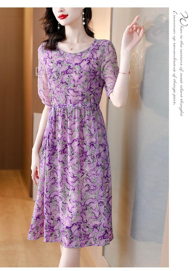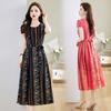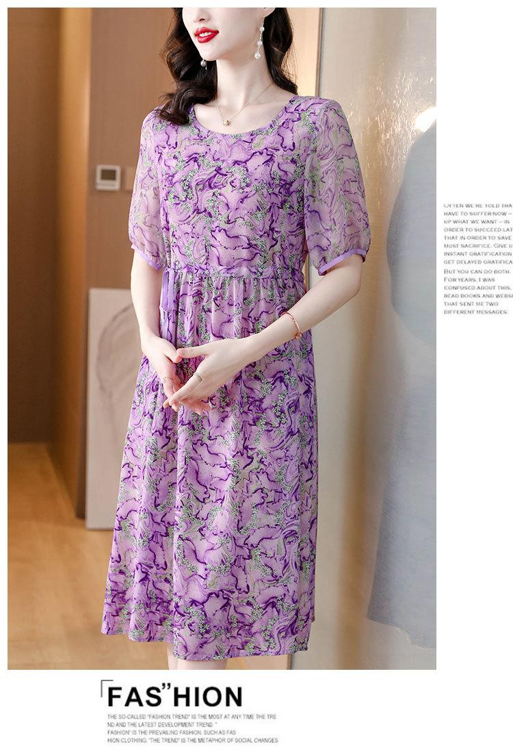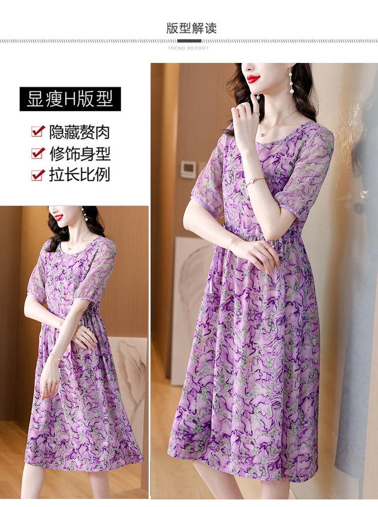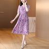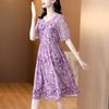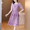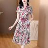 Vestido nuevo joven de alta calidad largo medio sobre la rodilla de verano para mujer ceñido adelgazante de alta gama cuello redondo falda floral