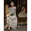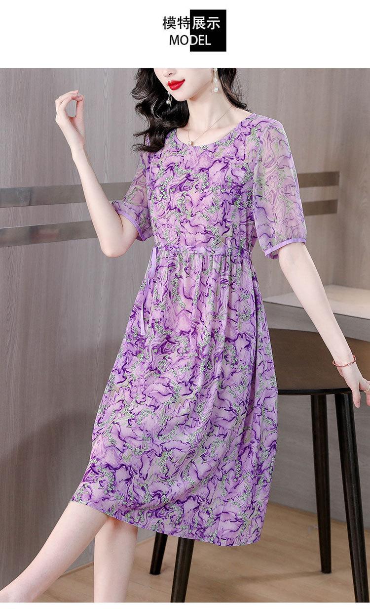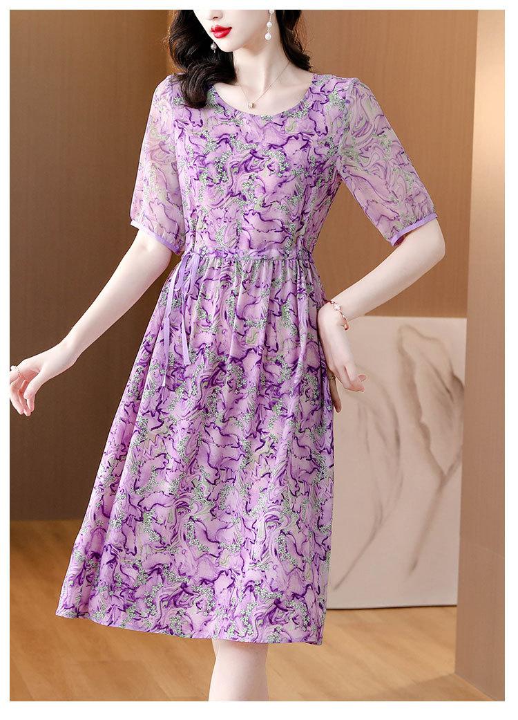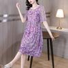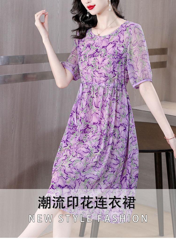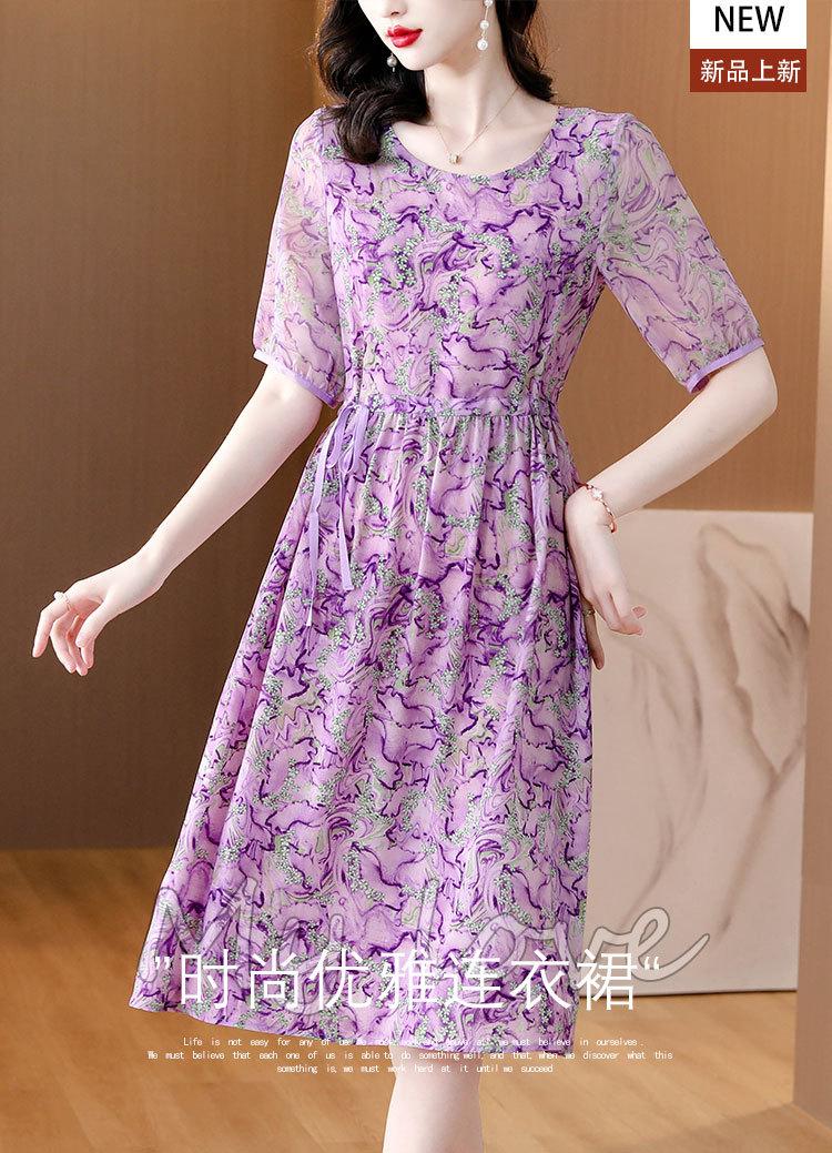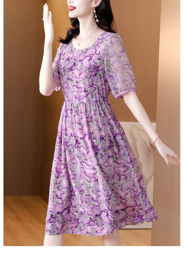 Vestido nuevo joven de alta calidad largo medio sobre la rodilla de verano para mujer ceñido adelgazante de alta gama cuello redondo falda floral
