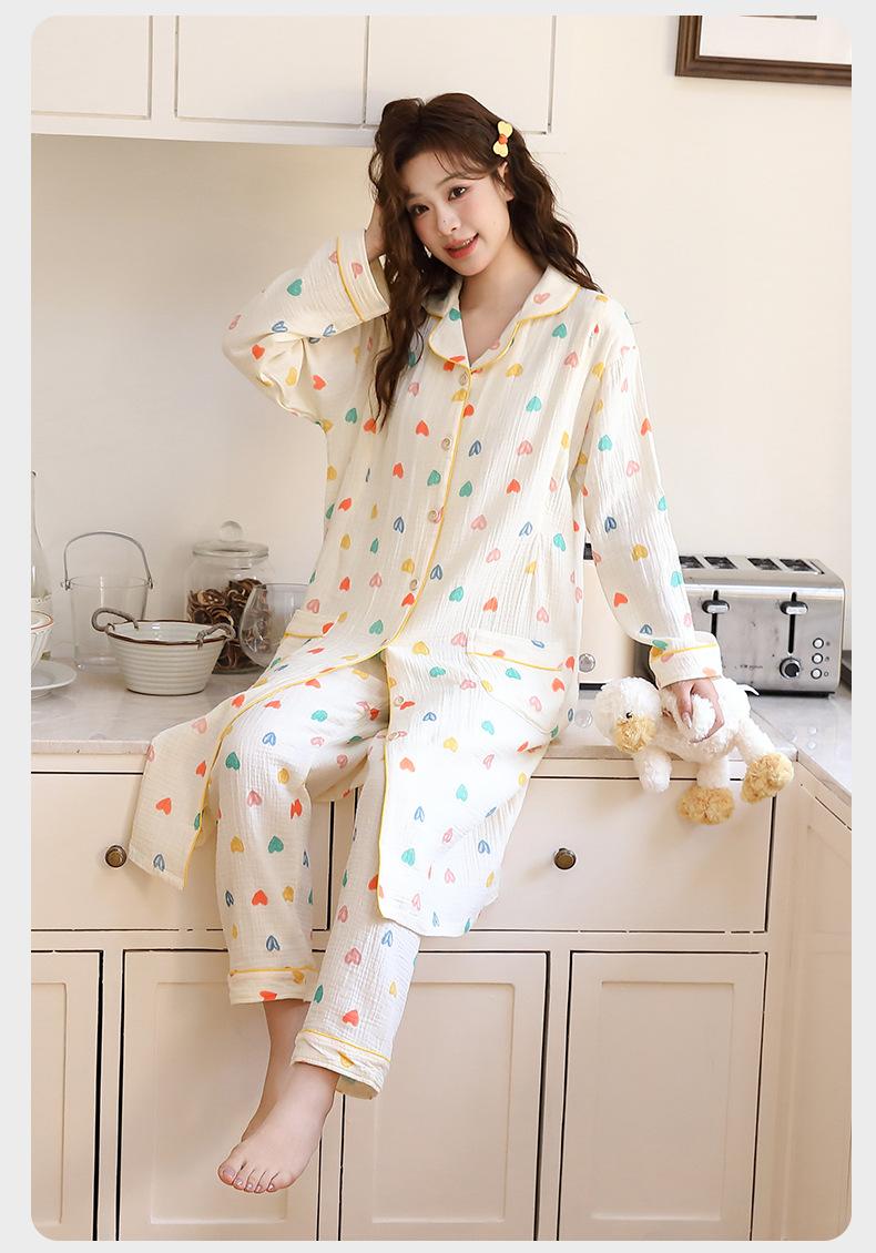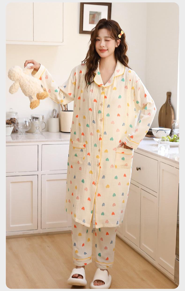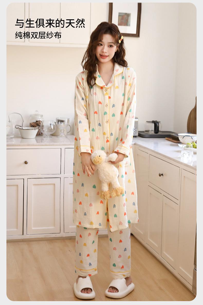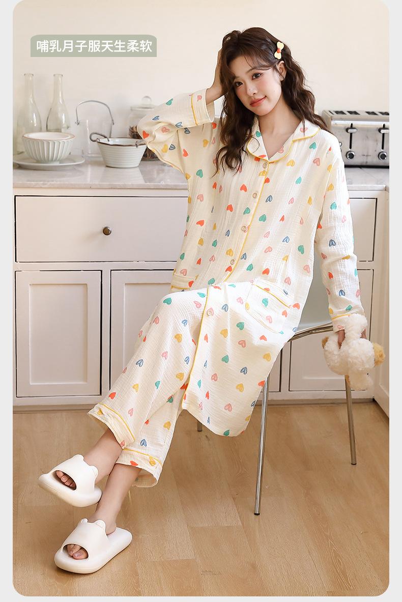 Vestido de Lactancia Postparto de Gasa Doble Capa de Algodón Puro Clase A Verano Delgado Vestido de Maternidad Pijama Set de Lactancia Postparto Transpirable