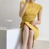 2025 Cuello Mao Cheongsam Estilo Joven Mejorado Vestido Elegante de Cintura Verano Socialité Francés Nuevo Chinoiserie Retro