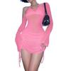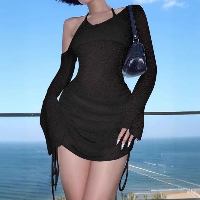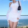 2025 Europeo y Americano Transfronterizo Primavera y Verano Nuevo Moda Femenina Sexy Cut Out Transparente Estilo Resort Costero Vestido Ajustado a la Cadera