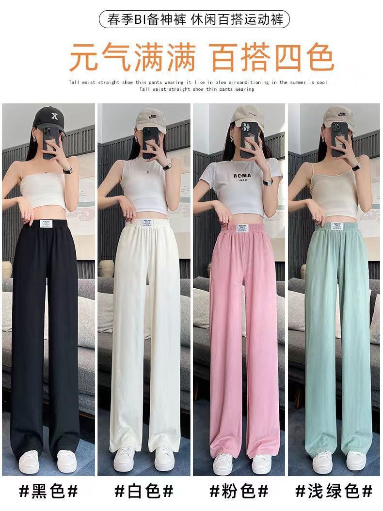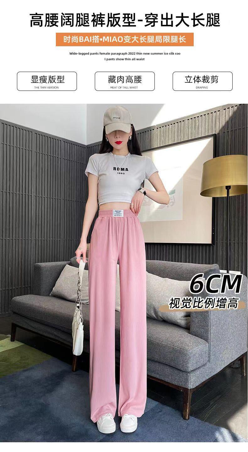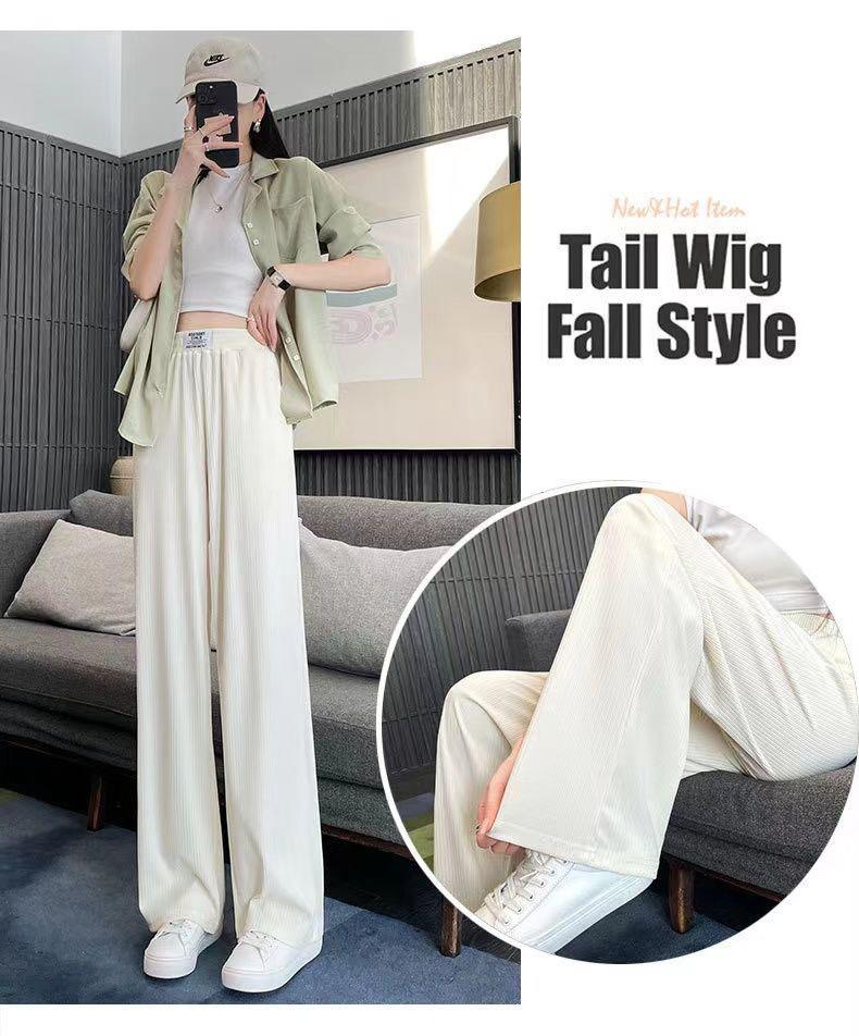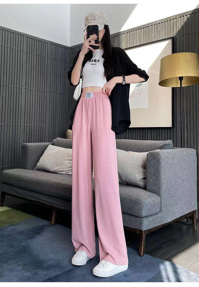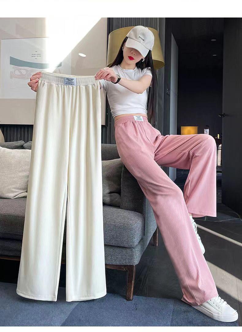 Pantalones Casuales de Verano 2025 Primavera Pantalones Slim de Pierna Ancha para Mujer Cintura Alta Sueltos con Caída Seda Helada Rectos 145