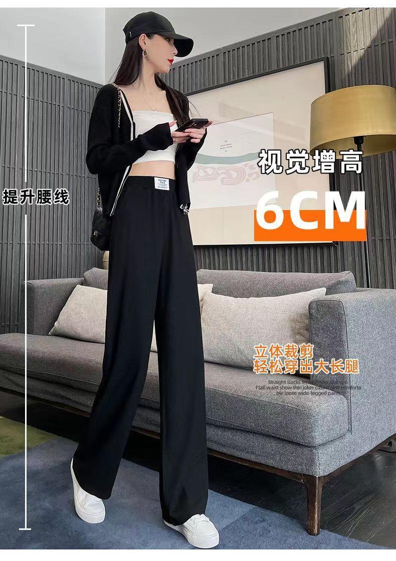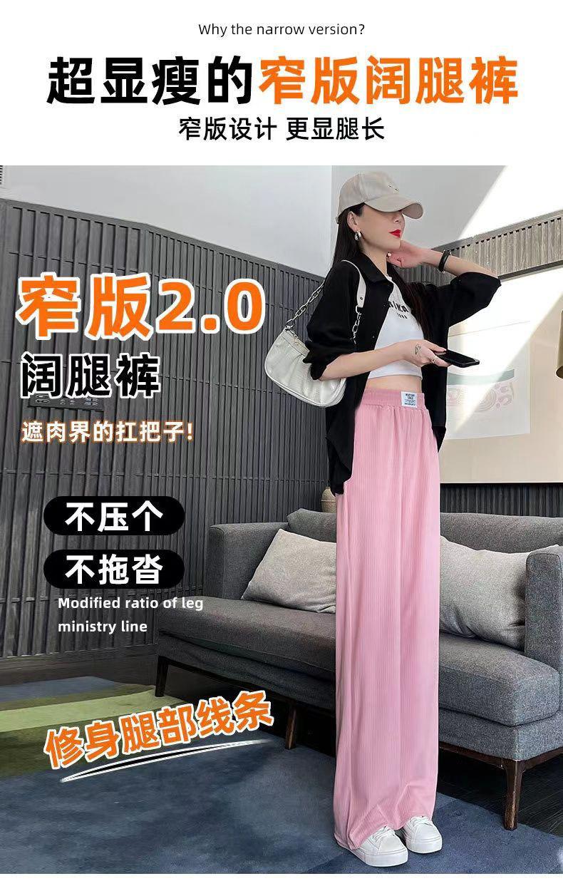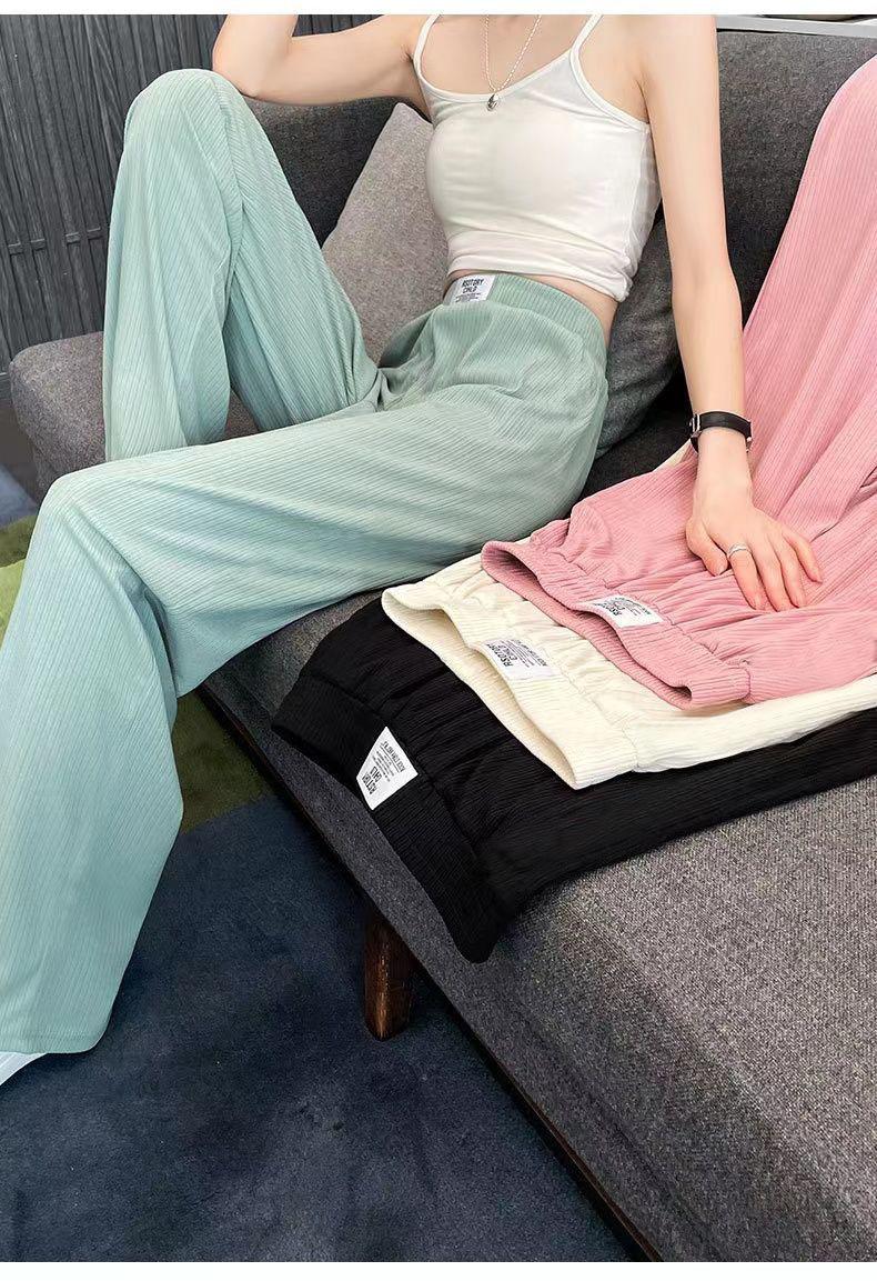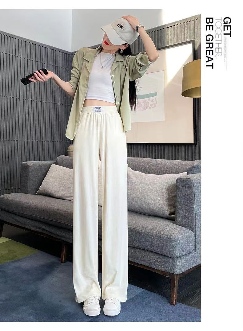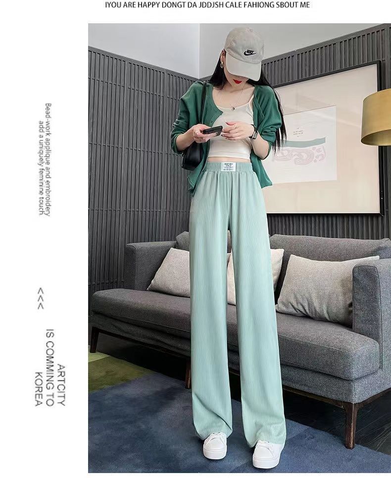 Pantalones Casuales de Verano 2025 Primavera Pantalones Slim de Pierna Ancha para Mujer Cintura Alta Sueltos con Caída Seda Helada Rectos 145
