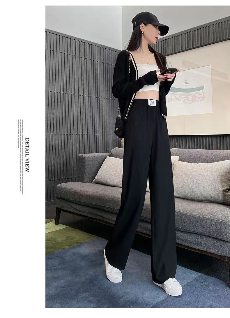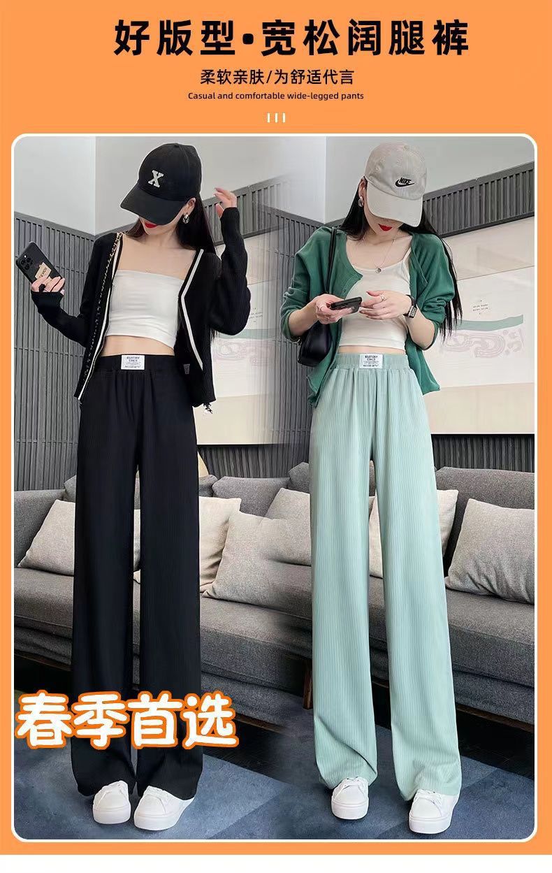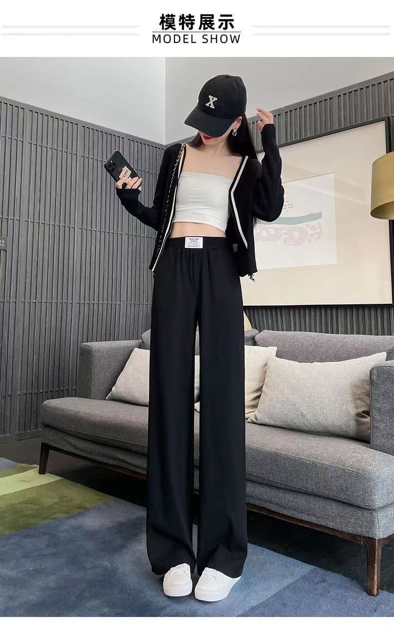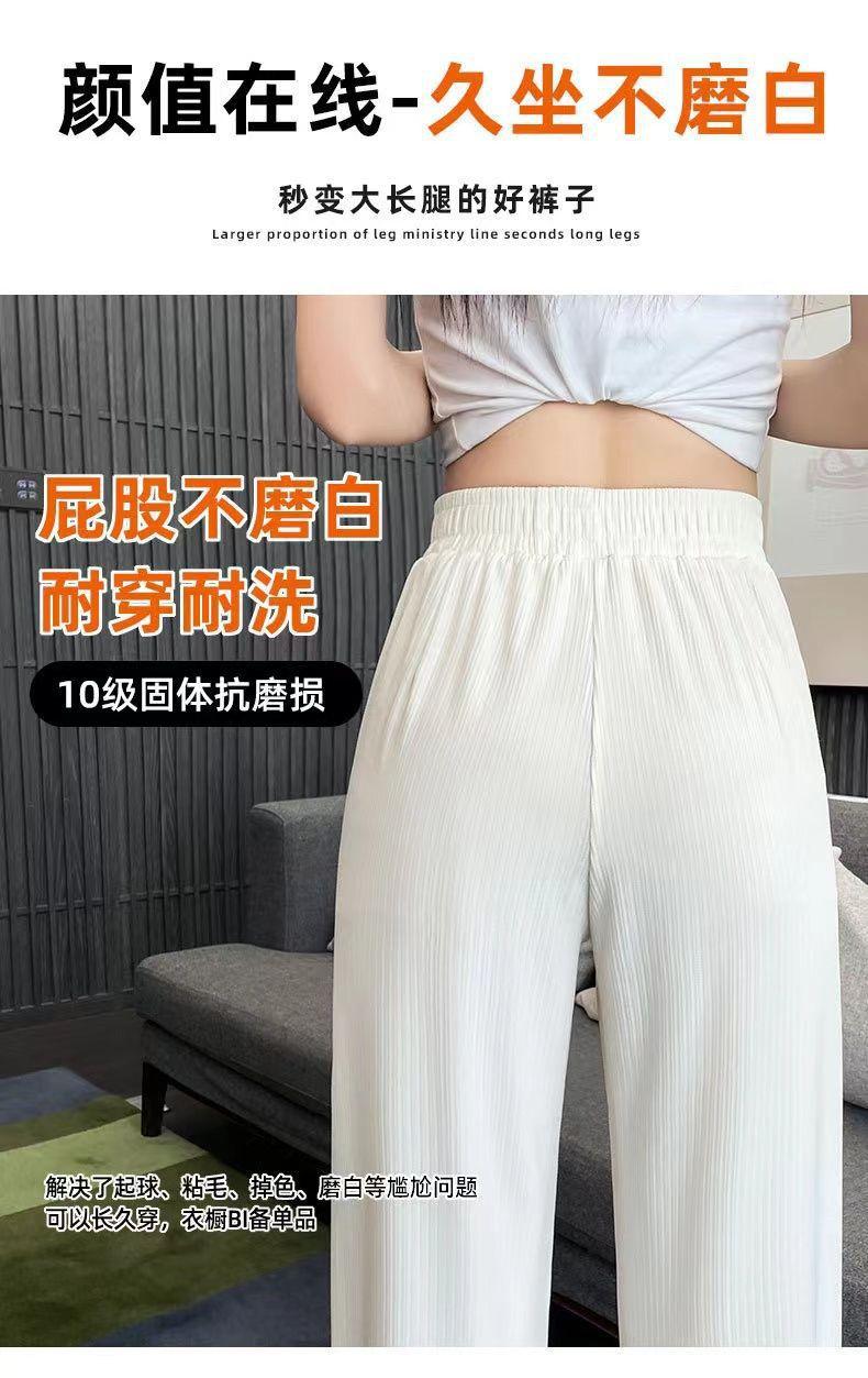 Pantalones Casuales de Verano 2025 Primavera Pantalones Slim de Pierna Ancha para Mujer Cintura Alta Sueltos con Caída Seda Helada Rectos 145