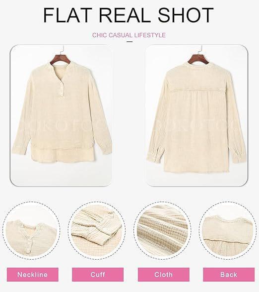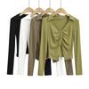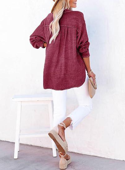Moda Europea y Americana Blusas de Color Puro de Manga Larga con Botones Plisados Camisas de Algodón Sueltas para Mujer