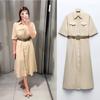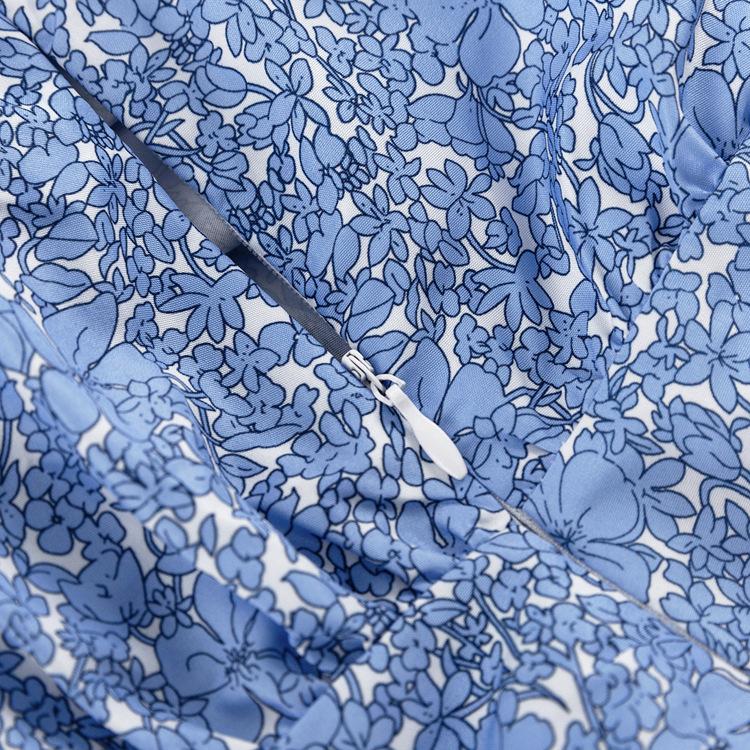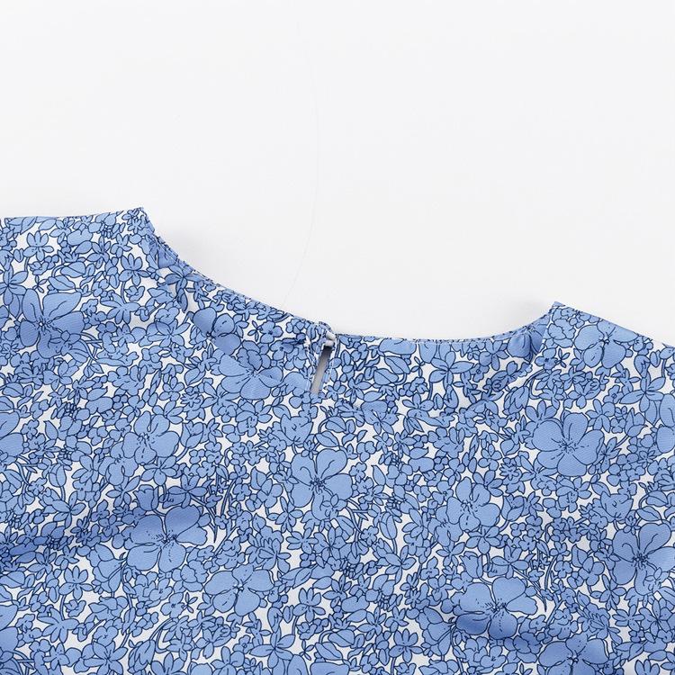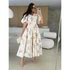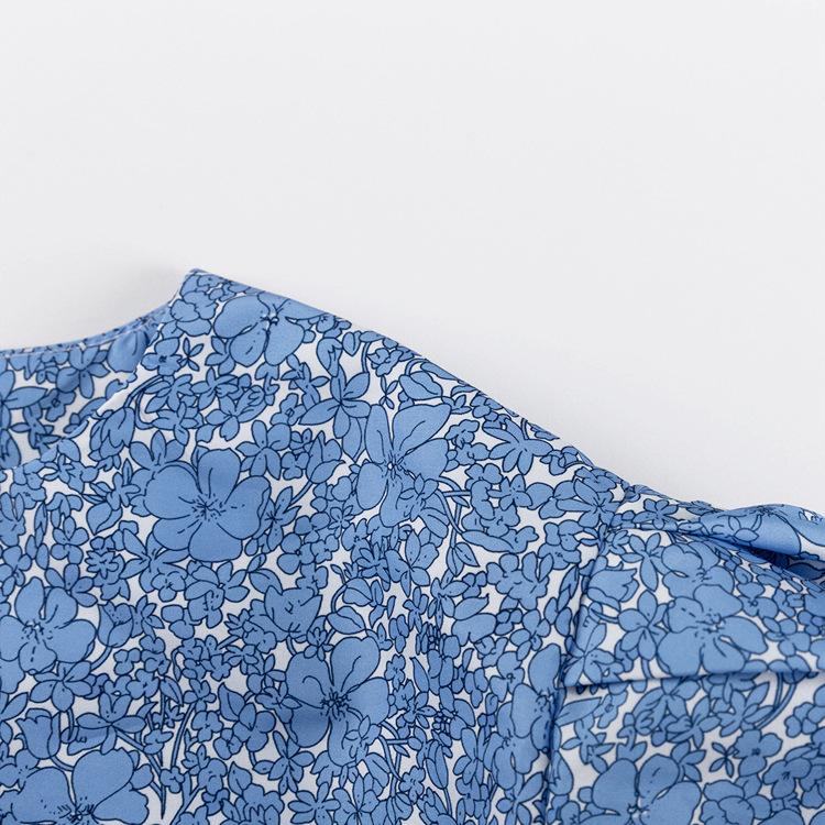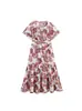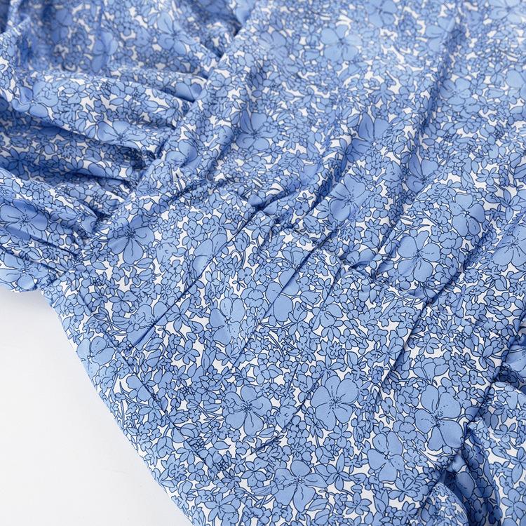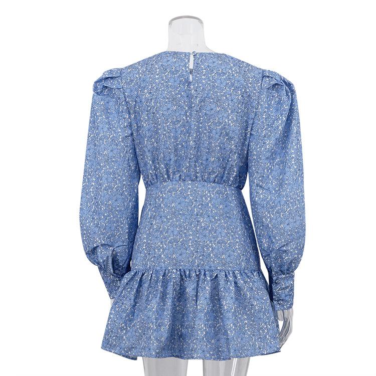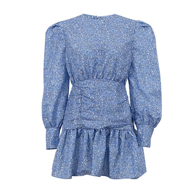 2024 Ropa Europea y Americana de Aliexpress Primavera Nuevo Estampado Floral Falda Corta Manga Larga Cintura Plisada Vestido Casual