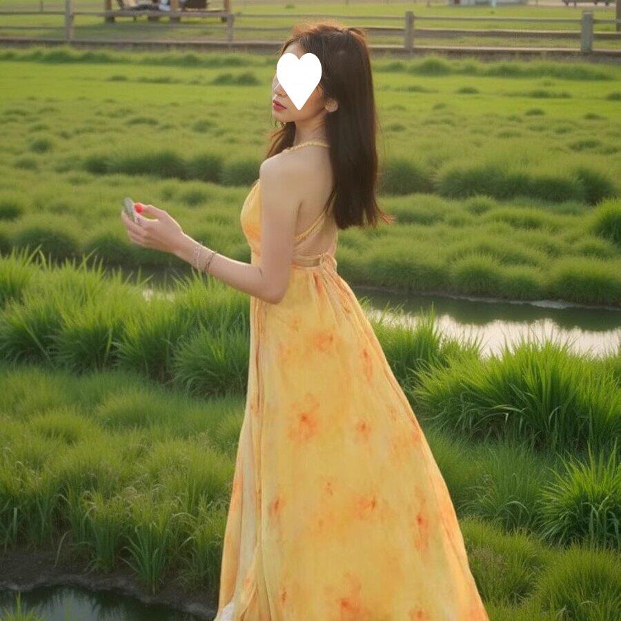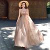 Pintura al óleo francesa Vestido de tirantes floral amarillo manchado Vacaciones junto al mar Vestido de playa Falda larga Mujer Verano
