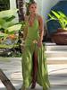 Amazon Transfronterizo Verano Nueva Moda Empalme Cinta Volante Slim Estilo Urbano Medio Traje Color Sólido