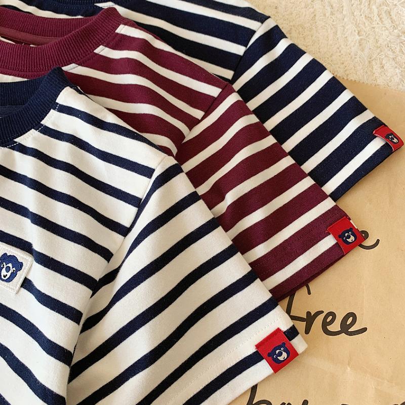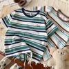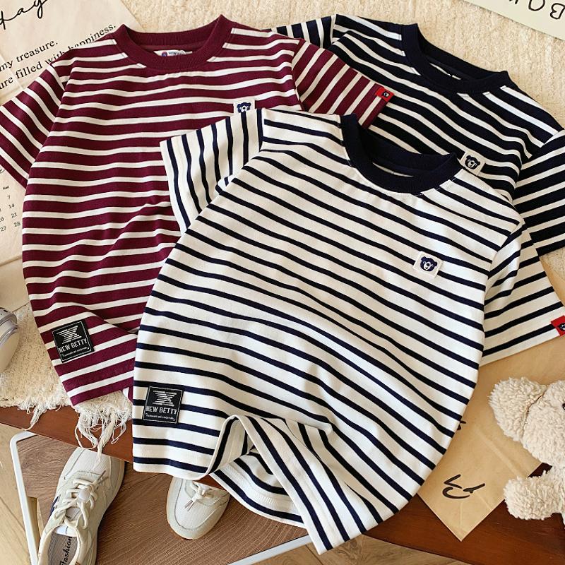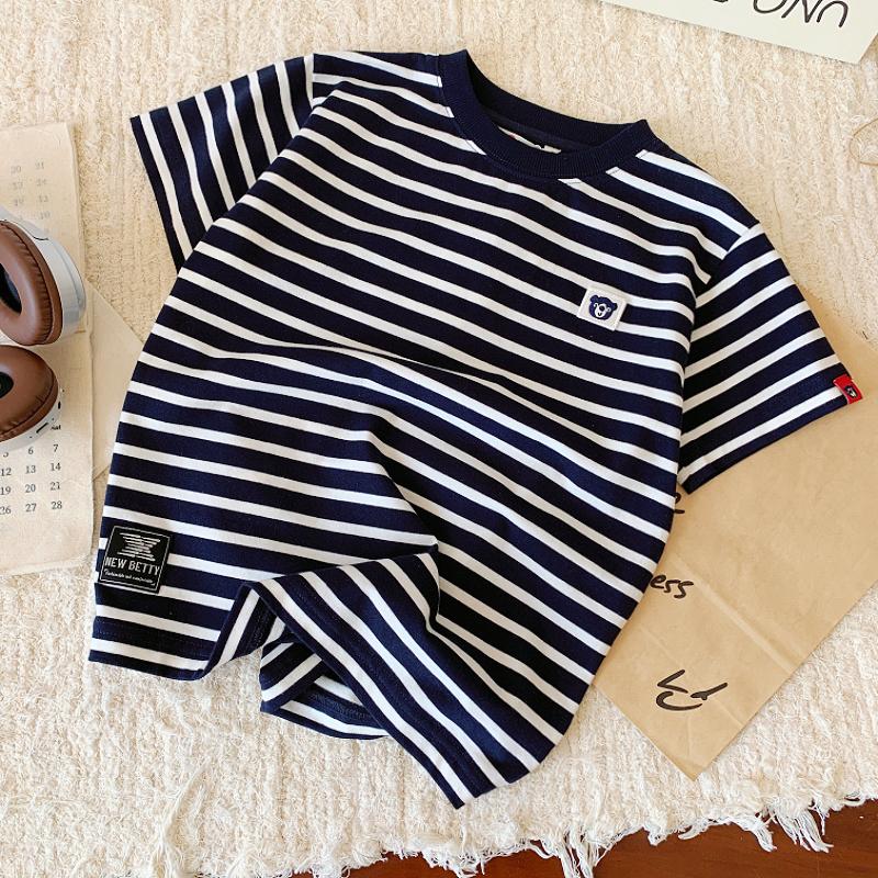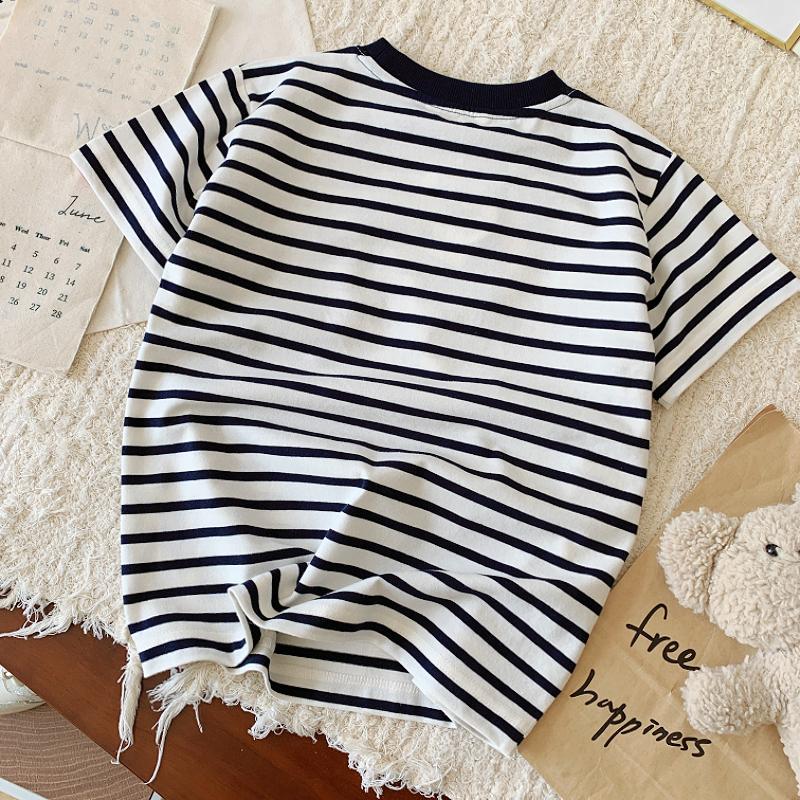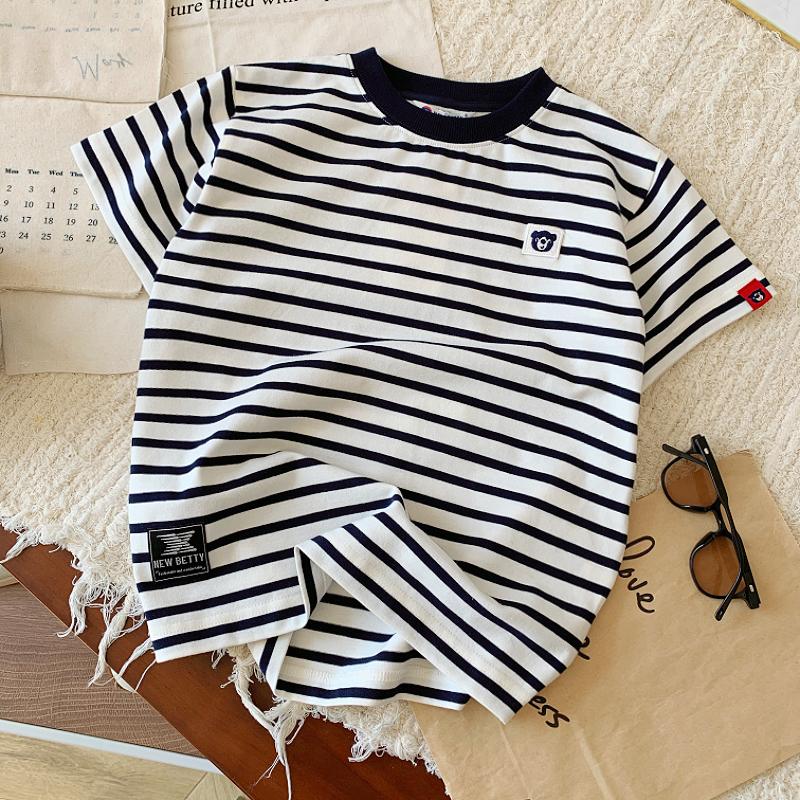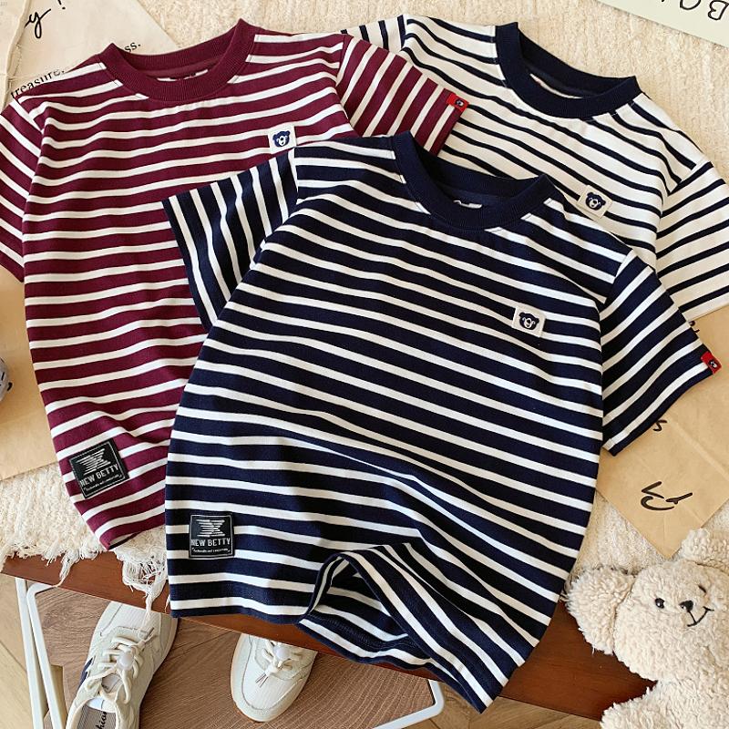 Camiseta de Manga Corta a Rayas de Verano para Niños, Cuello Redondo, Casual, Versátil, Estilo Coreano, Moderna, para Niños Mayores