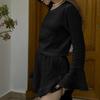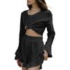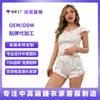 Nuevo Conjunto Casual Transfronterizo Europeo y Americano para Mujer de Encaje de Manga Corta Larga con Shorts Pijama Holgado de Dos Piezas para Mujer