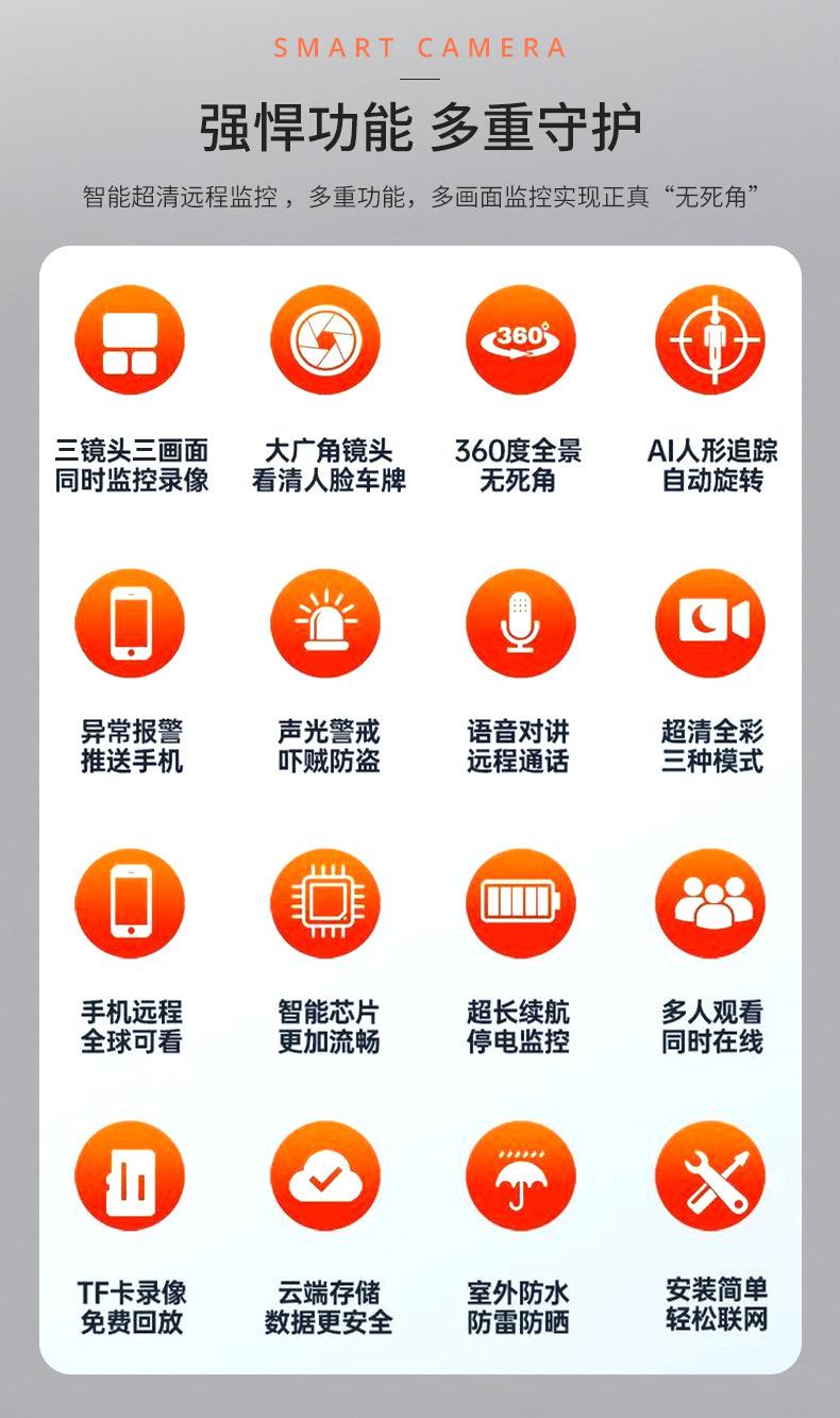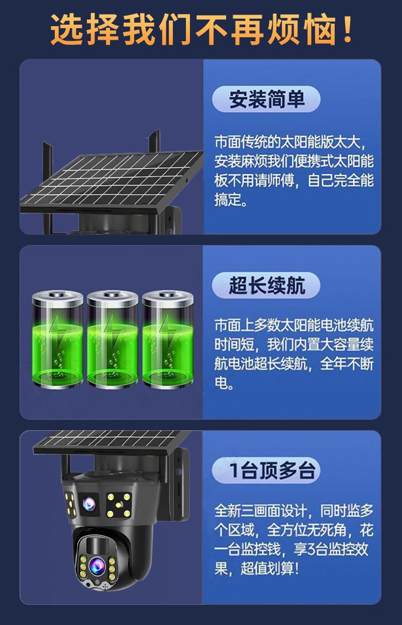 Wifi version-4mp three screen solar camera-sunsiee app, 4g-southeast asia/china version-4mp three screen solar...