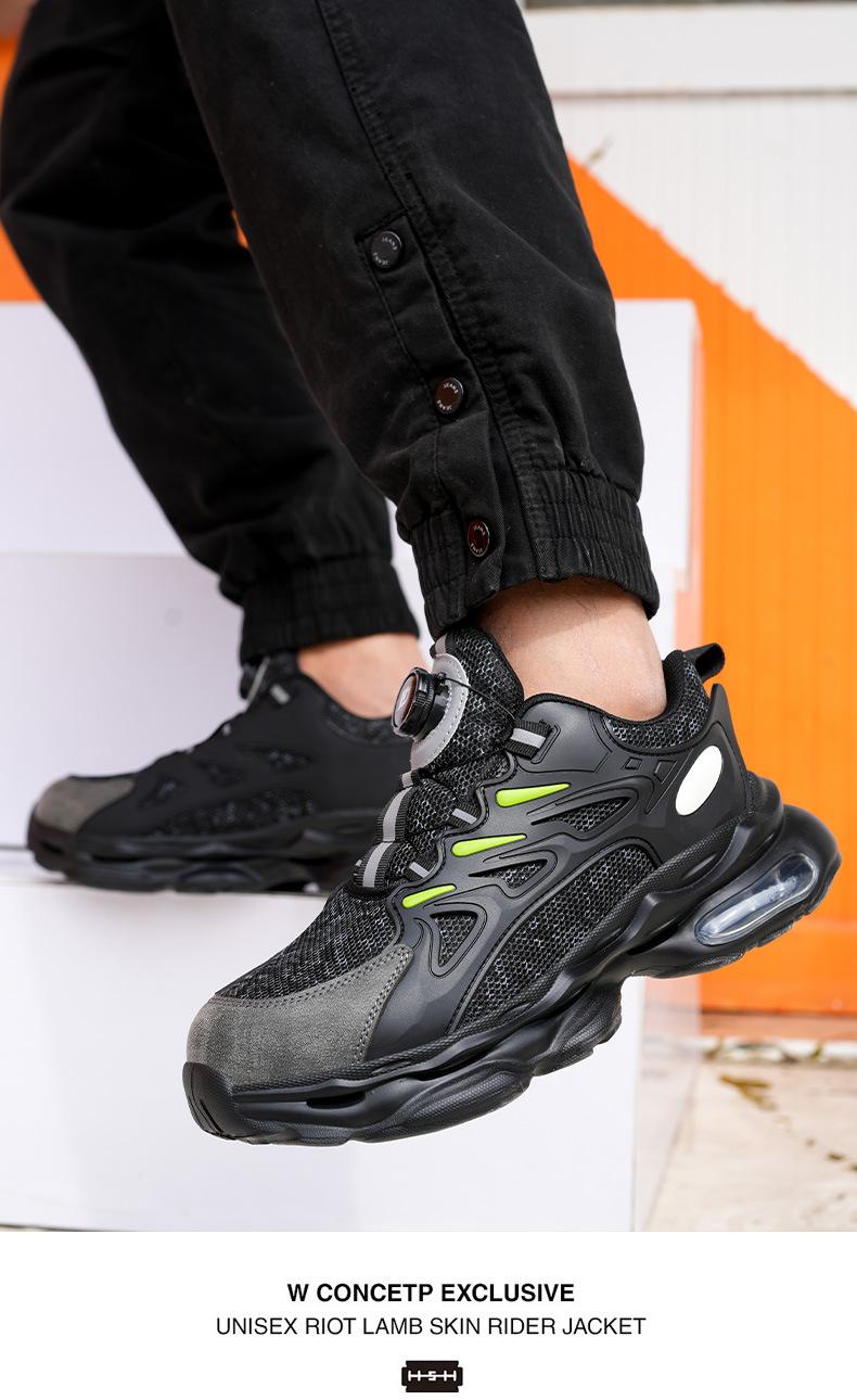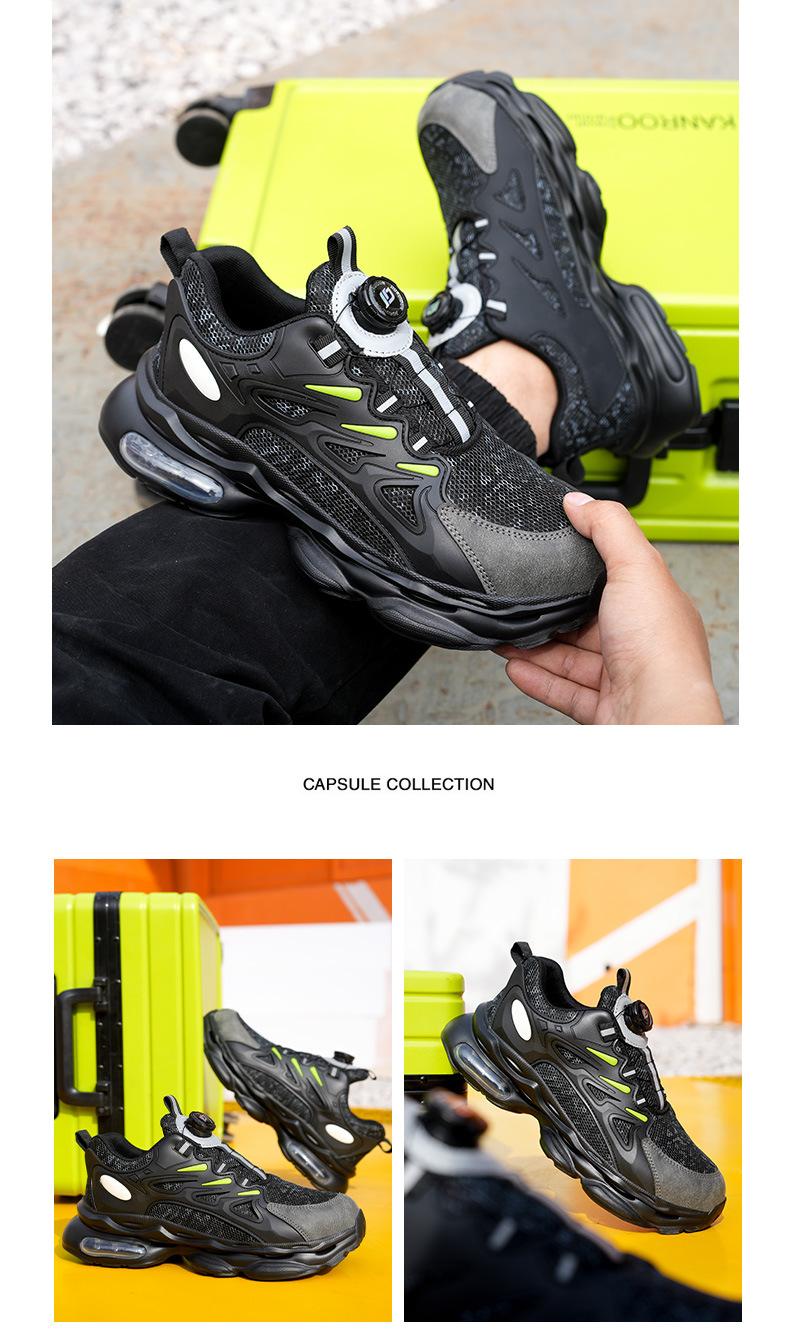 Zapatos de protección laboral con botón giratorio anti-aplastamiento anti-perforación fabricantes venta al por mayor resistentes al desgaste plegables zapatos protectores zapatos de seguridad