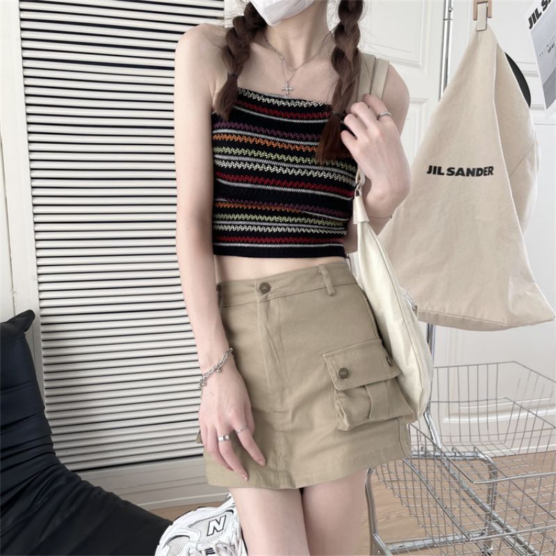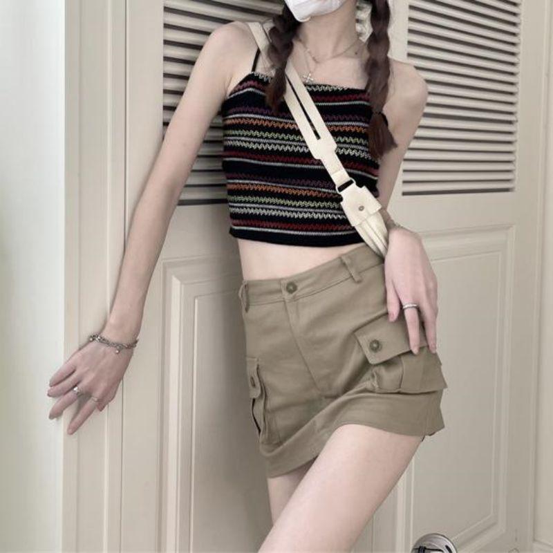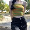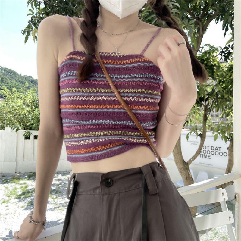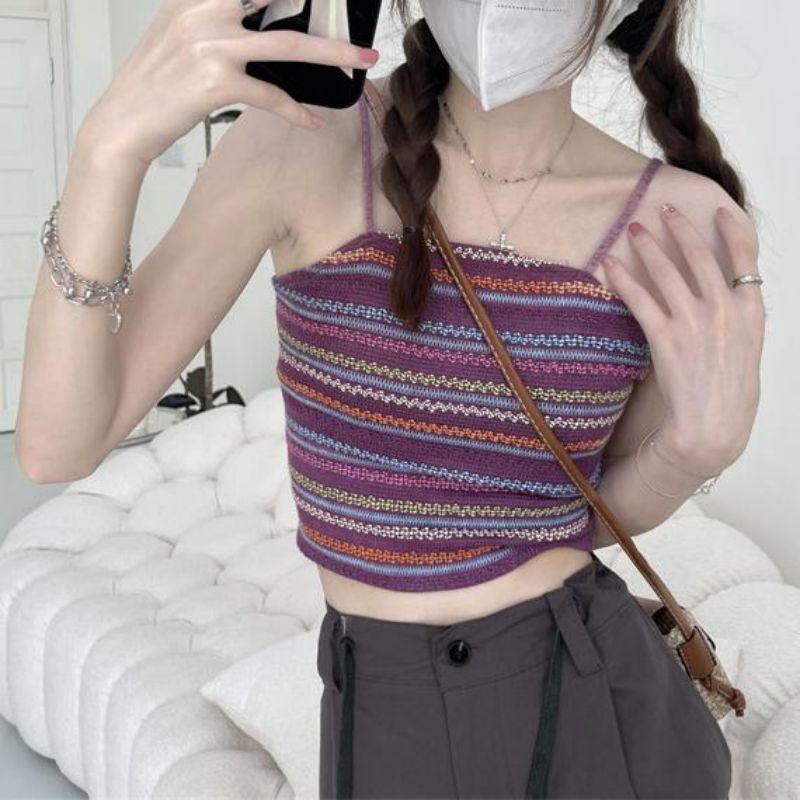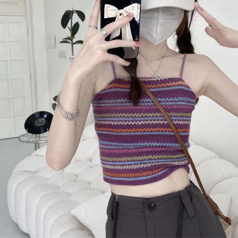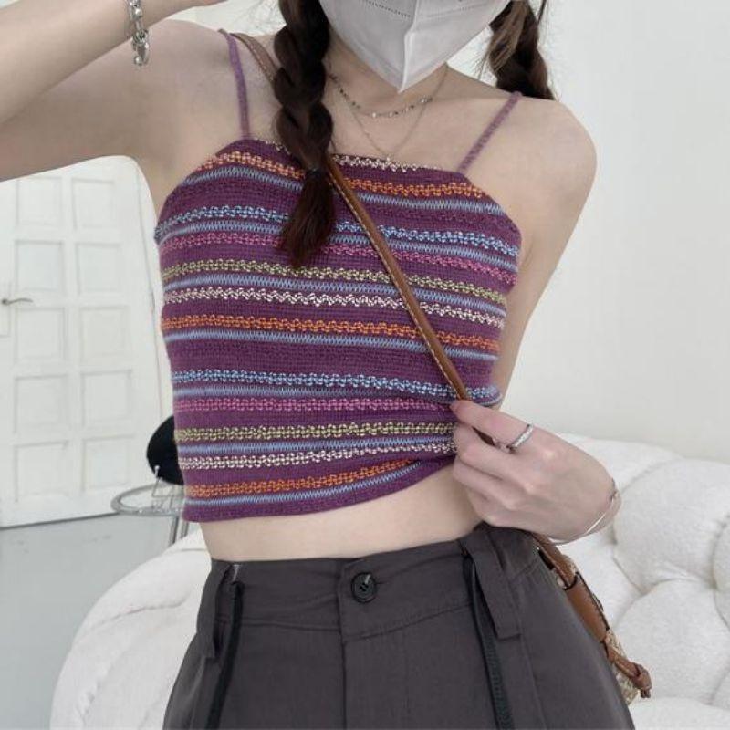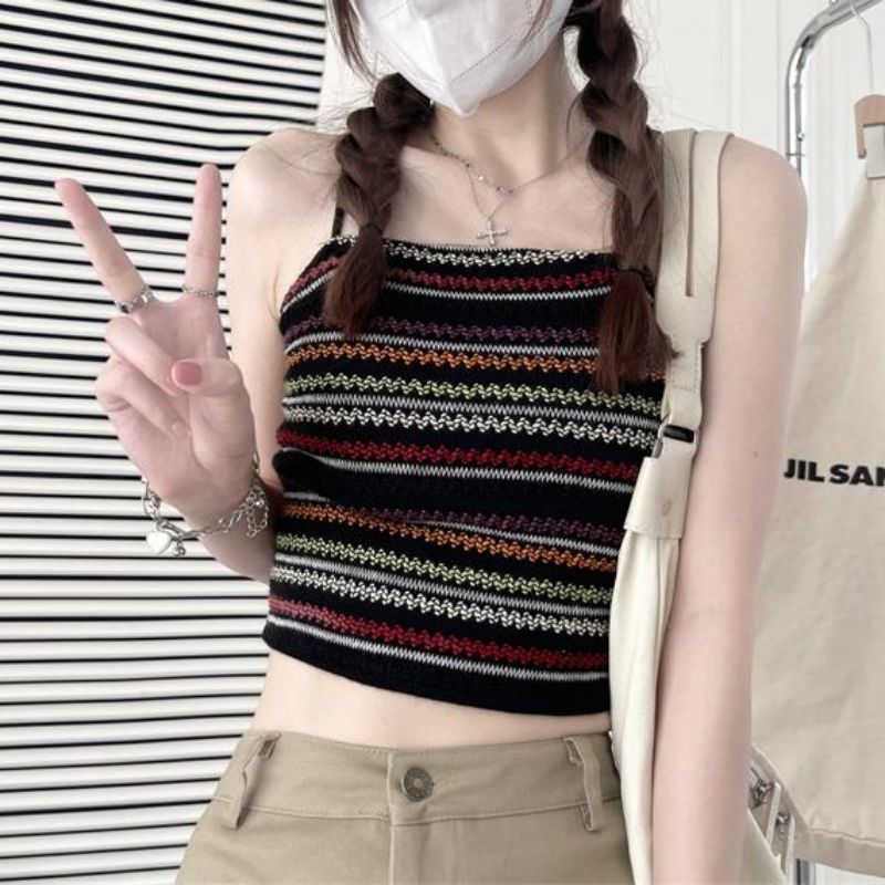 Verano 2023 nuevo tejido pequeño sling ropa de chica hot chaleco a rayas de colores ropa exterior top corto sexy para mujer