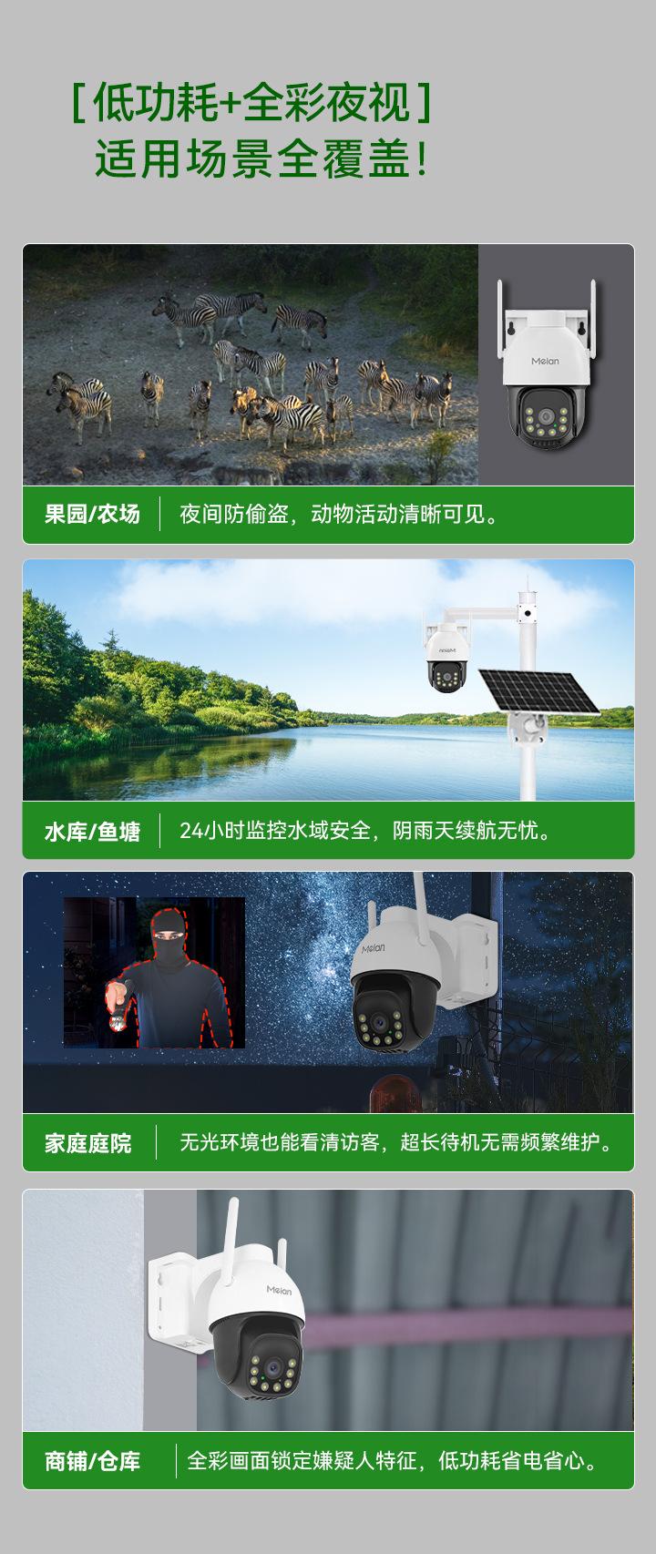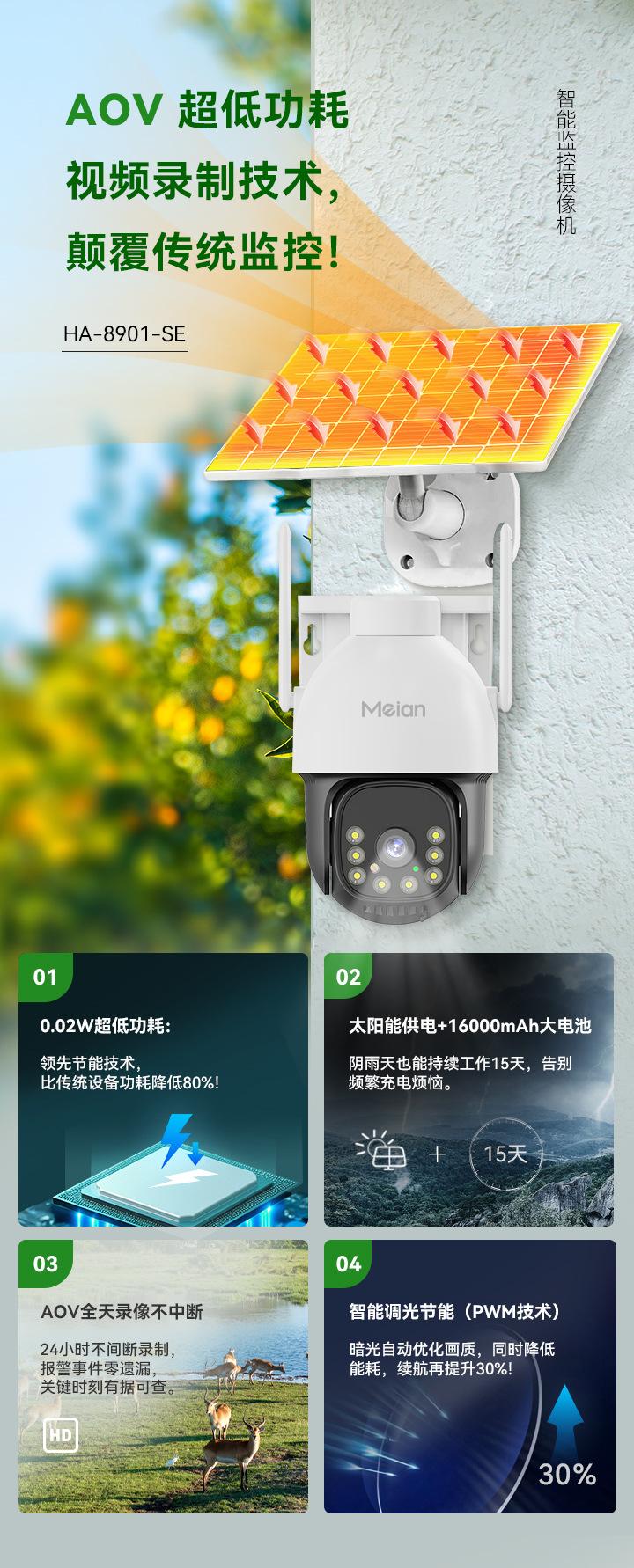 Cámara 4g de Monitoreo Solar Meian Aov Sin Electricidad Sin Red Luz Negra Visión Nocturna a Color Completo Control Remoto por Teléfono Móvil