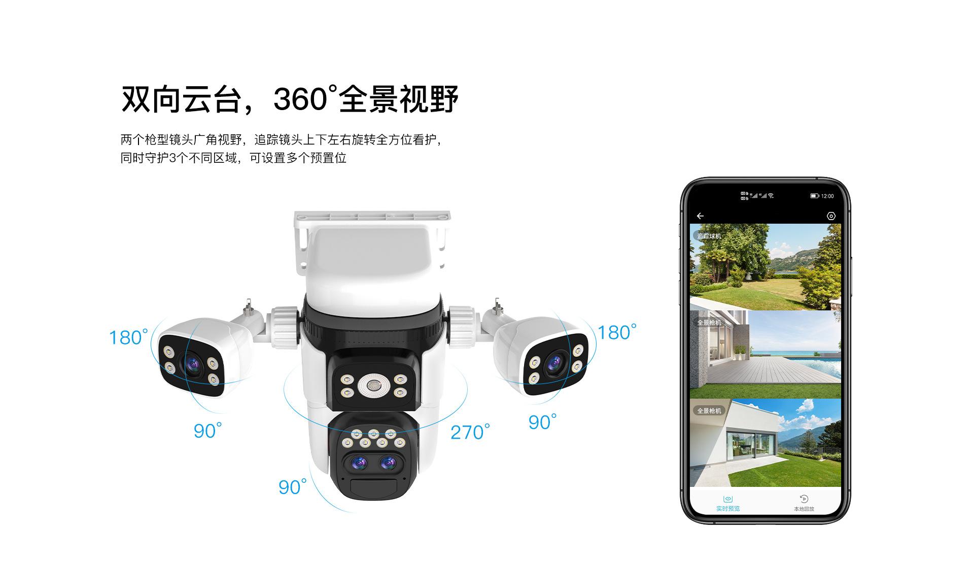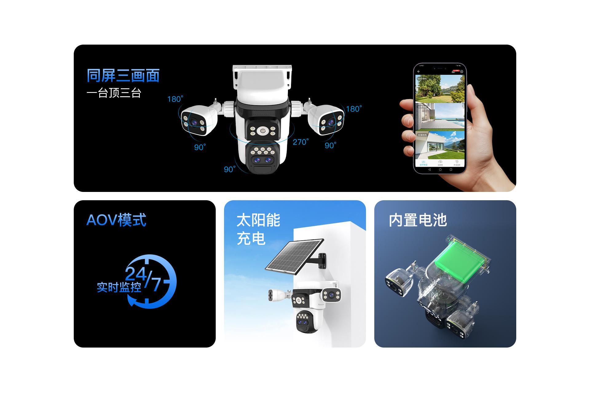 Cámara de Vigilancia para Exteriores con Zoom y Tres Pantallas Ultra Alta Definición para Exteriores sin Electricidad ni Red Monitor Cámara Solar
