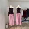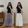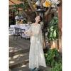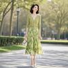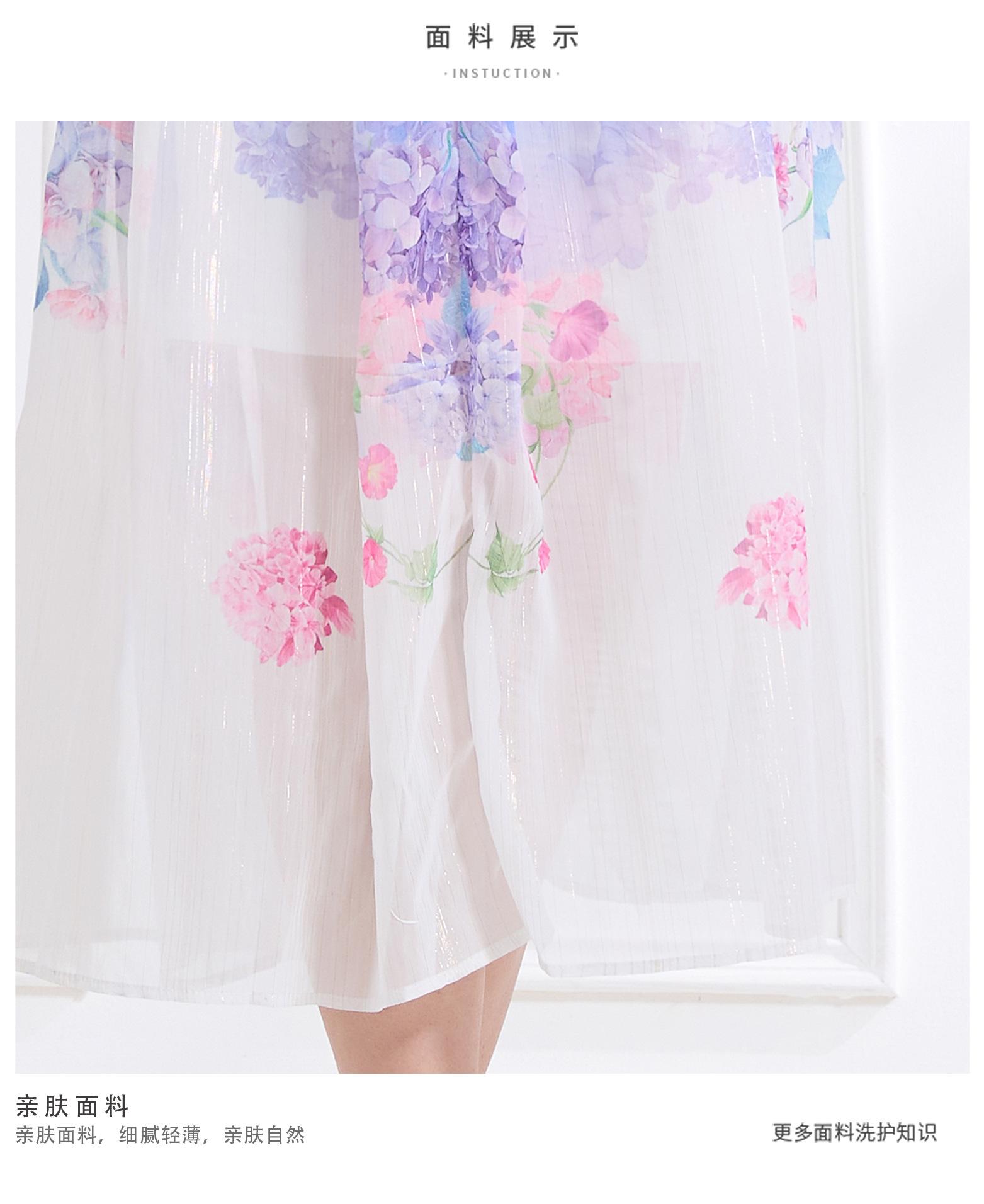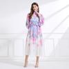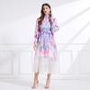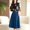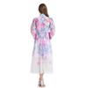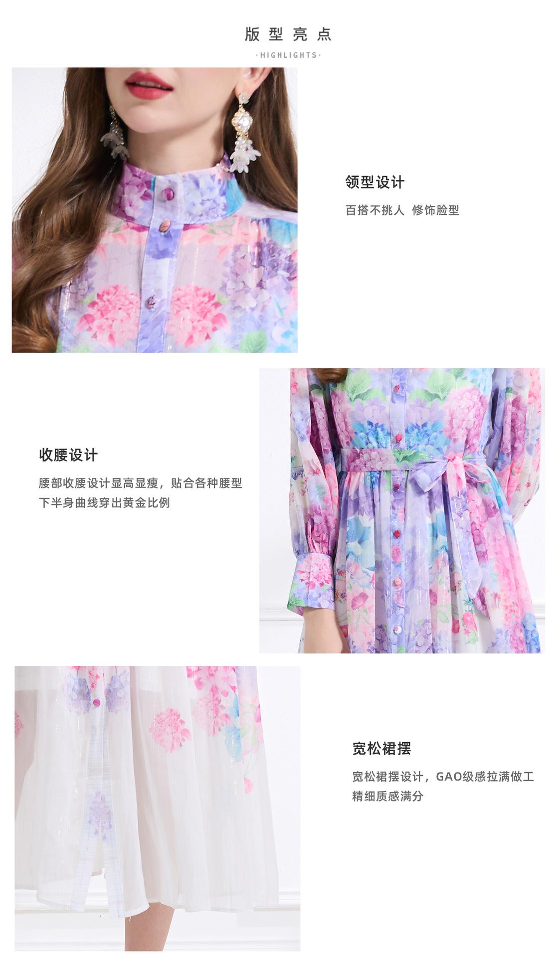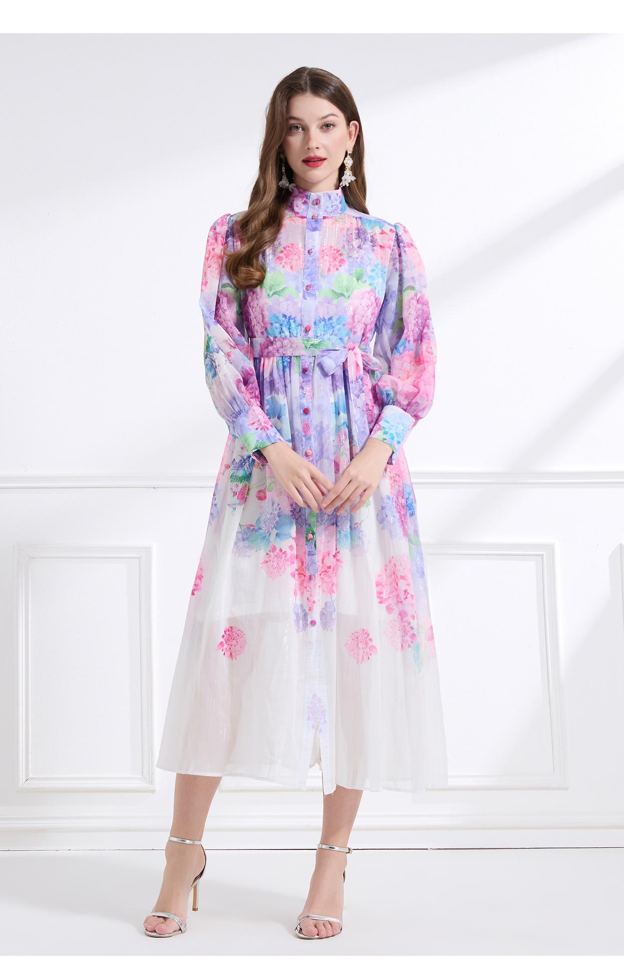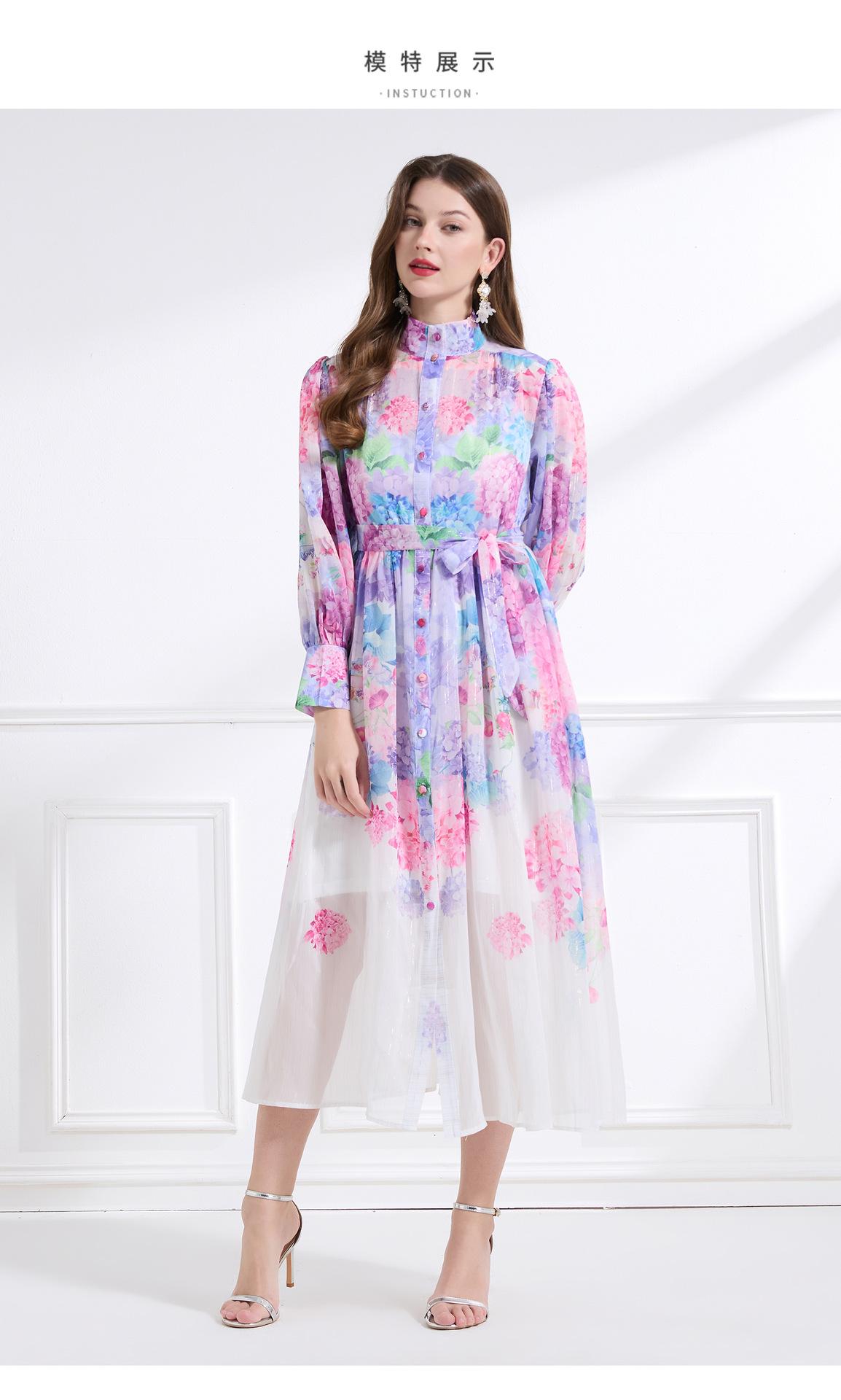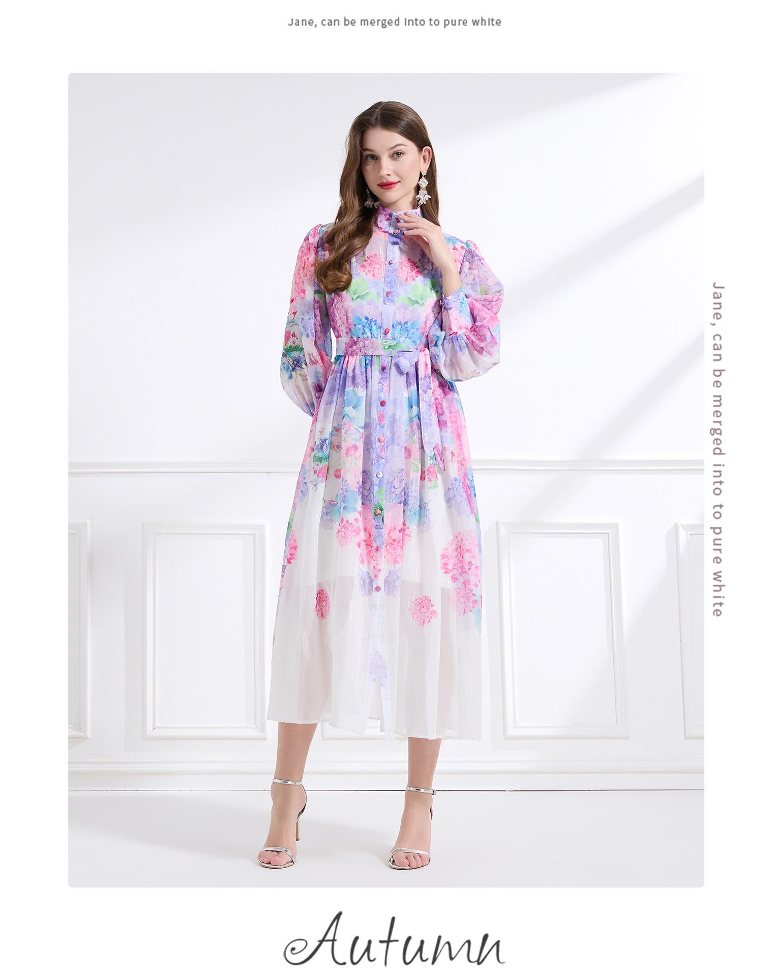 2025 Cuello Alto Estampado Floral Acuarela Mangas Linterna Cintura Falda Grande Falda con Volantes - Traje de Dos Piezas