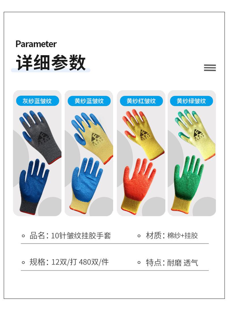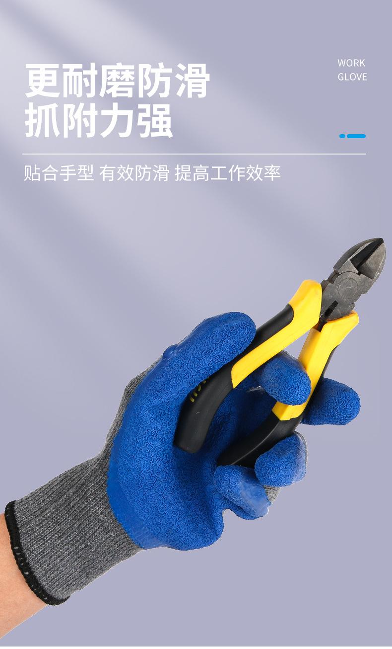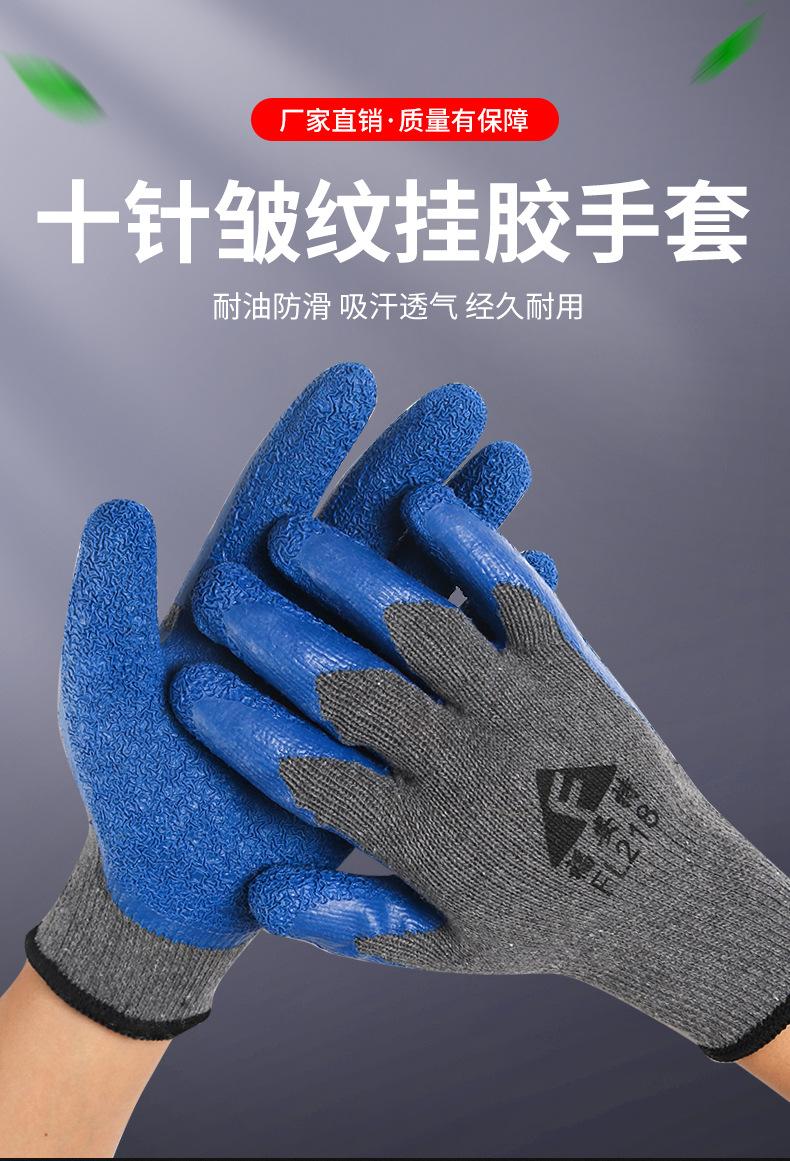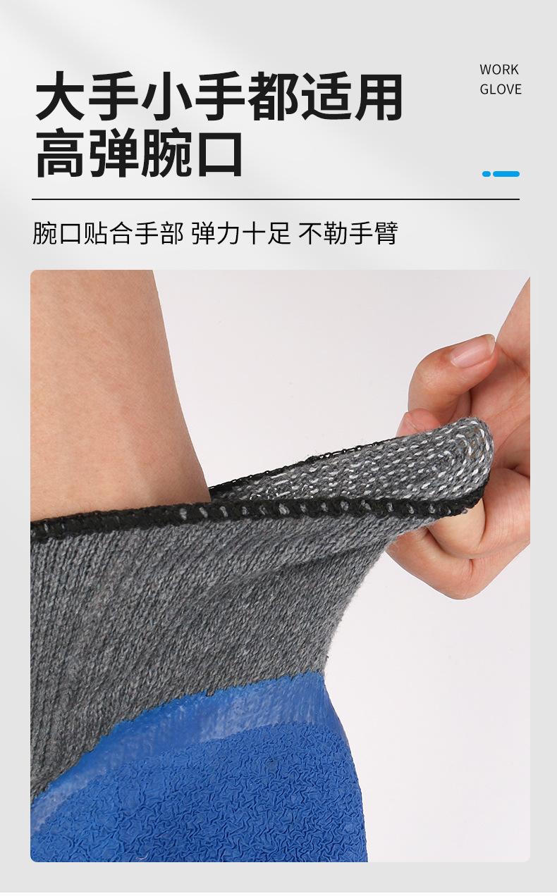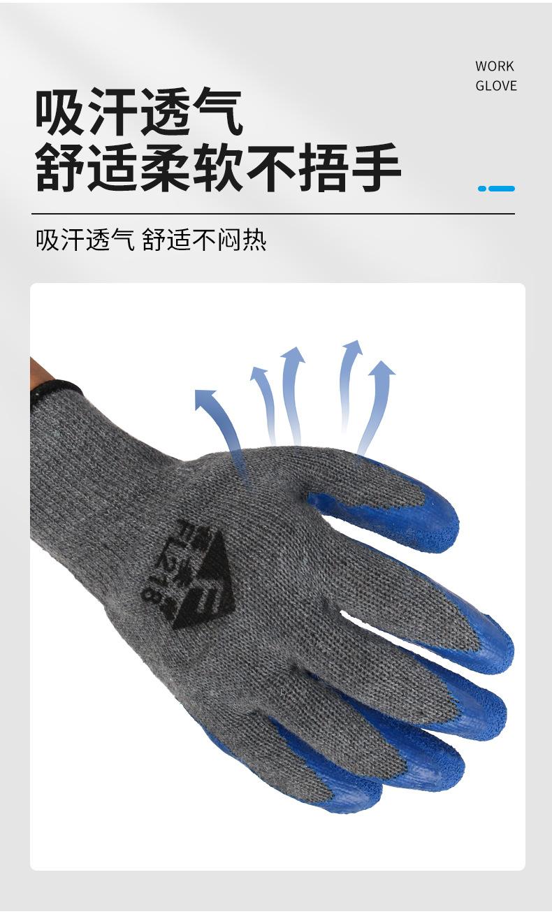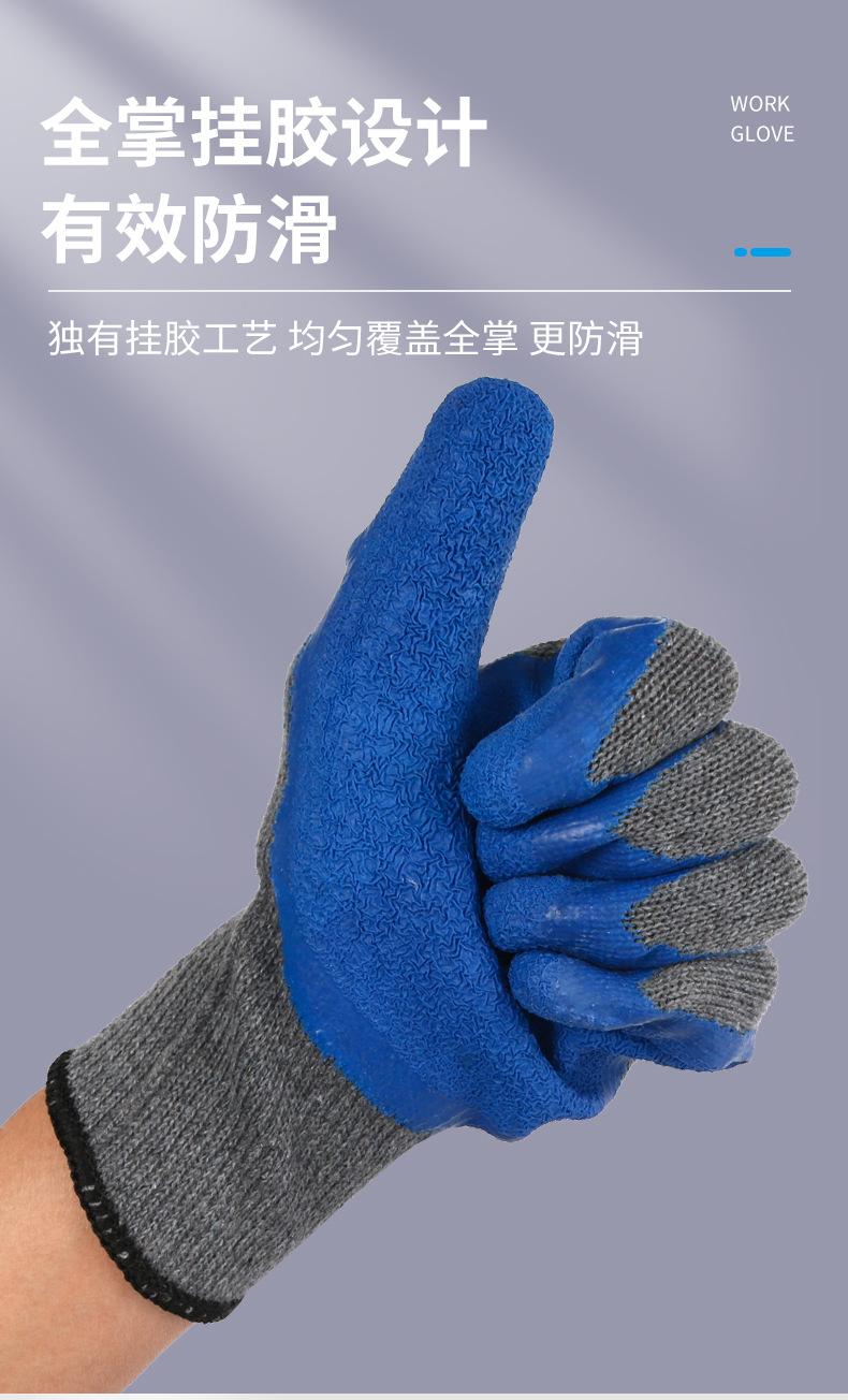 Guantes personalizados de gasa gris con hilo azul arrugados Guantes personalizados sumergidos resistentes al desgaste antideslizantes de protección laboral Guantes protectores de goma para colgar para sitio de construcción